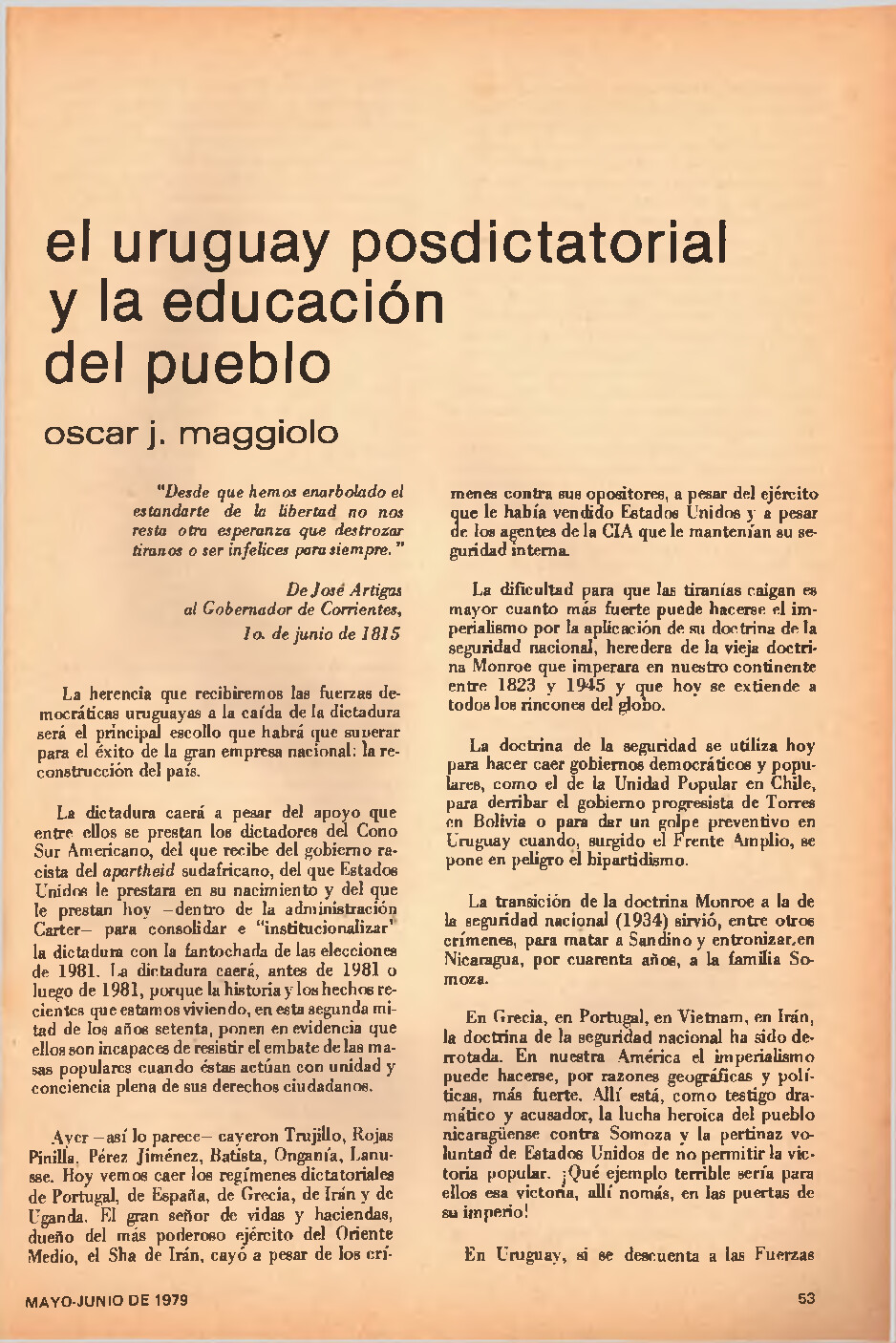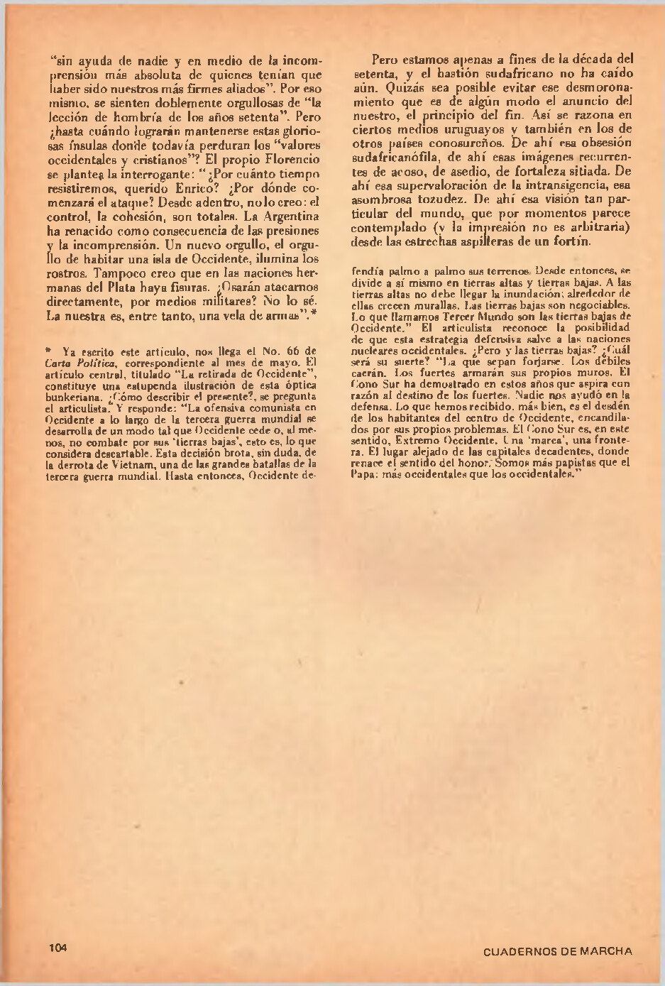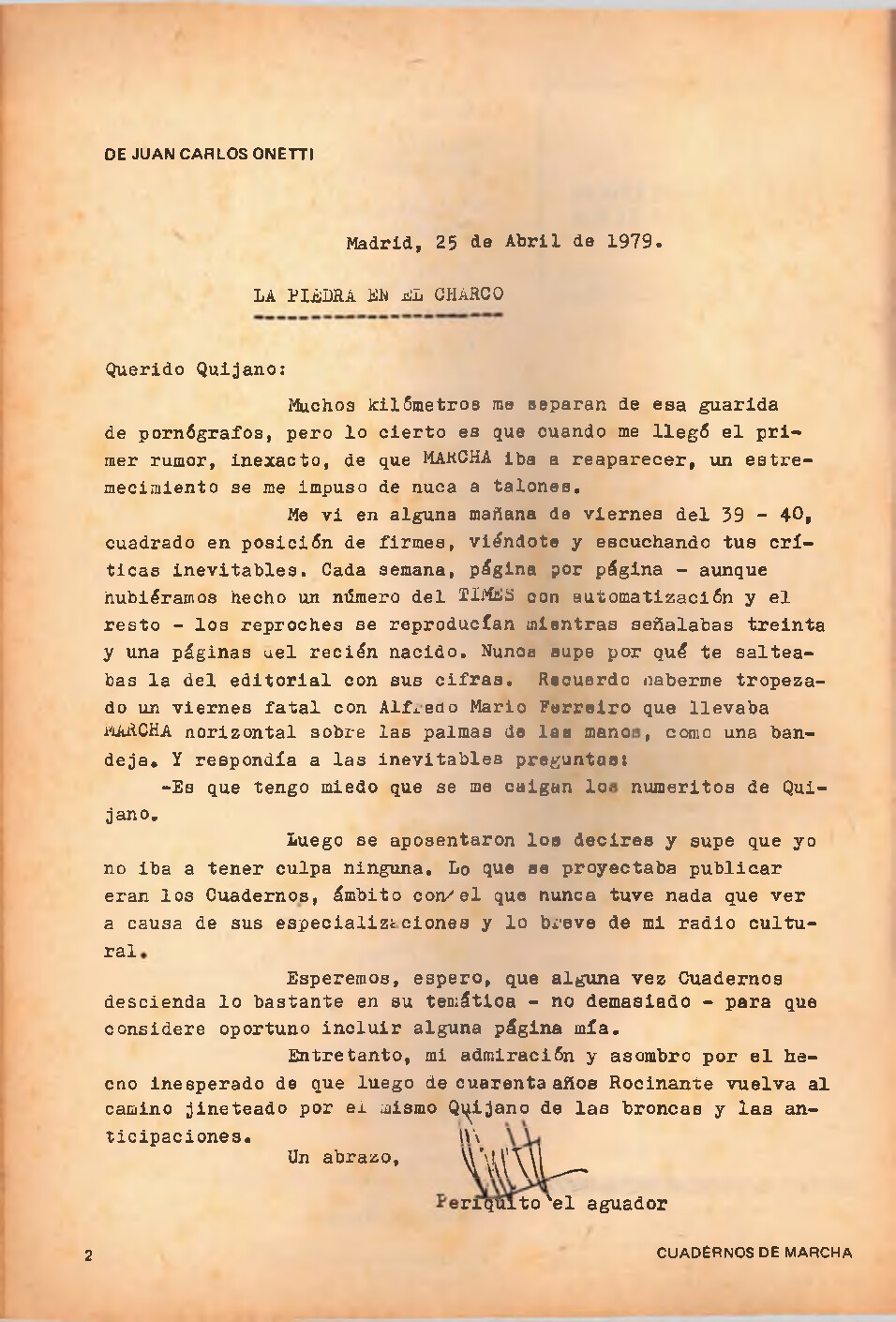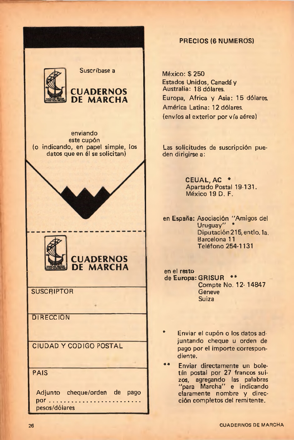 Medio de prensa Cuadernos de Marcha Tipo Del exilio Mes de publicación 6 Año de publicación 1979 Origen Anáforas Proyecto Anáforas Publicacion completa