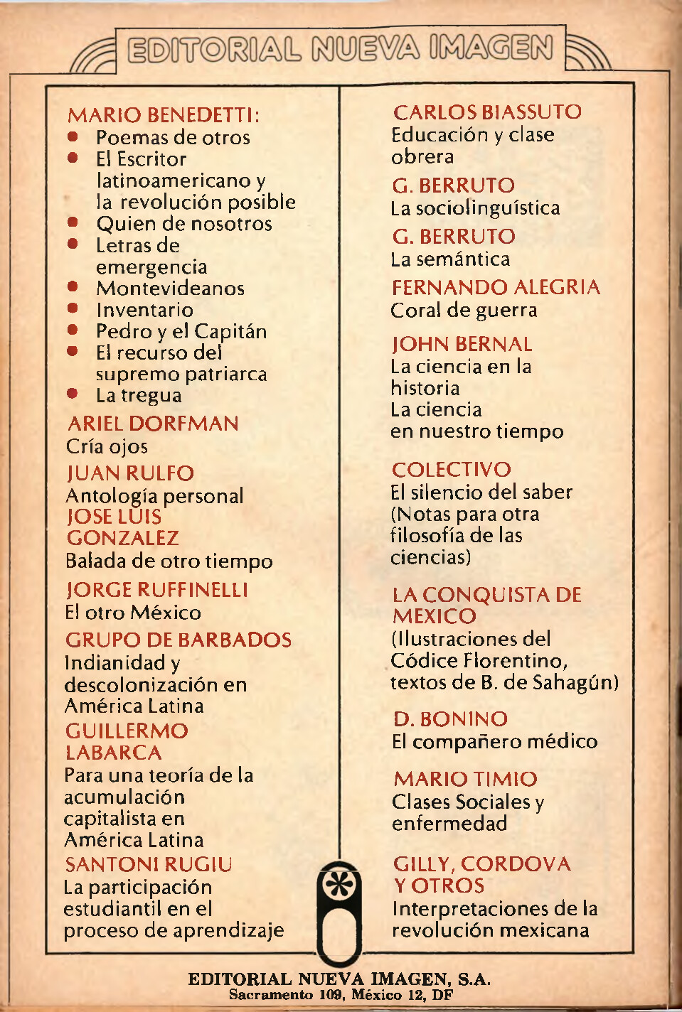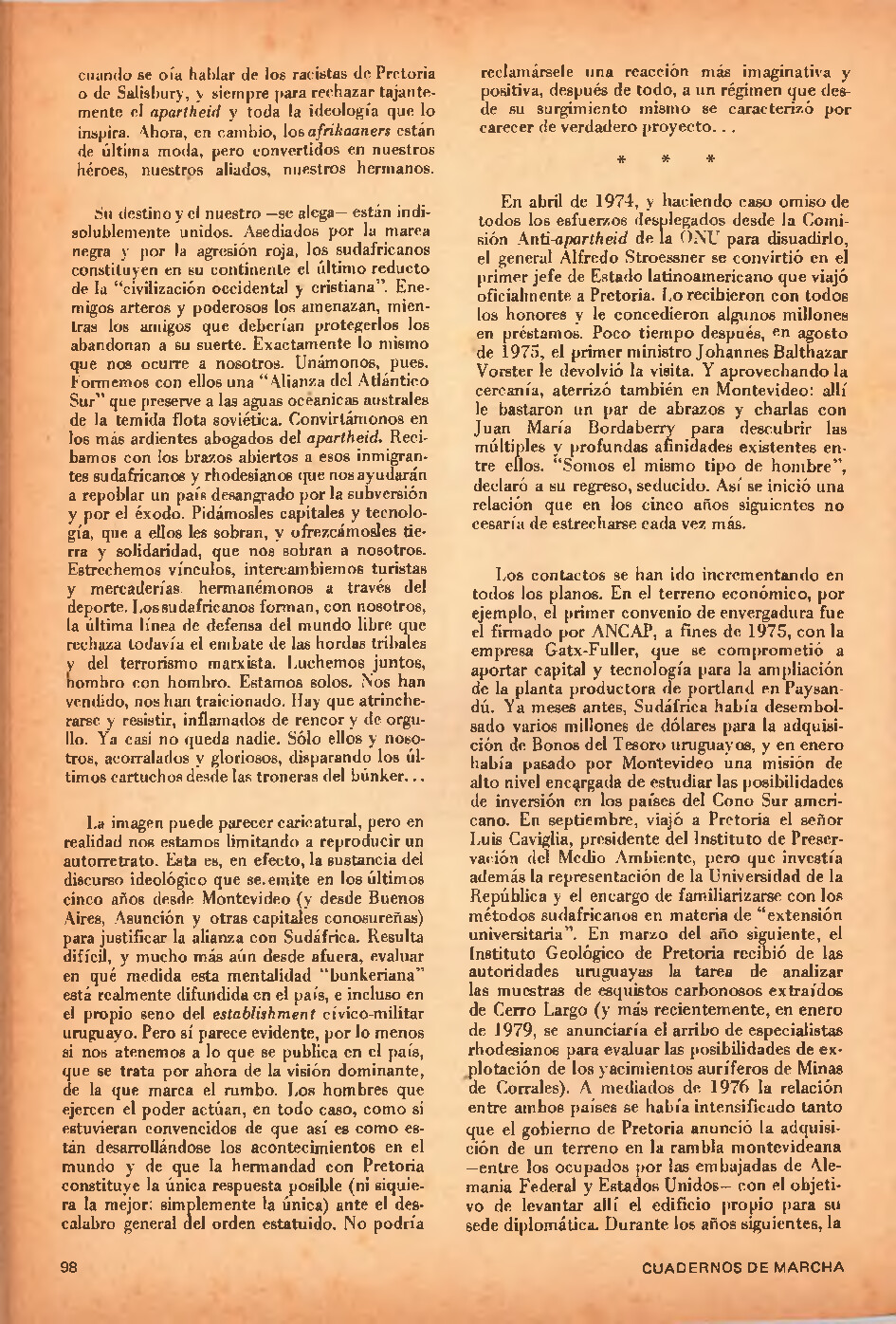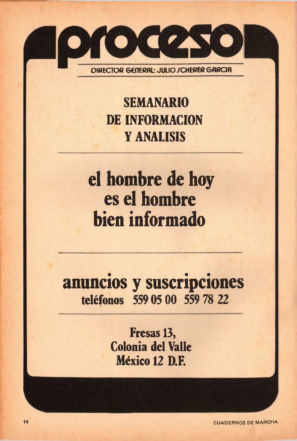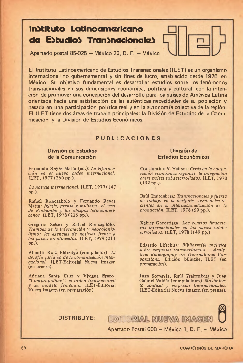 Medio de prensa Cuadernos de Marcha Tipo Del exilio Mes de publicación 6 Año de publicación 1979 Origen Anáforas Proyecto Anáforas Publicacion completa