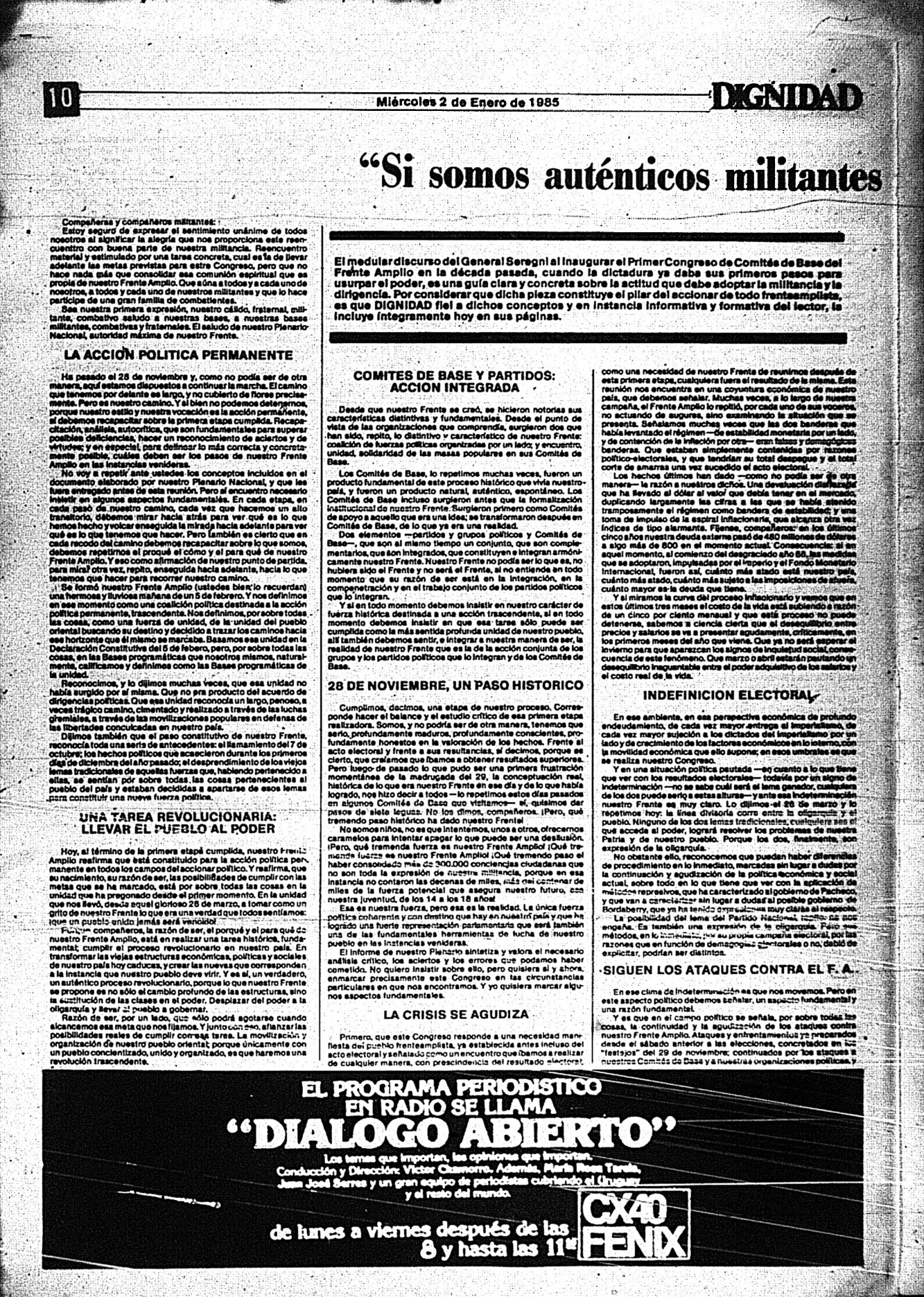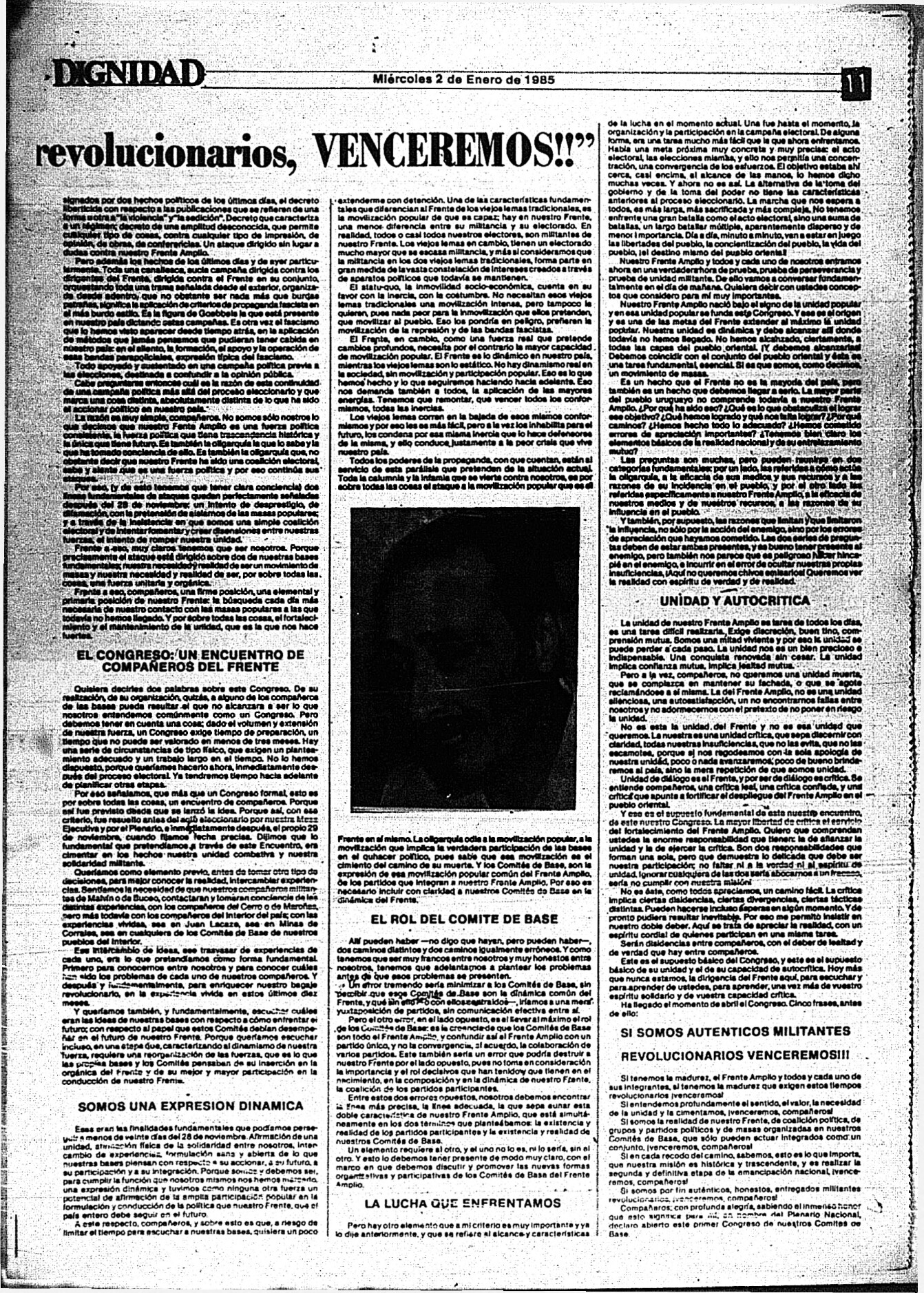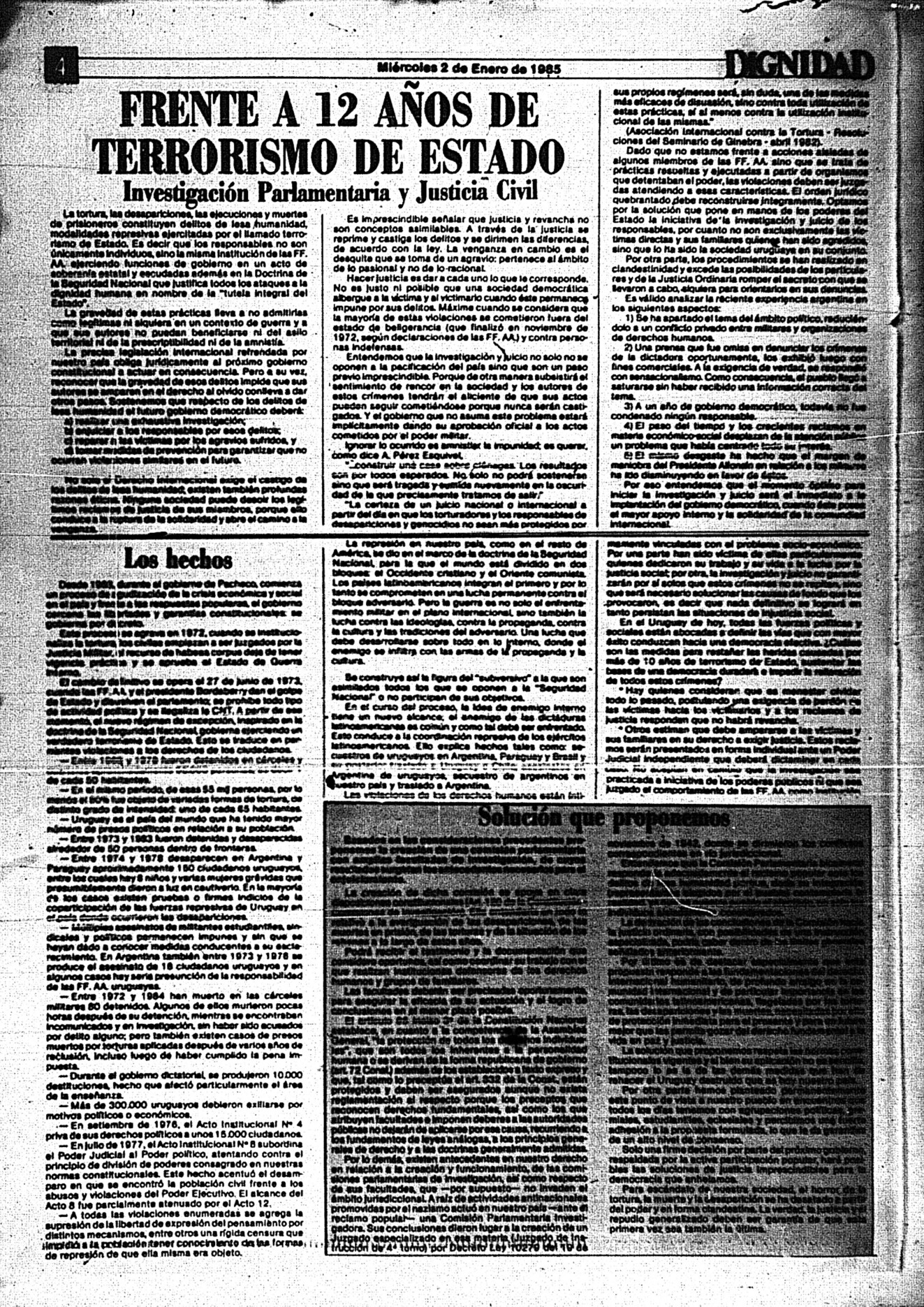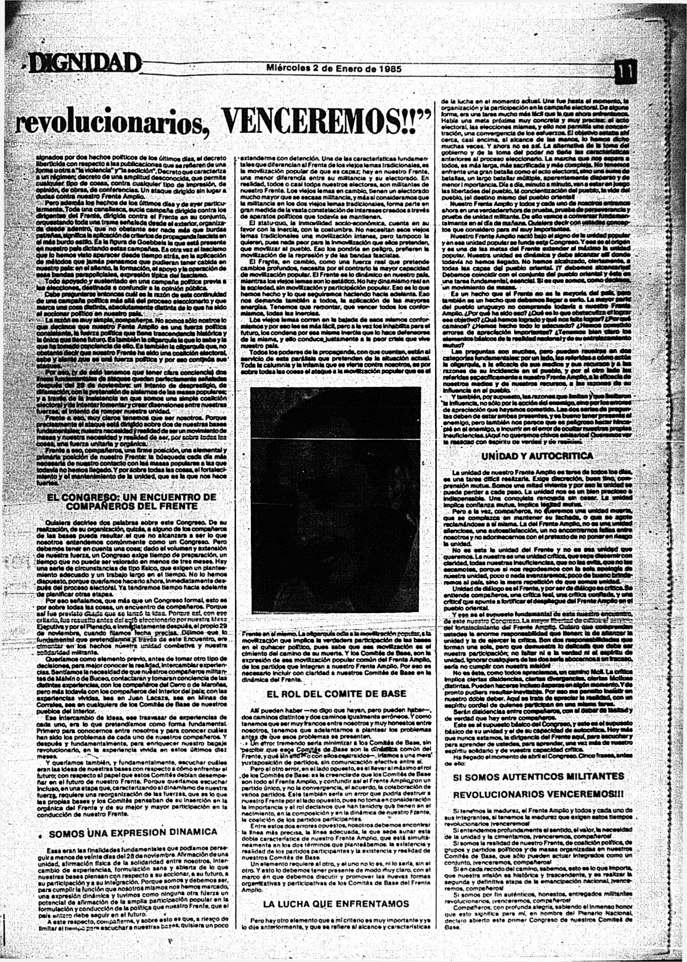 Medio de prensa Dignidad Tipo De la transición Día de publicación 2 Mes de publicación 1 Año de publicación 1985 Origen Archivo Berrutti Archivo Berrutti Publicacion completa