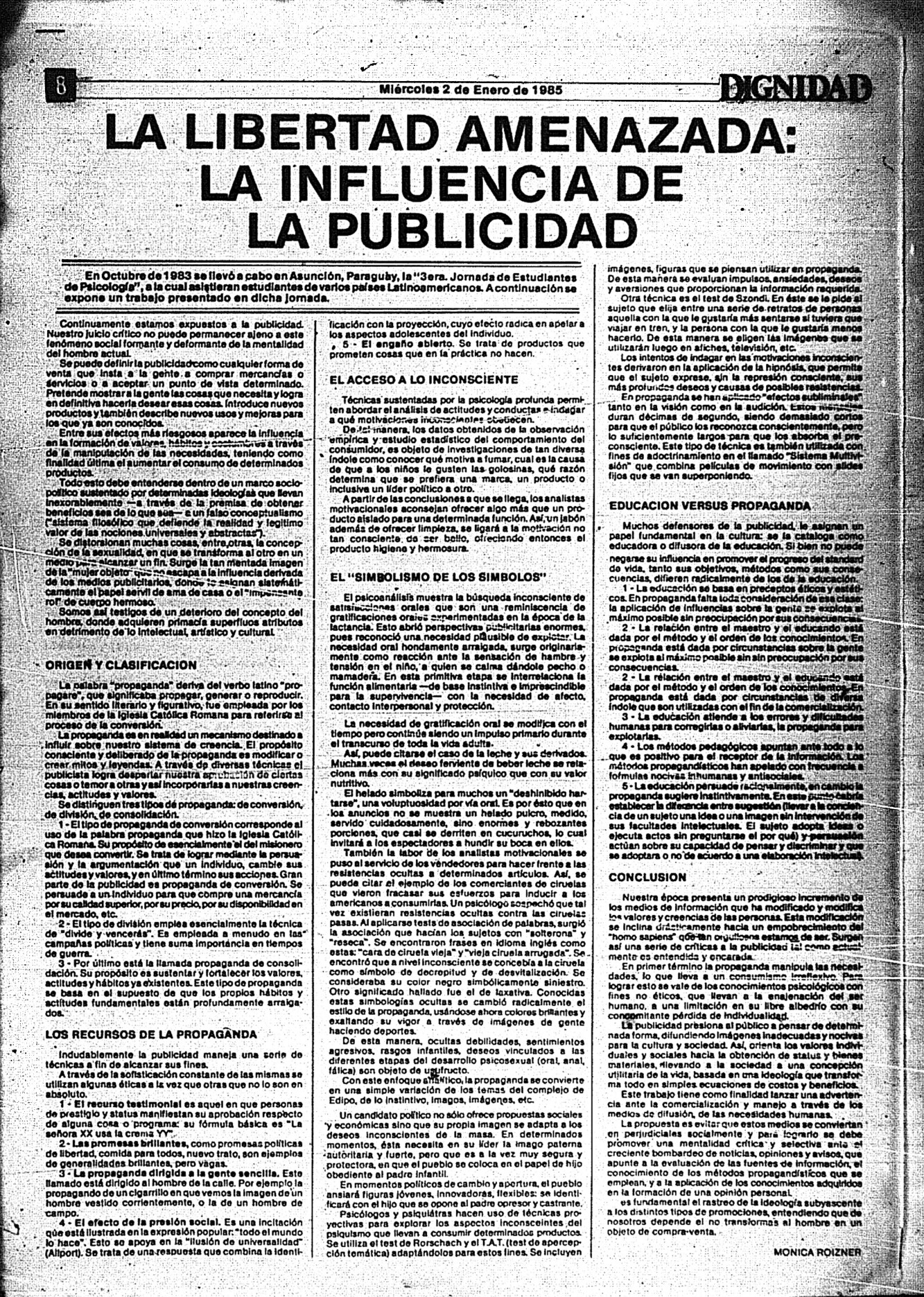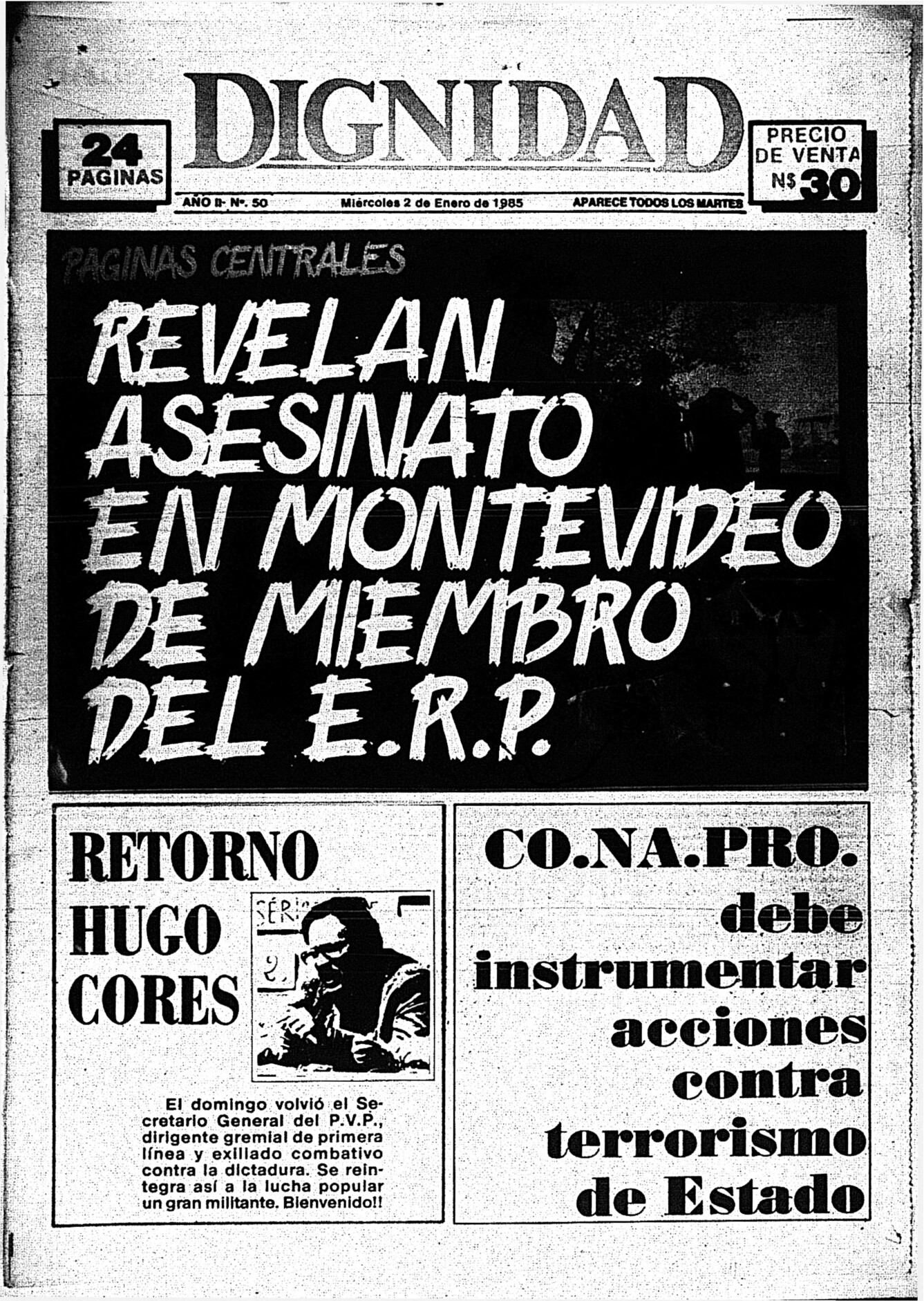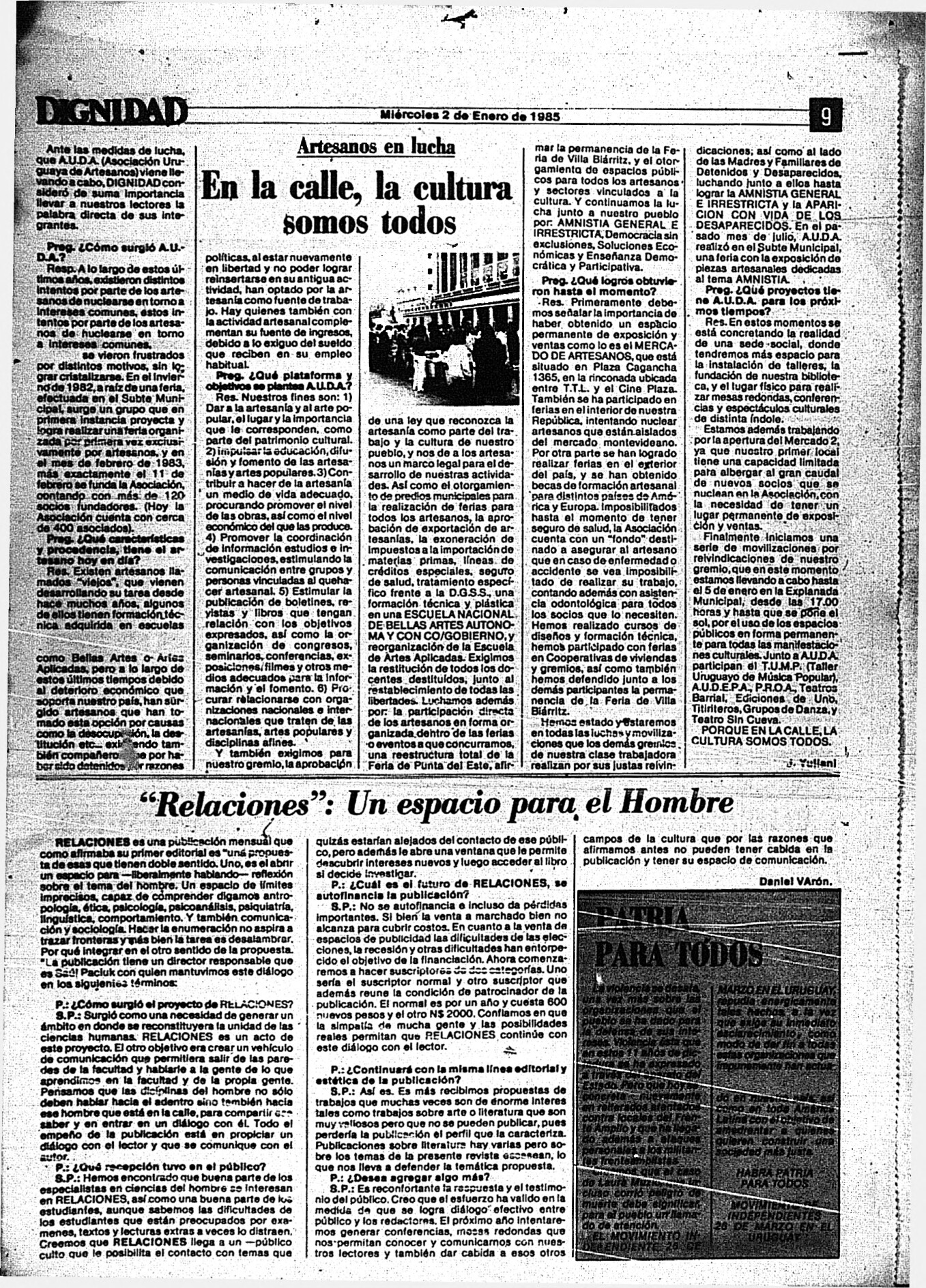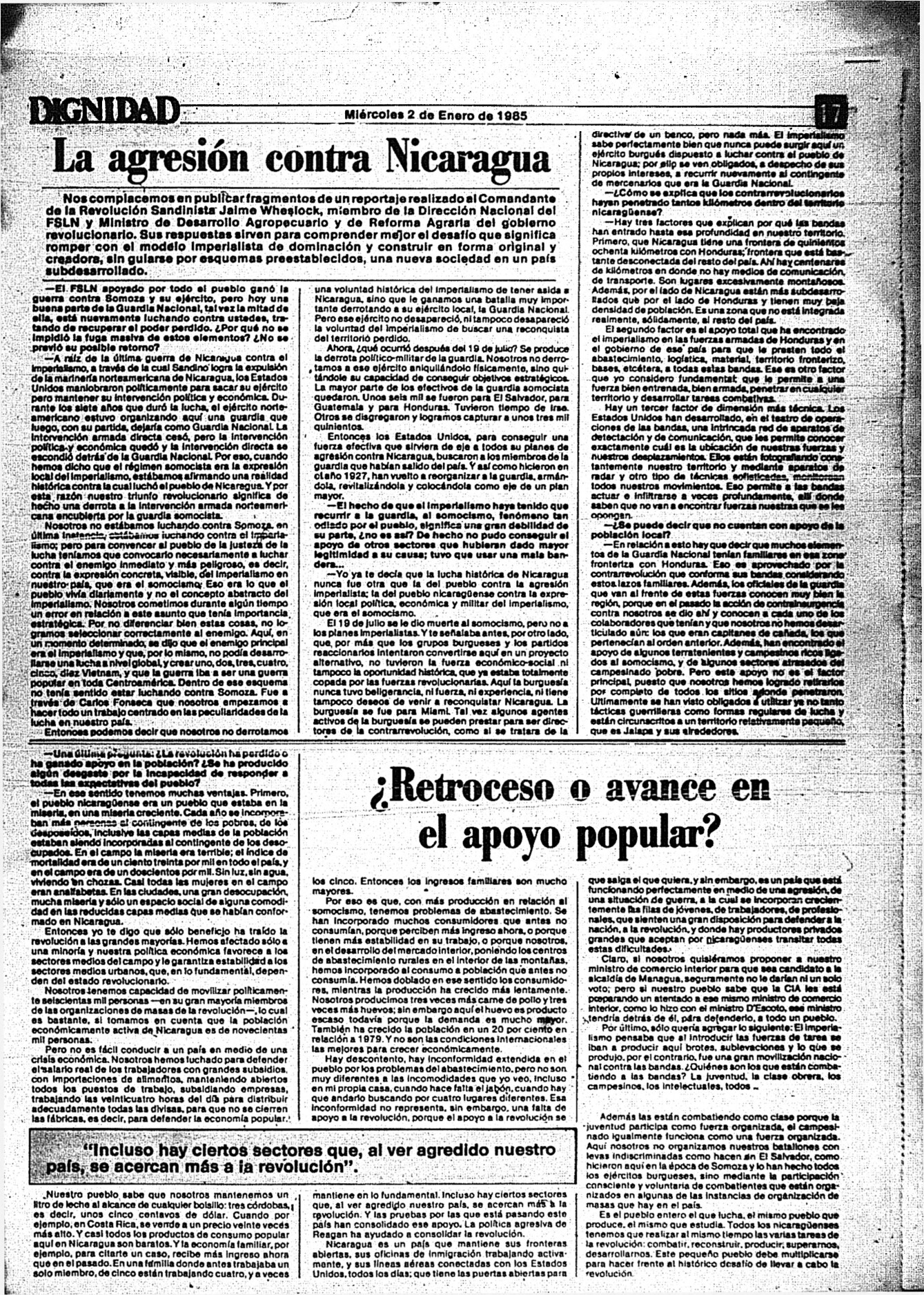 Medio de prensa Dignidad Tipo De la transición Día de publicación 2 Mes de publicación 1 Año de publicación 1985 Origen Archivo Berrutti Archivo Berrutti Publicacion completa