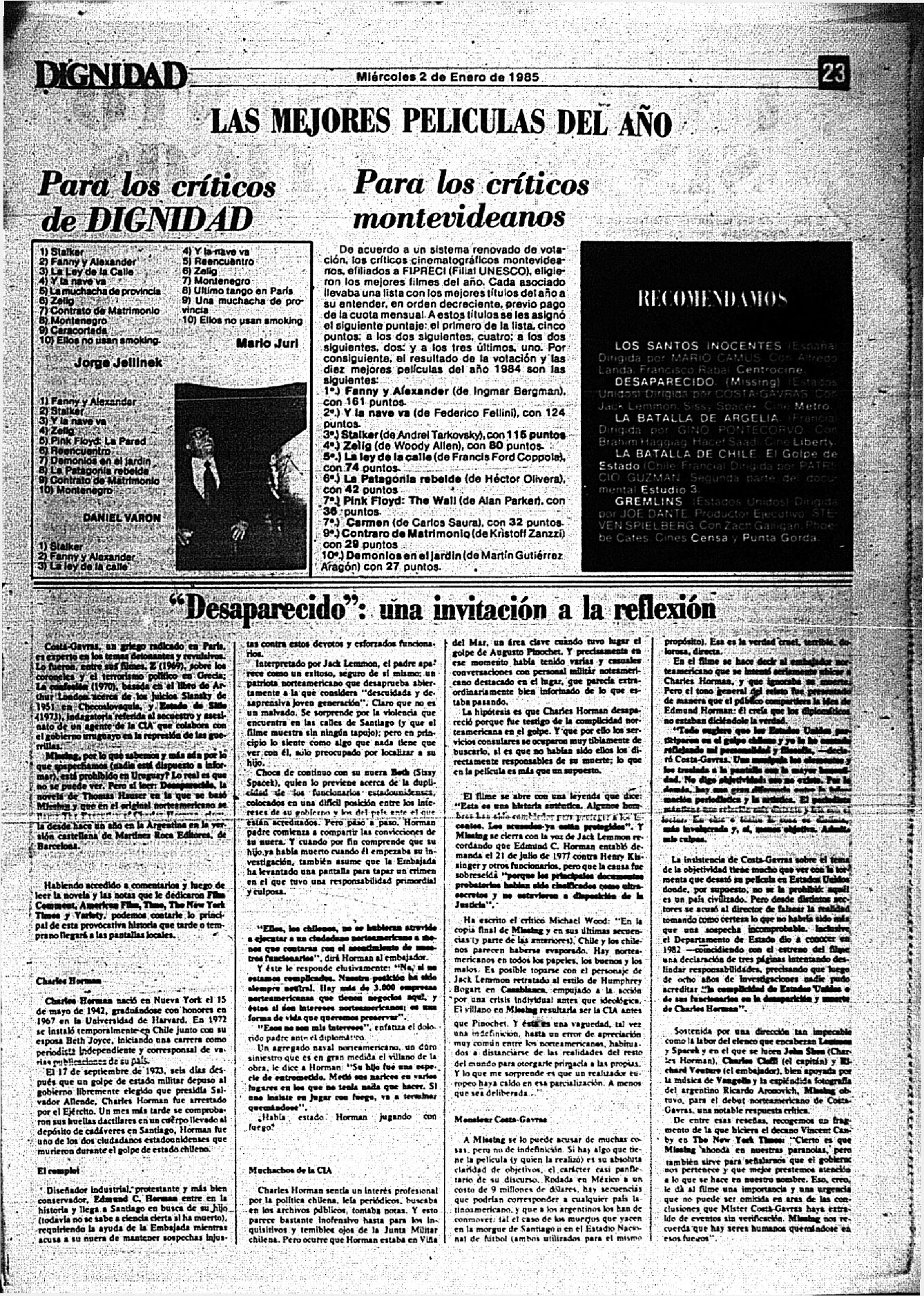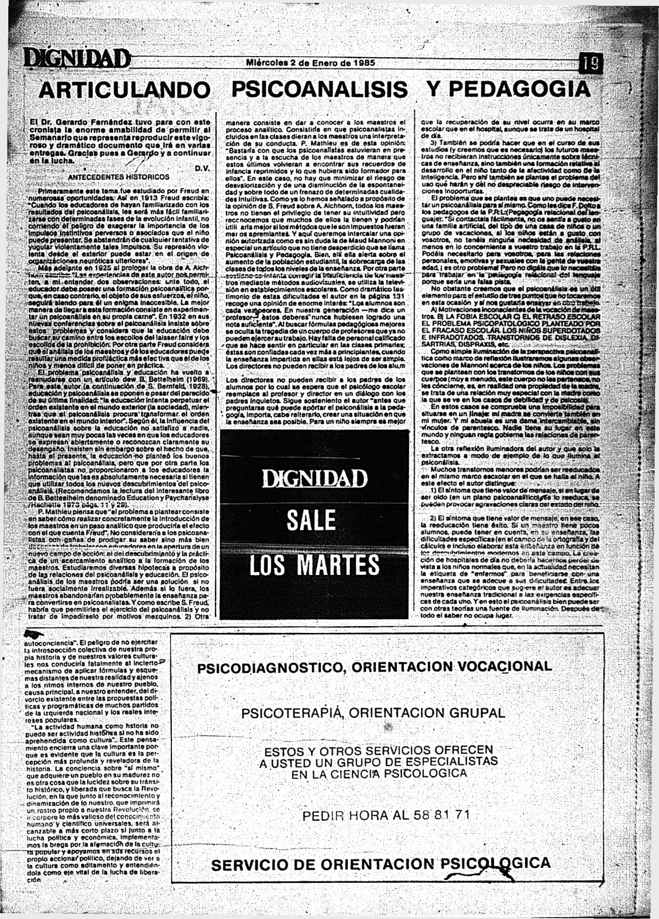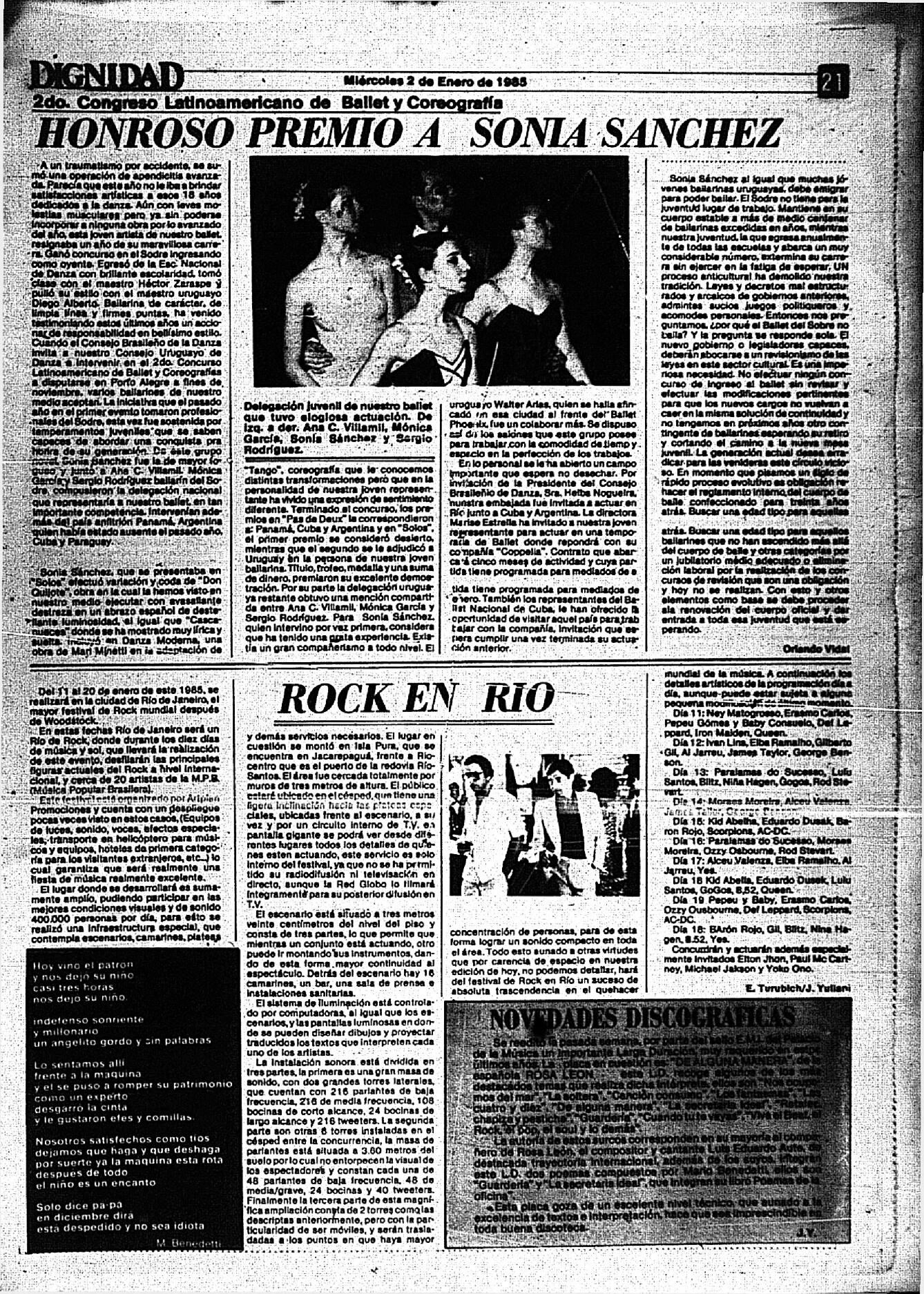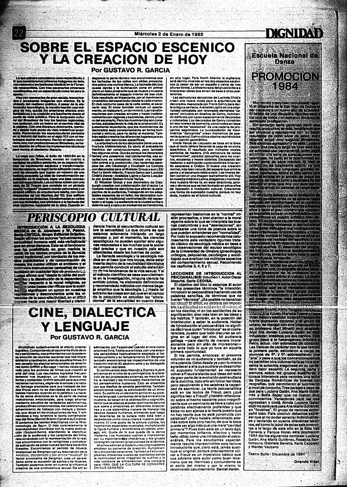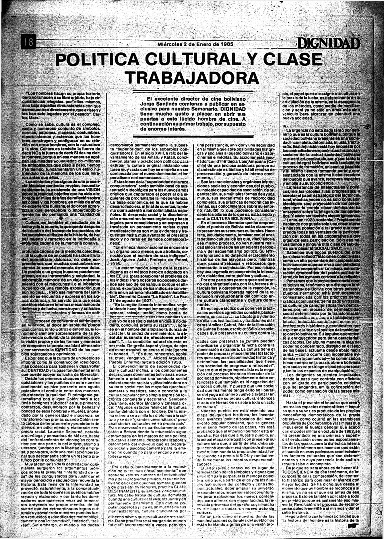 Medio de prensa Dignidad Tipo De la transición Día de publicación 2 Mes de publicación 1 Año de publicación 1985 Origen Archivo Berrutti Archivo Berrutti Publicacion completa