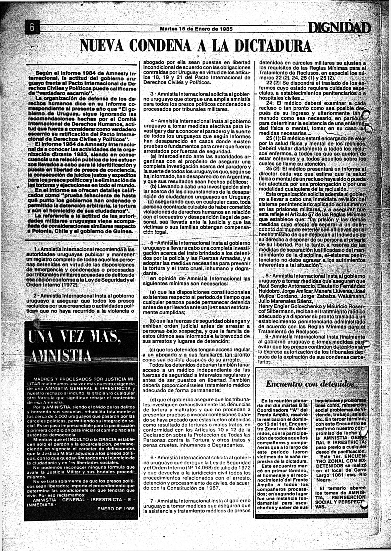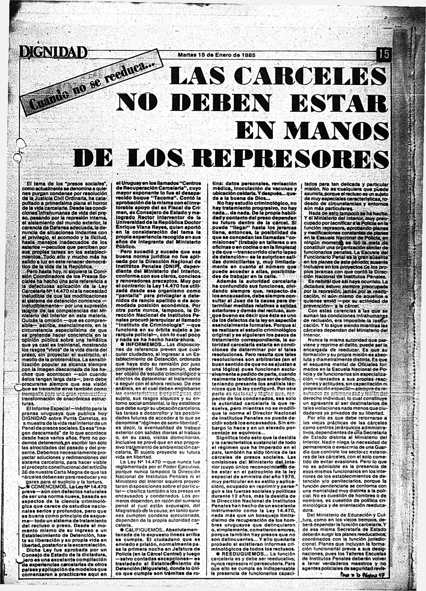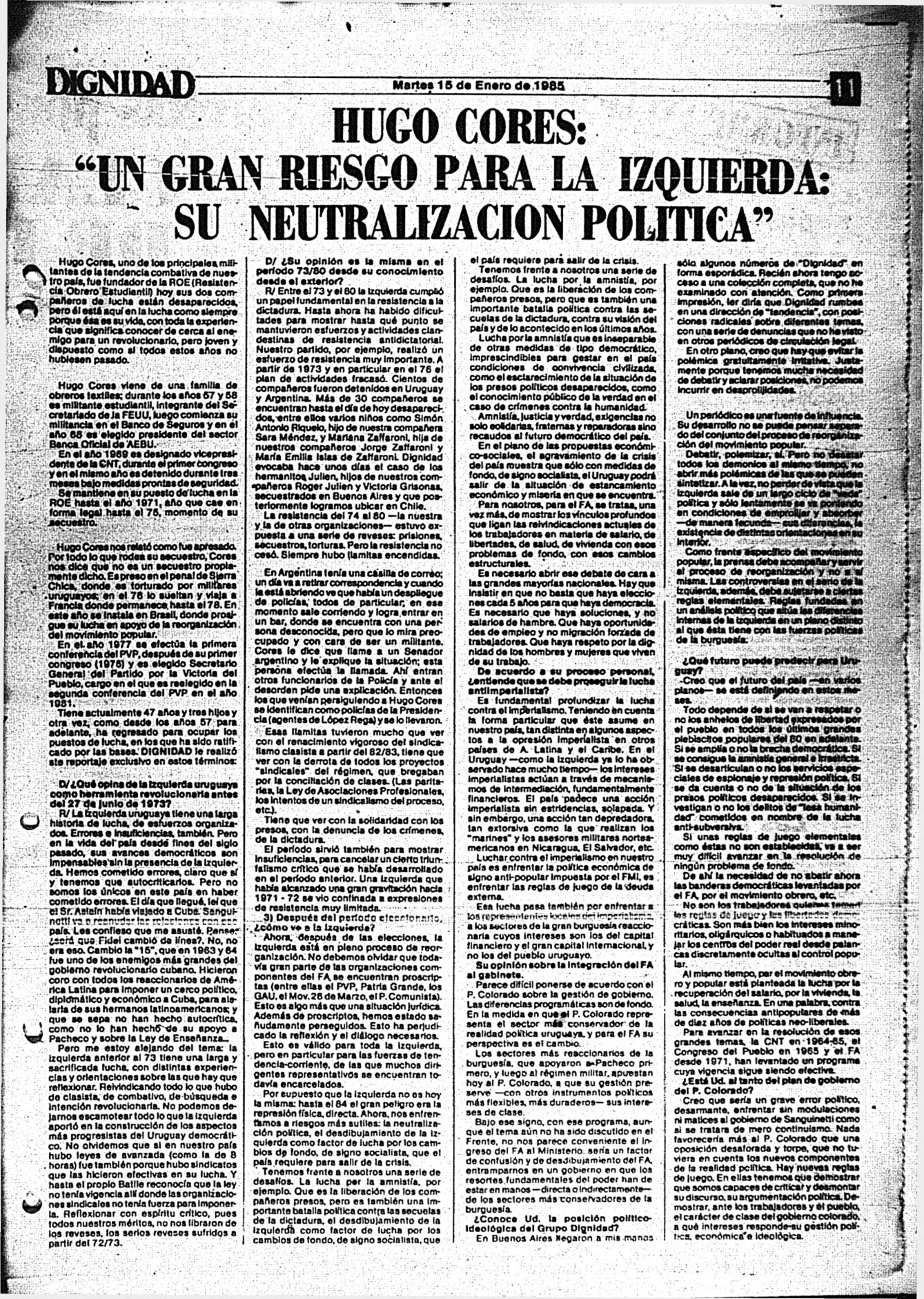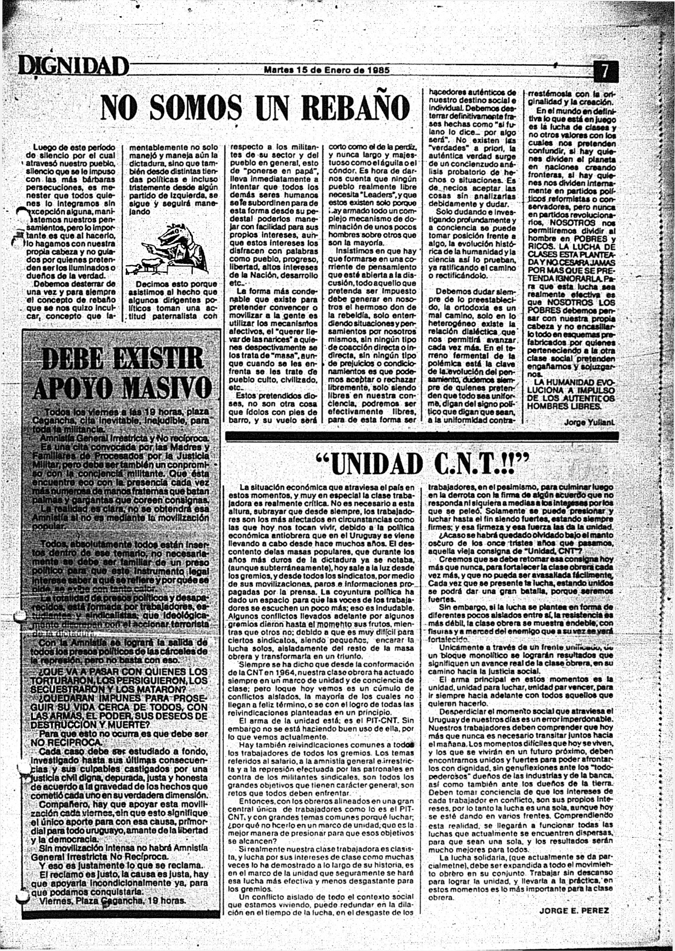 Medio de prensa Dignidad Tipo De la transición Día de publicación 15 Mes de publicación 1 Año de publicación 1985 Origen Archivo Berrutti Archivo Berrutti Publicacion completa
