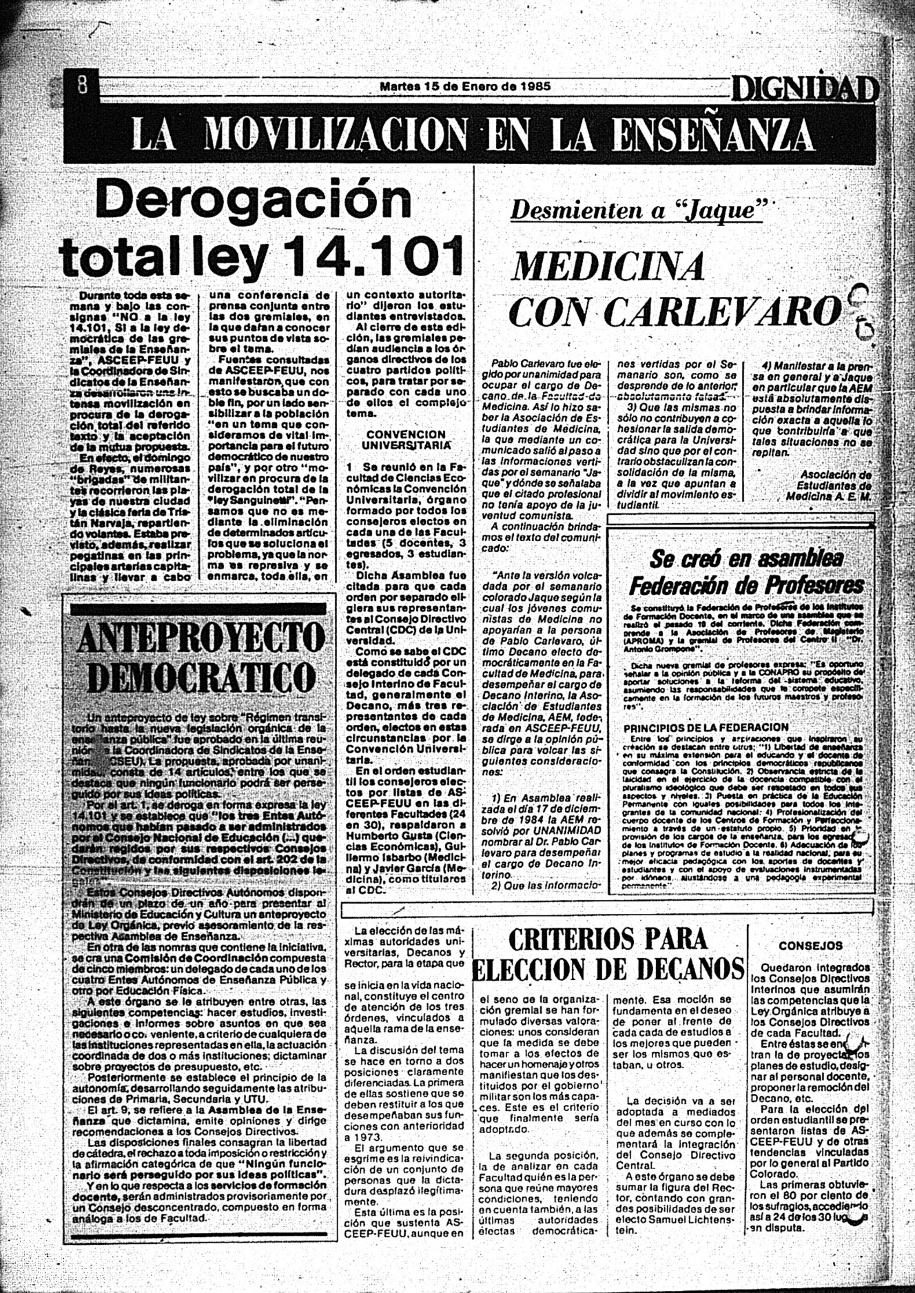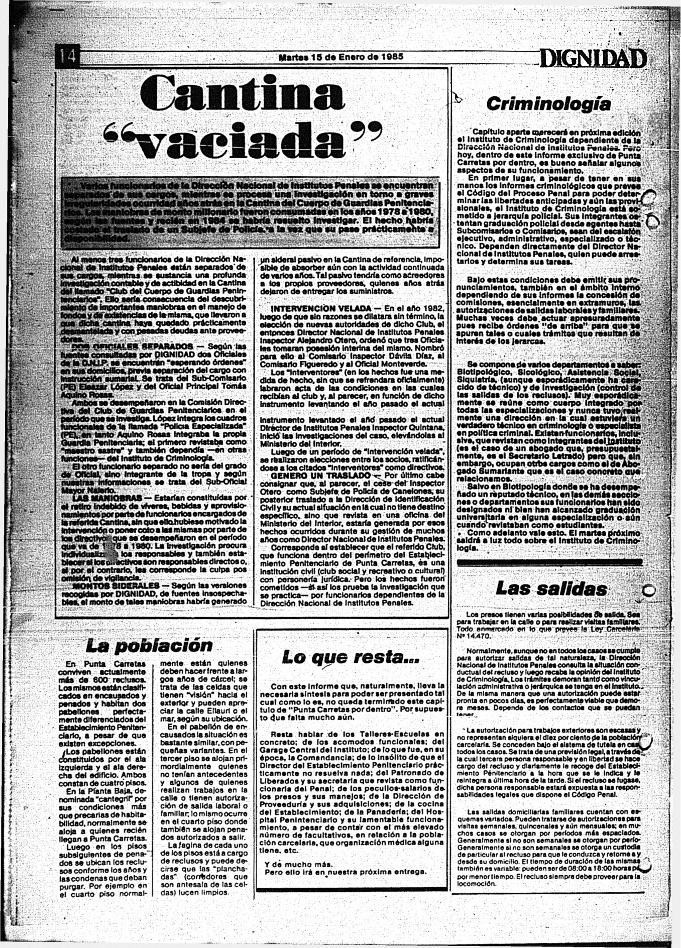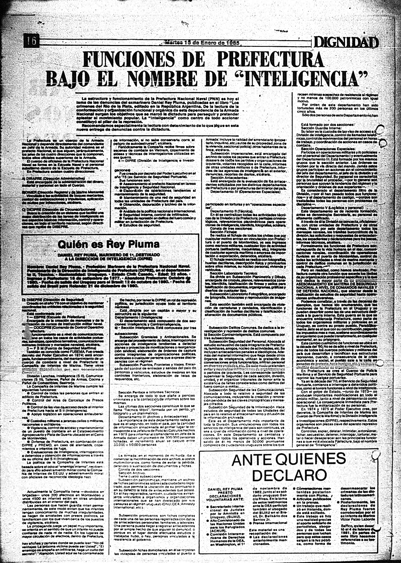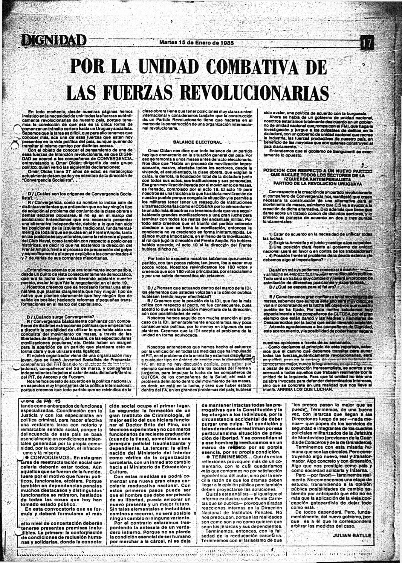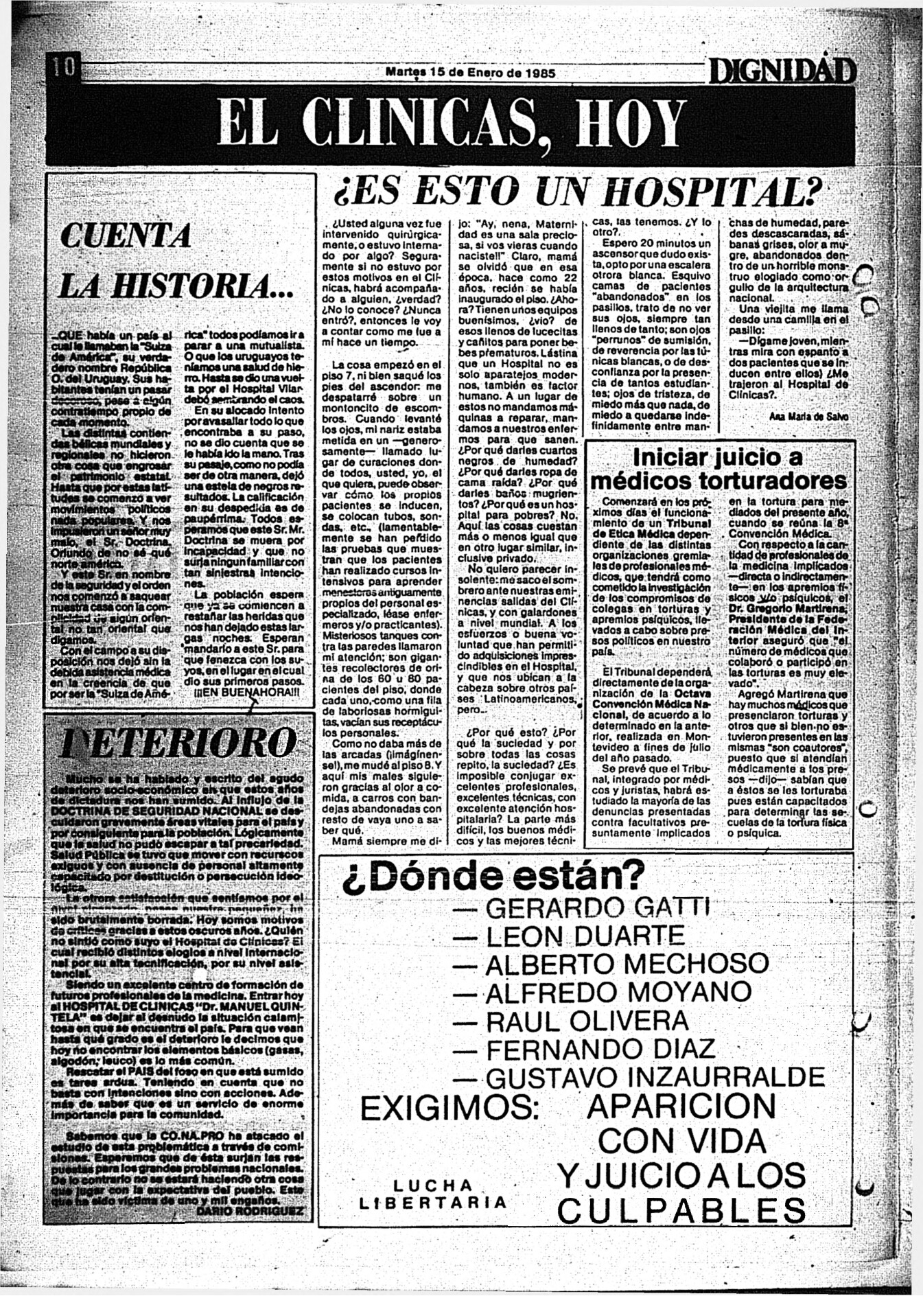 Medio de prensa Dignidad Tipo De la transición Día de publicación 15 Mes de publicación 1 Año de publicación 1985 Origen Archivo Berrutti Archivo Berrutti Publicacion completa