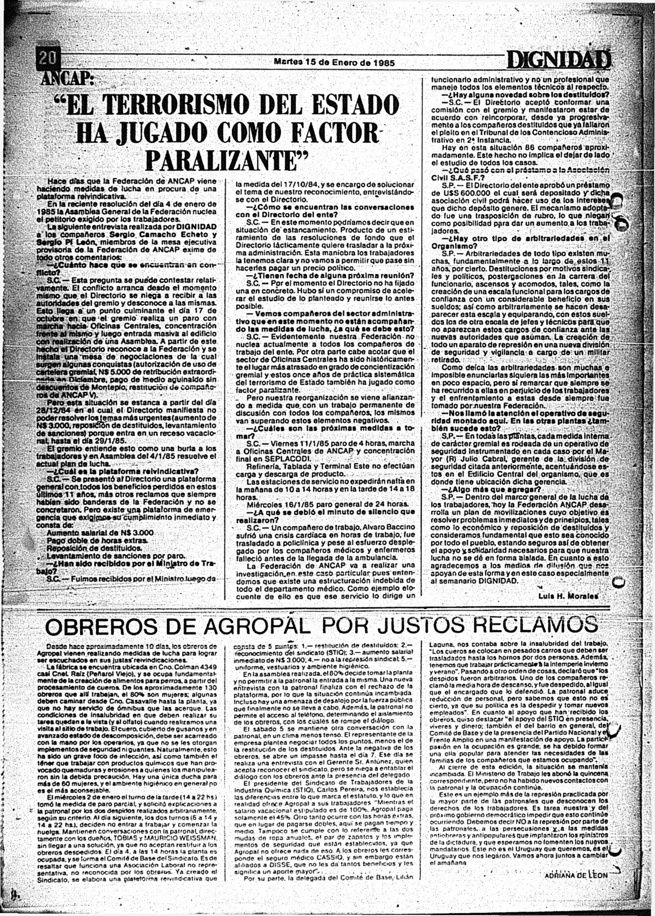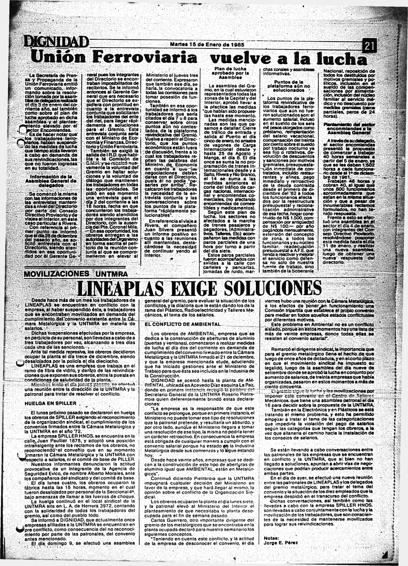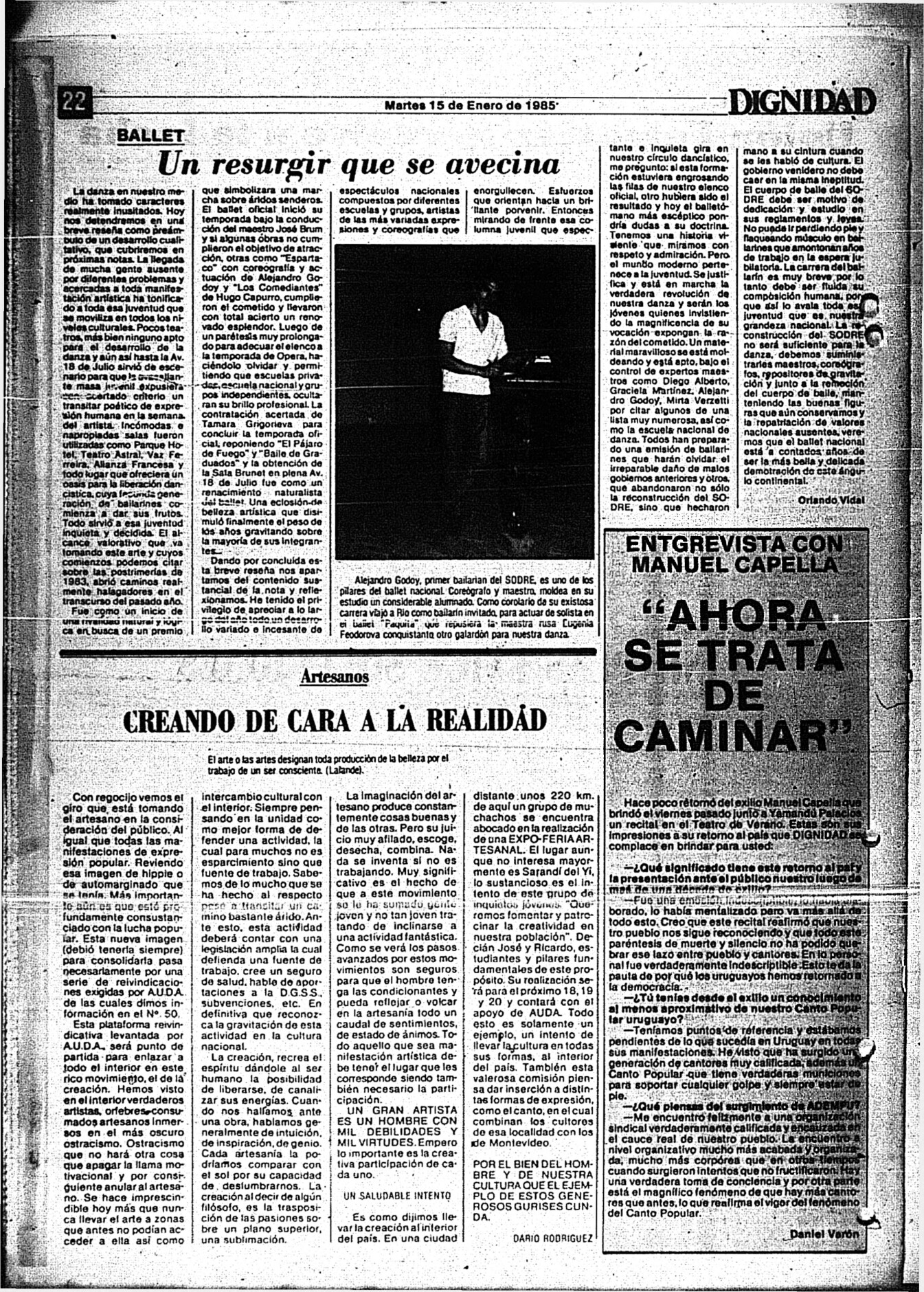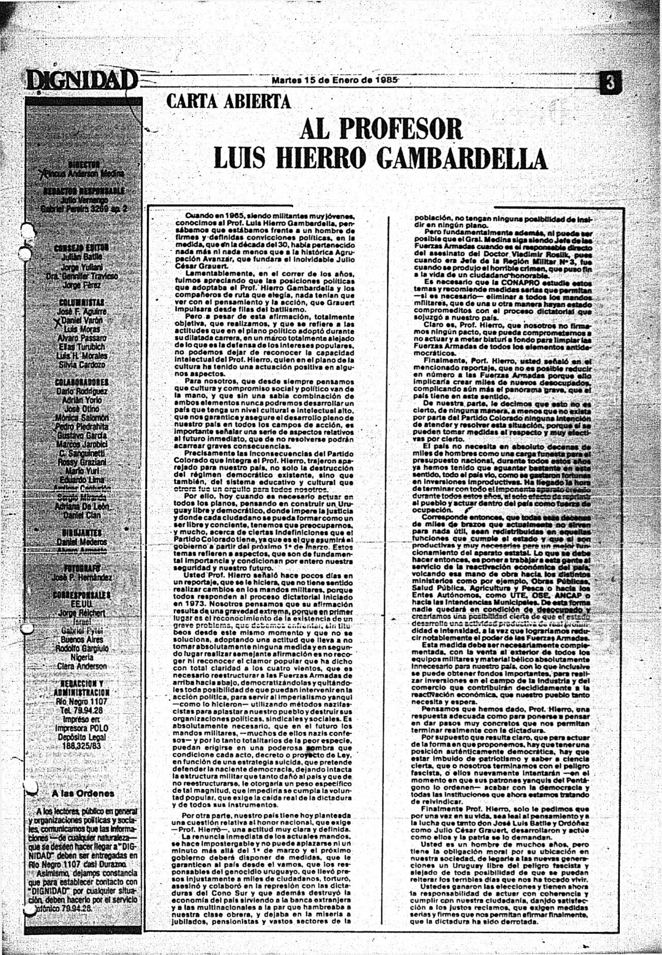 Medio de prensa Dignidad Tipo De la transición Día de publicación 15 Mes de publicación 1 Año de publicación 1985 Origen Archivo Berrutti Archivo Berrutti Publicacion completa