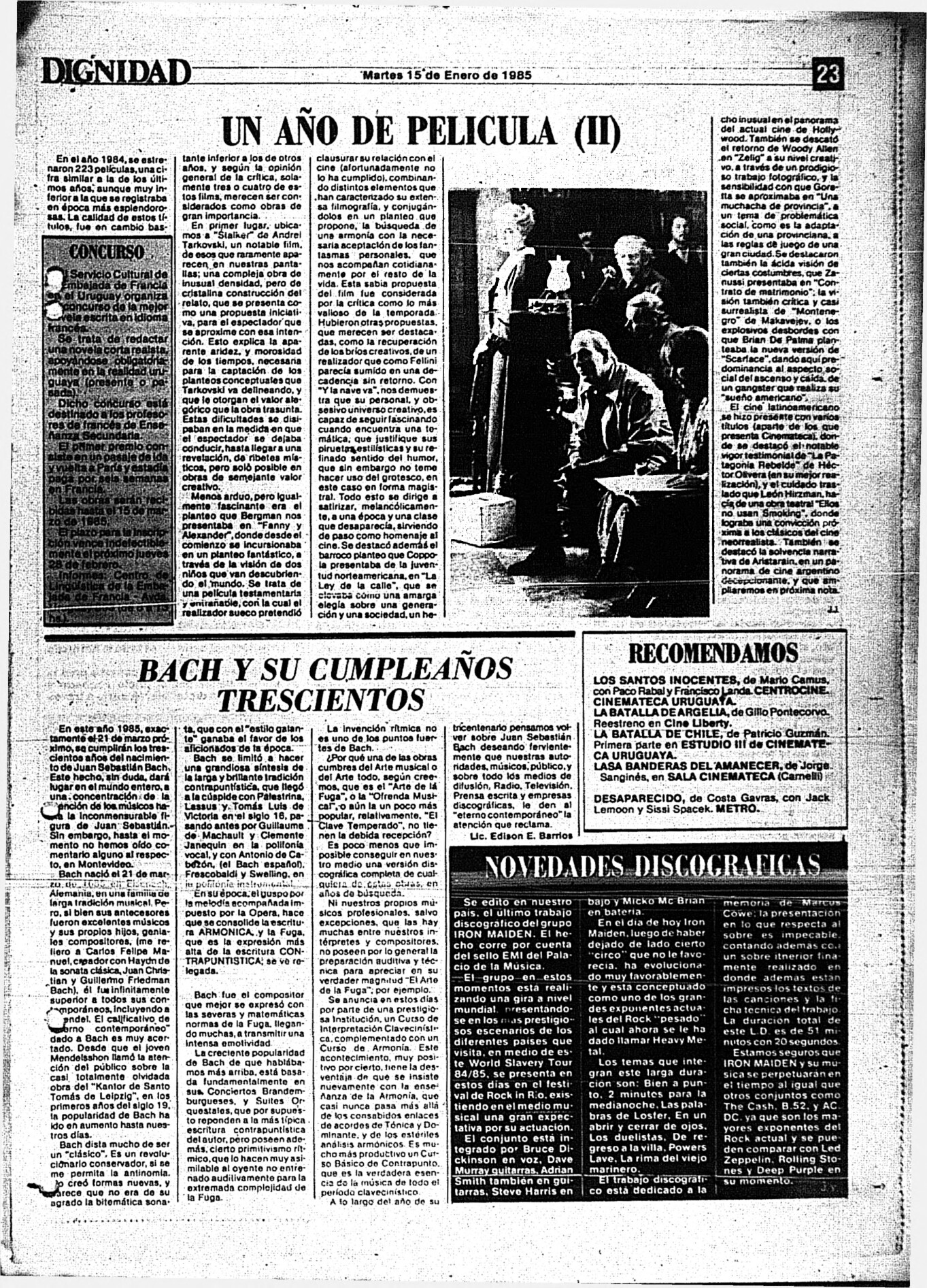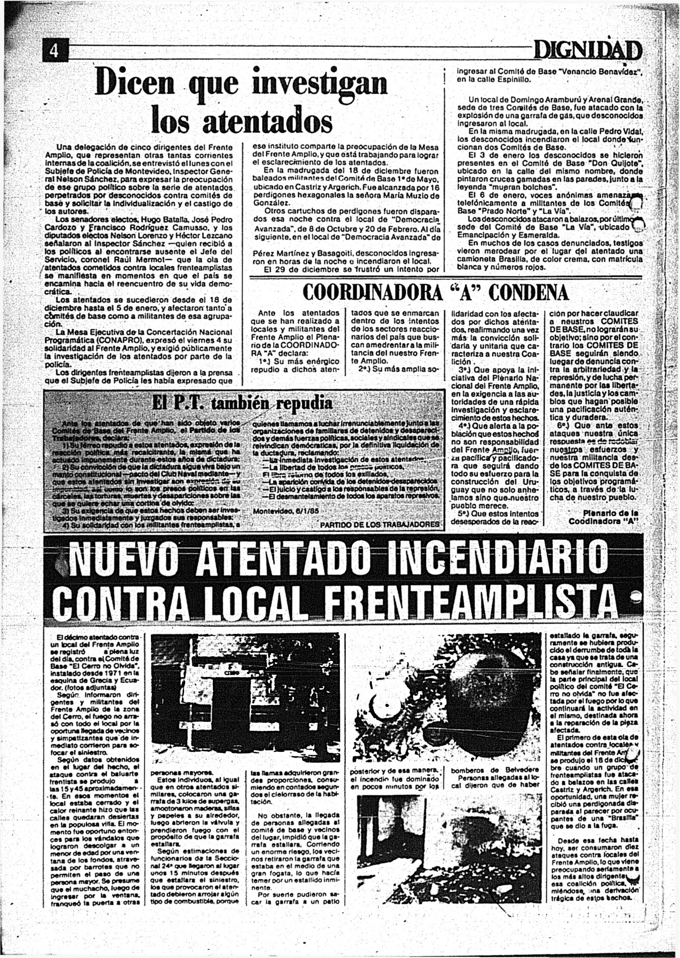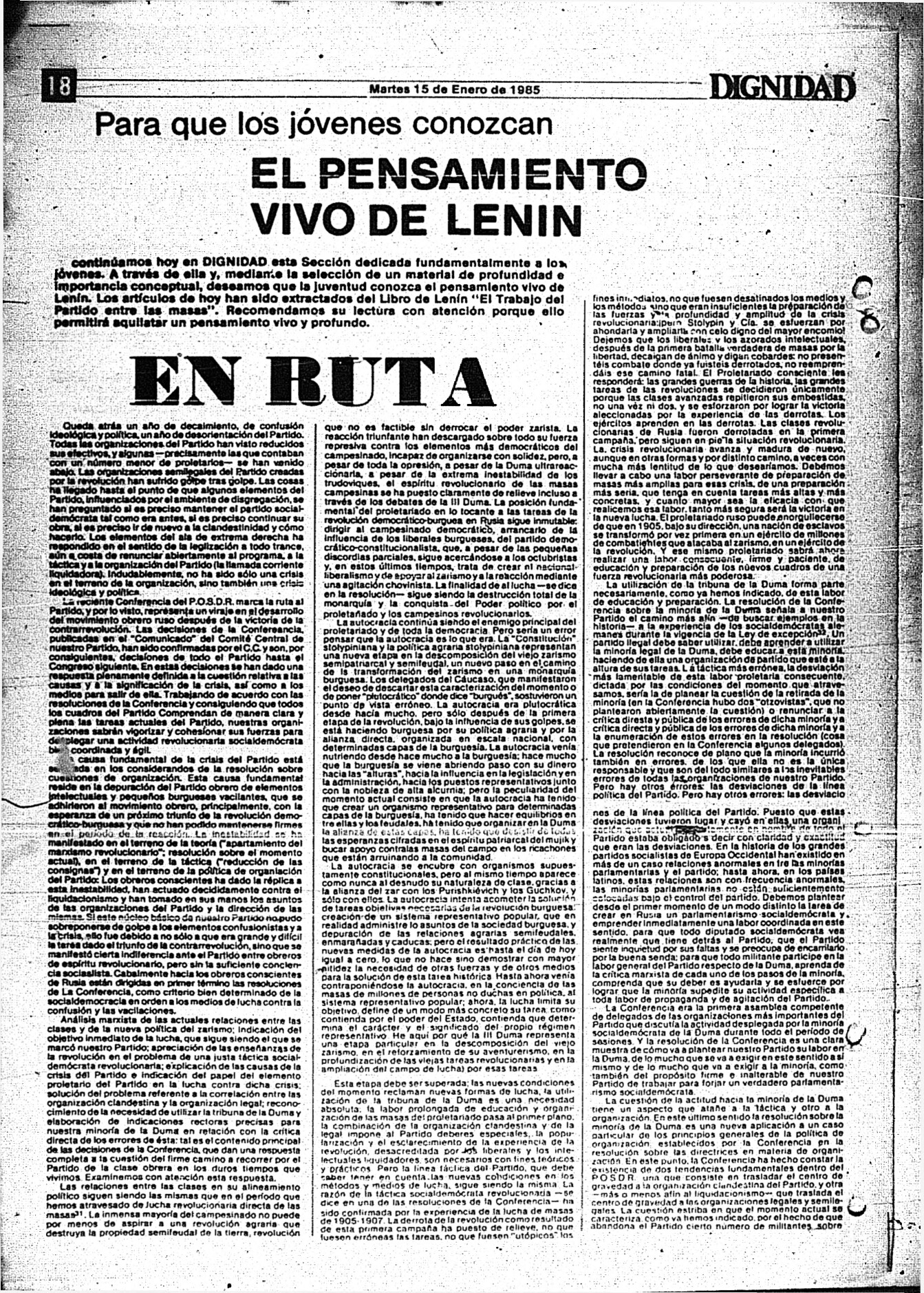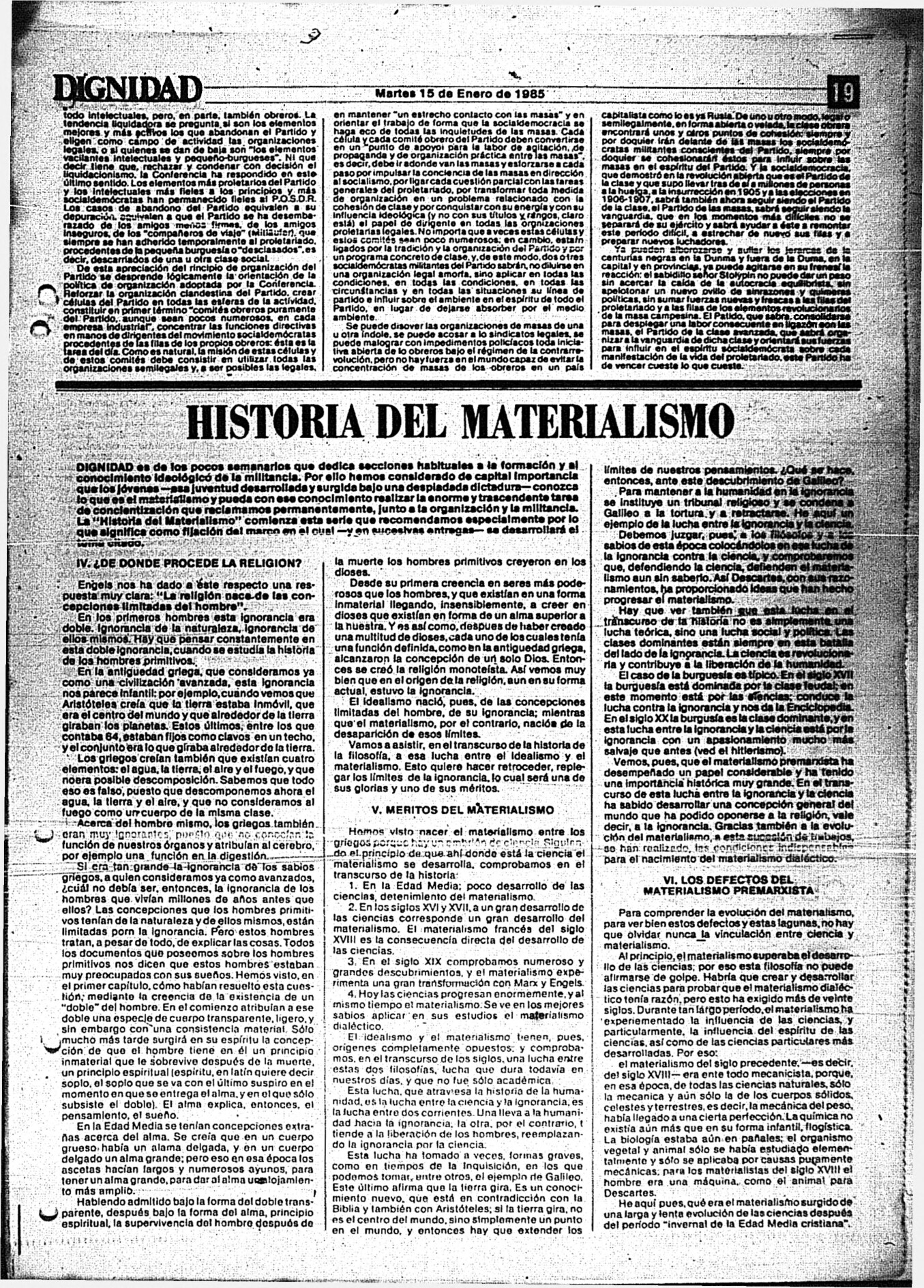 Medio de prensa Dignidad Tipo De la transición Día de publicación 15 Mes de publicación 1 Año de publicación 1985 Origen Archivo Berrutti Archivo Berrutti Publicacion completa