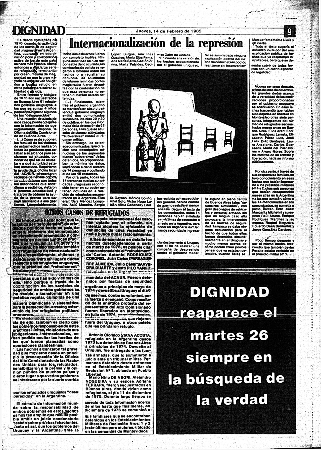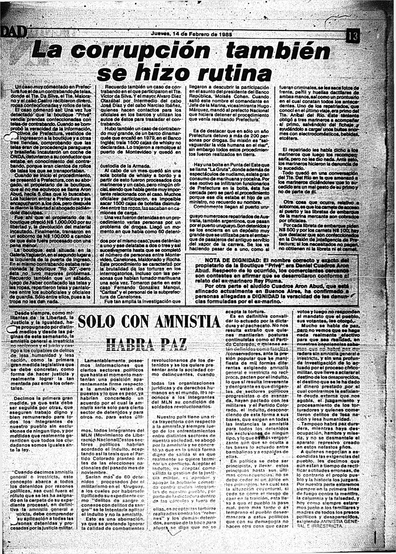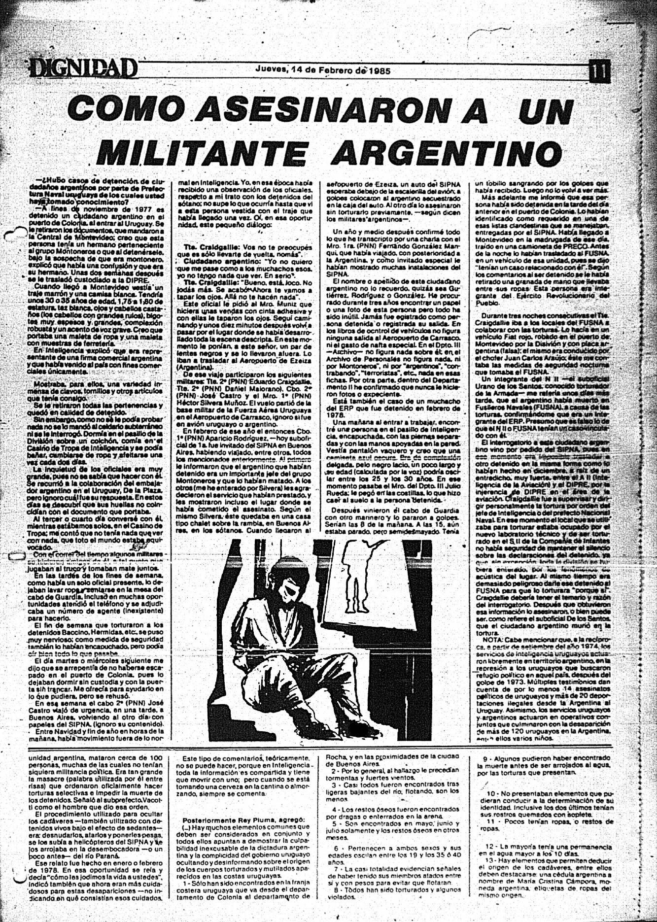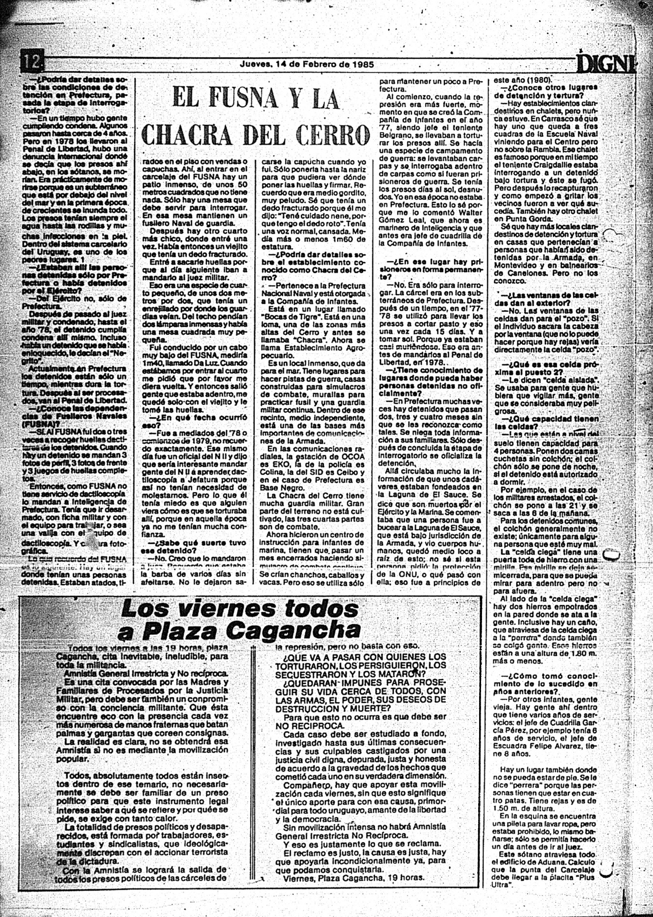Medio de prensa Dignidad Tipo De la transición Día de publicación 14 Mes de publicación 2 Año de publicación 1985 Origen Archivo Berrutti Archivo Berrutti Publicacion completa