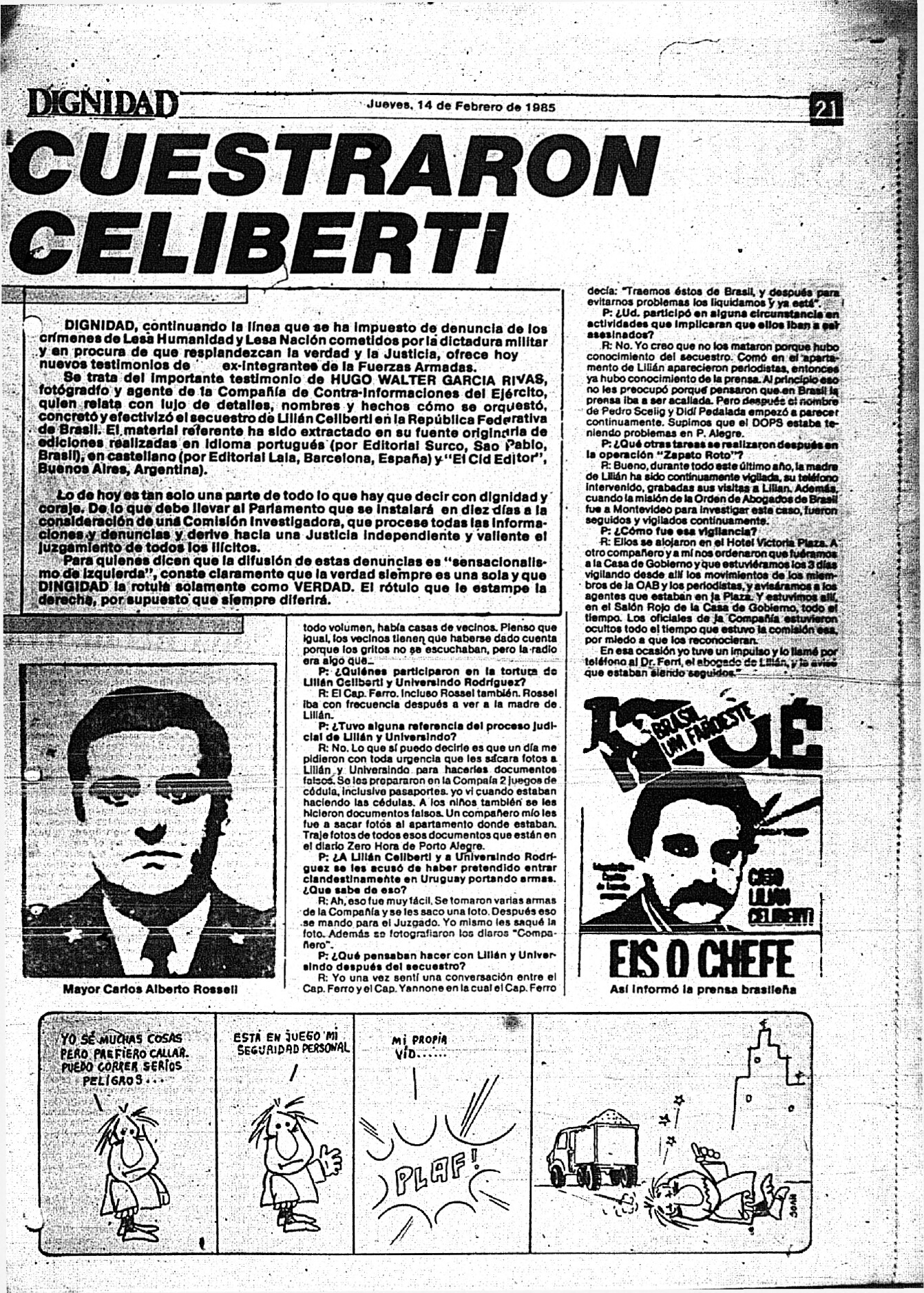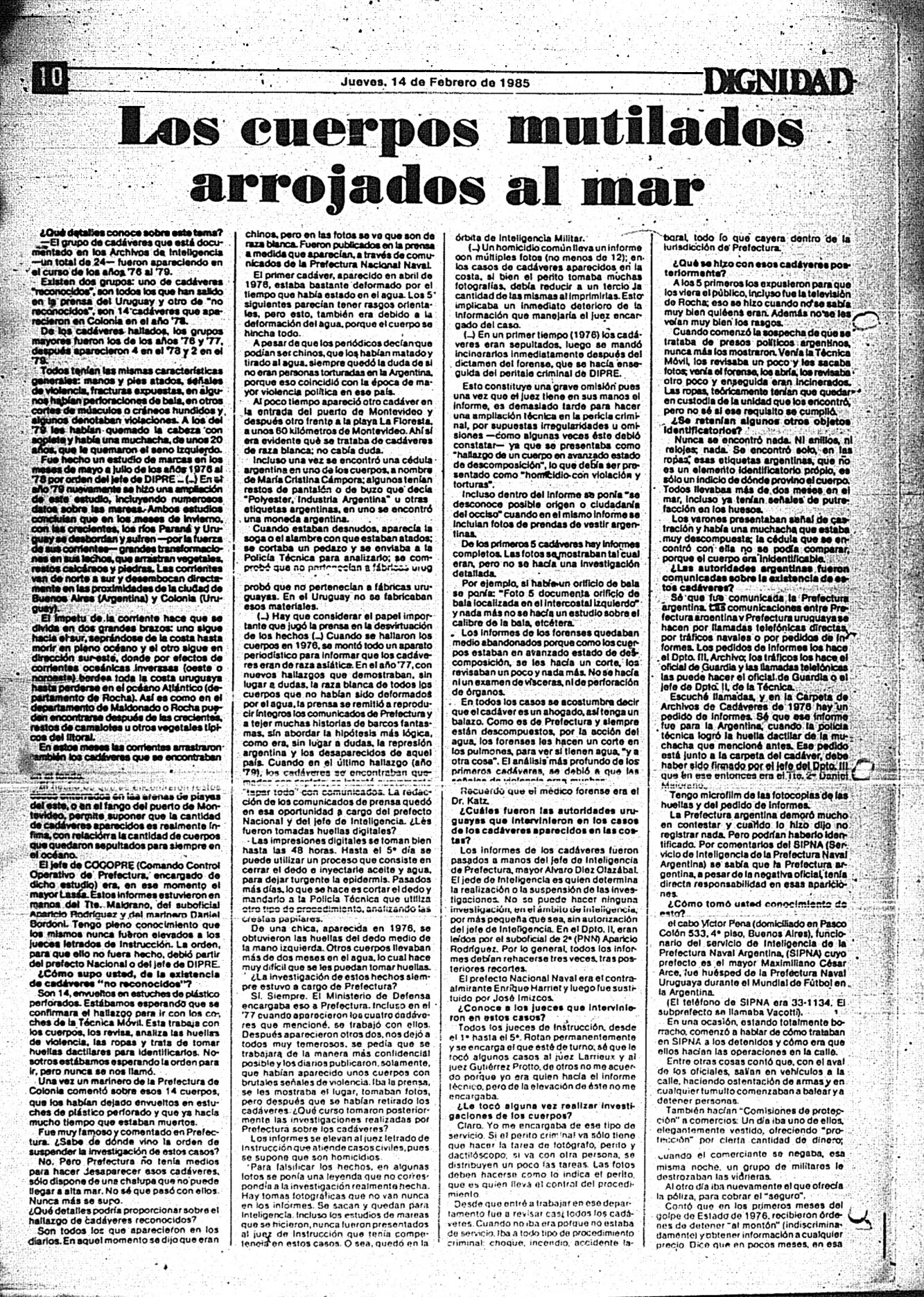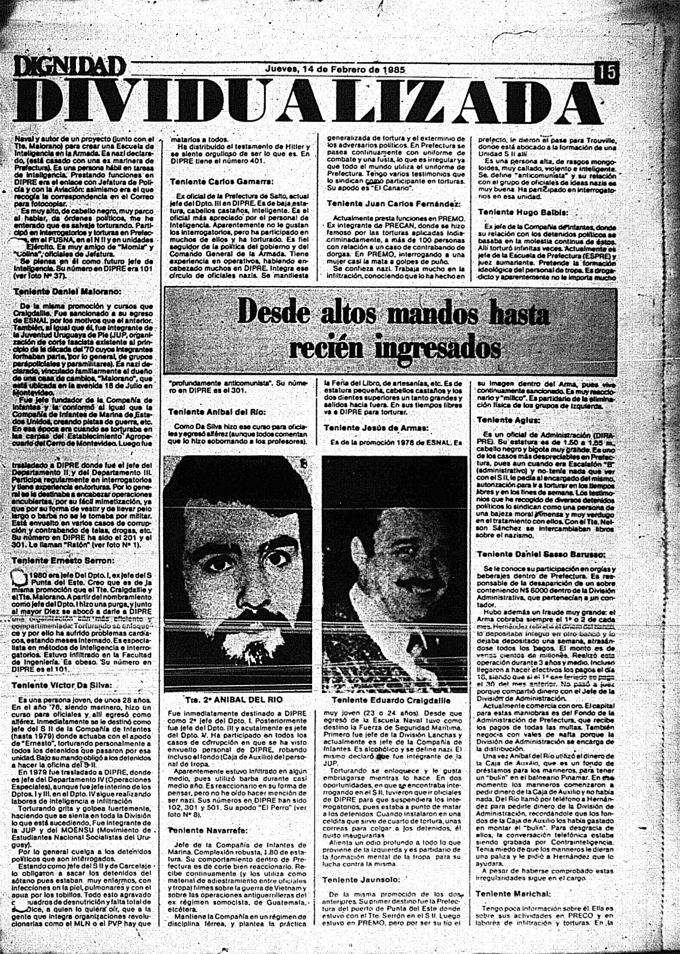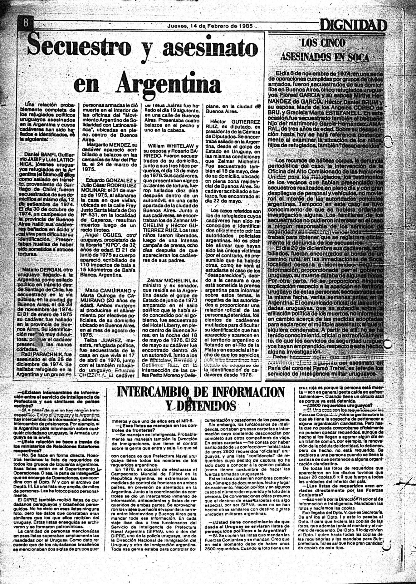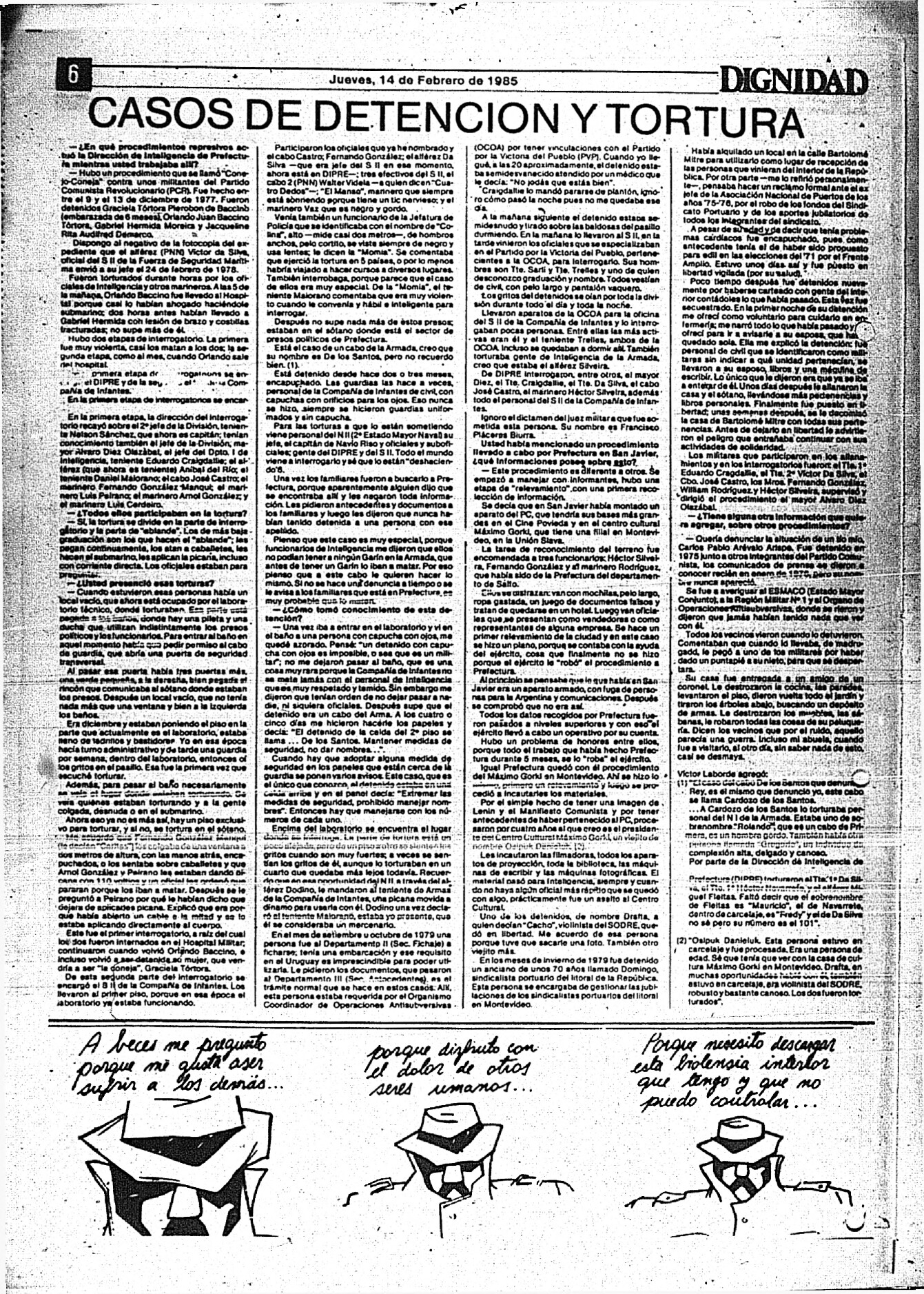 Medio de prensa Dignidad Tipo De la transición Día de publicación 14 Mes de publicación 2 Año de publicación 1985 Origen Archivo Berrutti Archivo Berrutti Publicacion completa