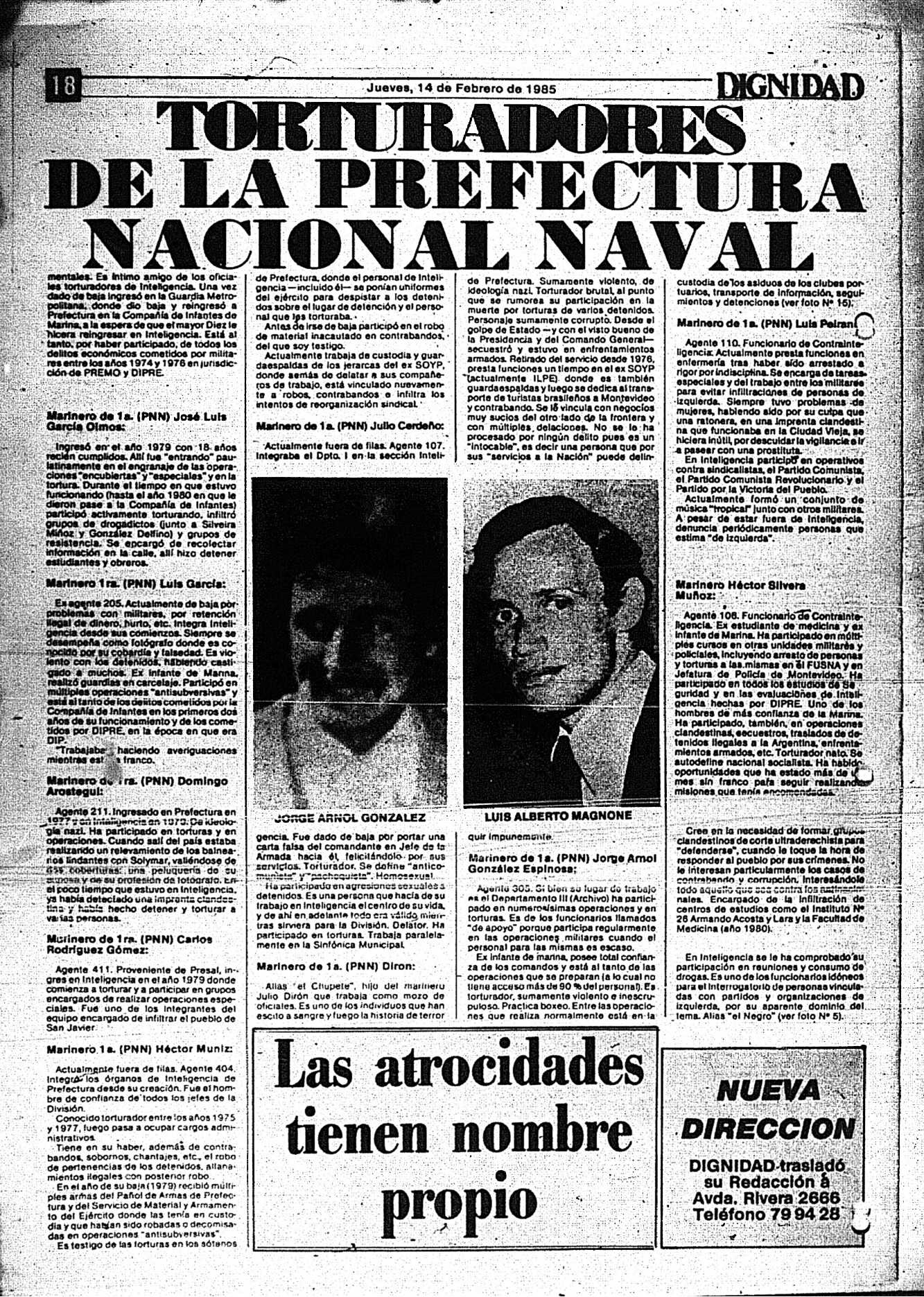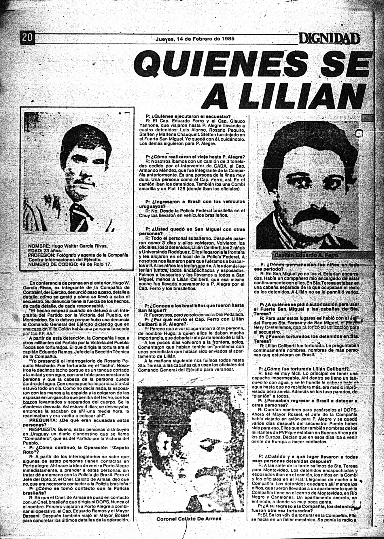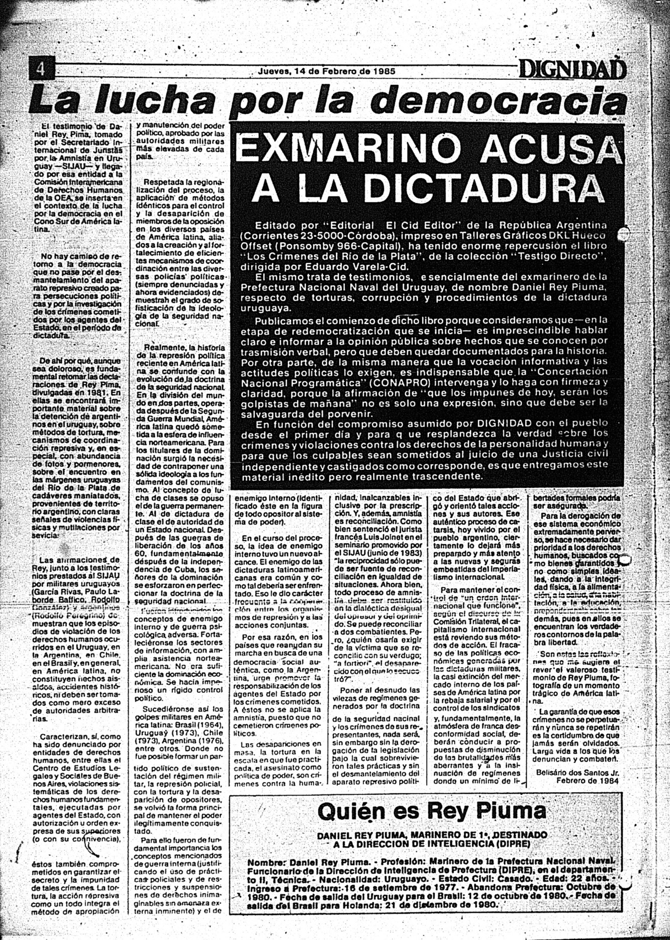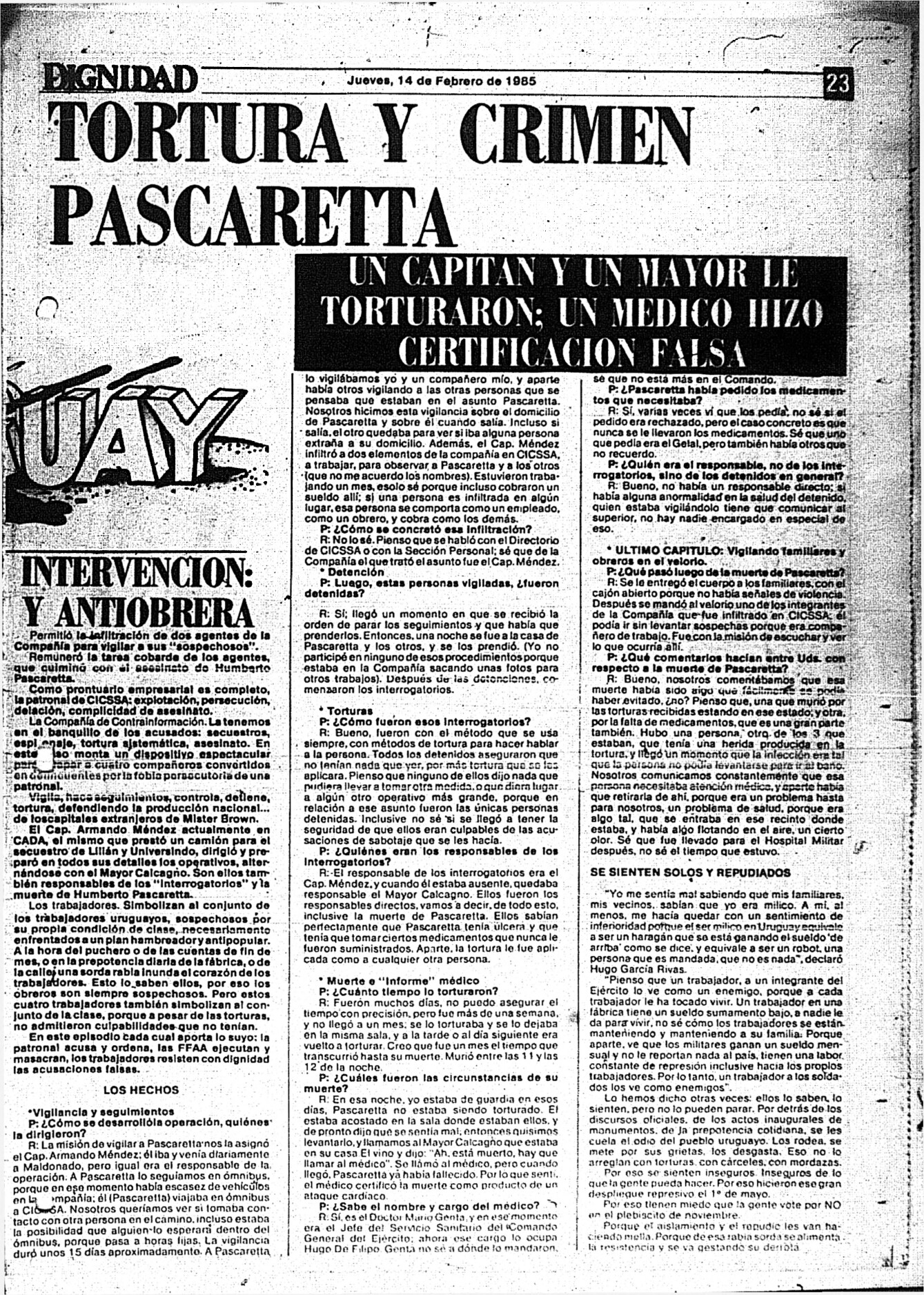 Medio de prensa Dignidad Tipo De la transición Día de publicación 14 Mes de publicación 2 Año de publicación 1985 Origen Archivo Berrutti Archivo Berrutti Publicacion completa