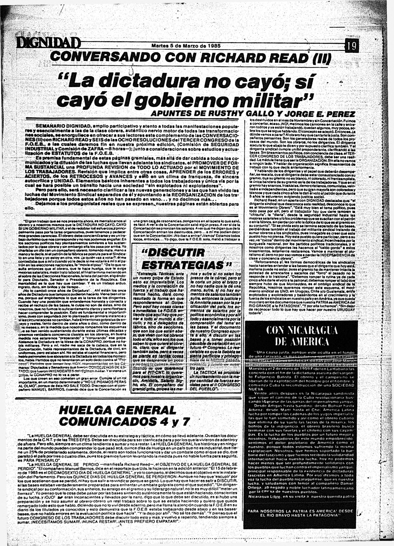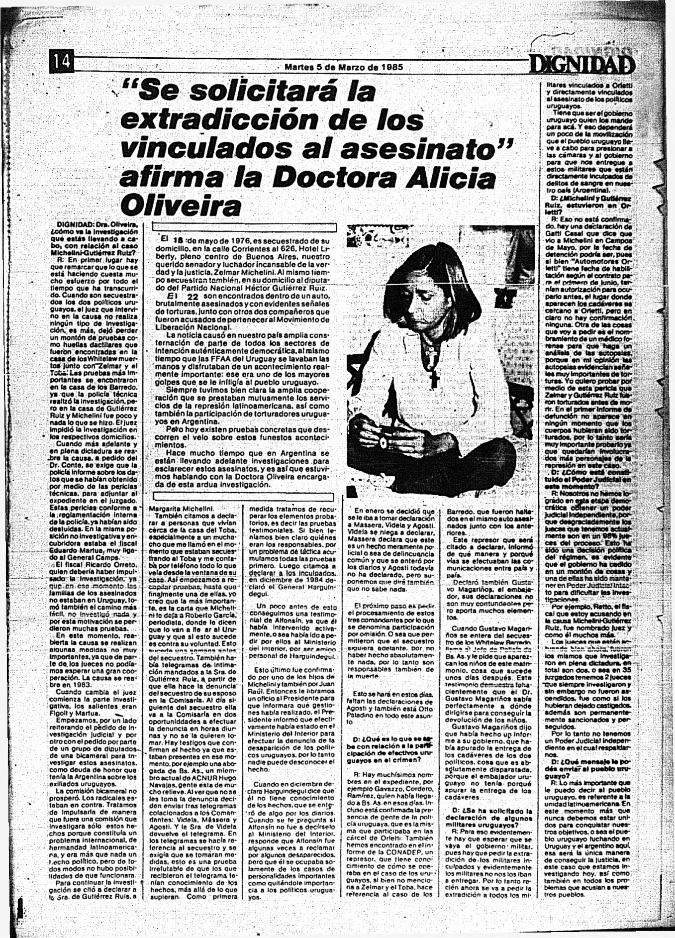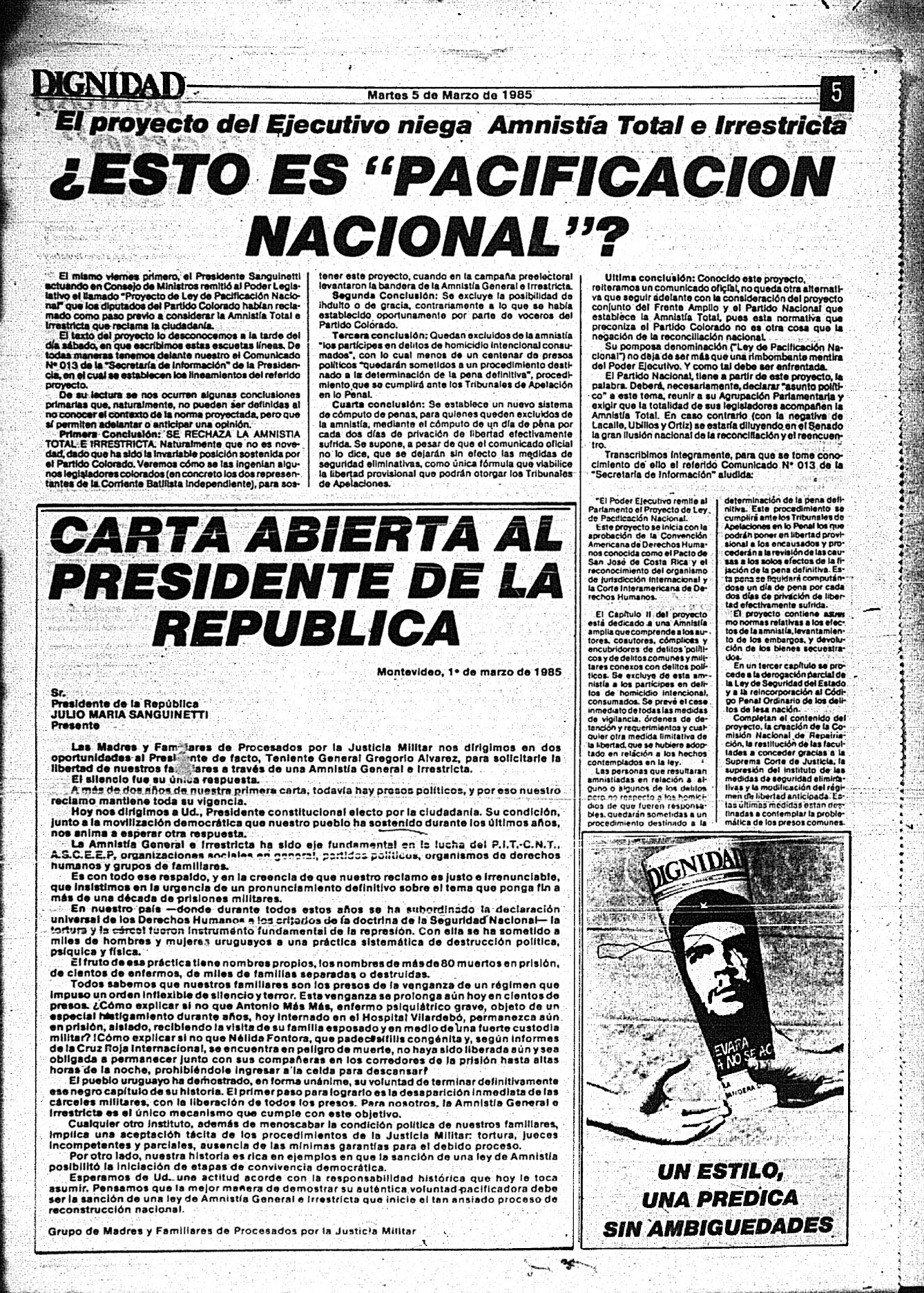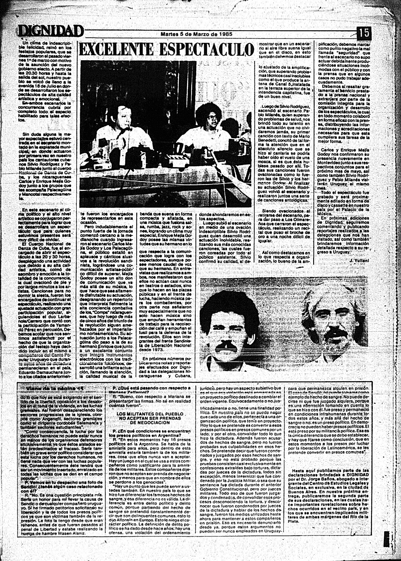 Medio de prensa Dignidad Tipo Posdictadura Día de publicación 5 Mes de publicación 3 Año de publicación 1985 Origen Archivo Berrutti Archivo Berrutti Publicacion completa