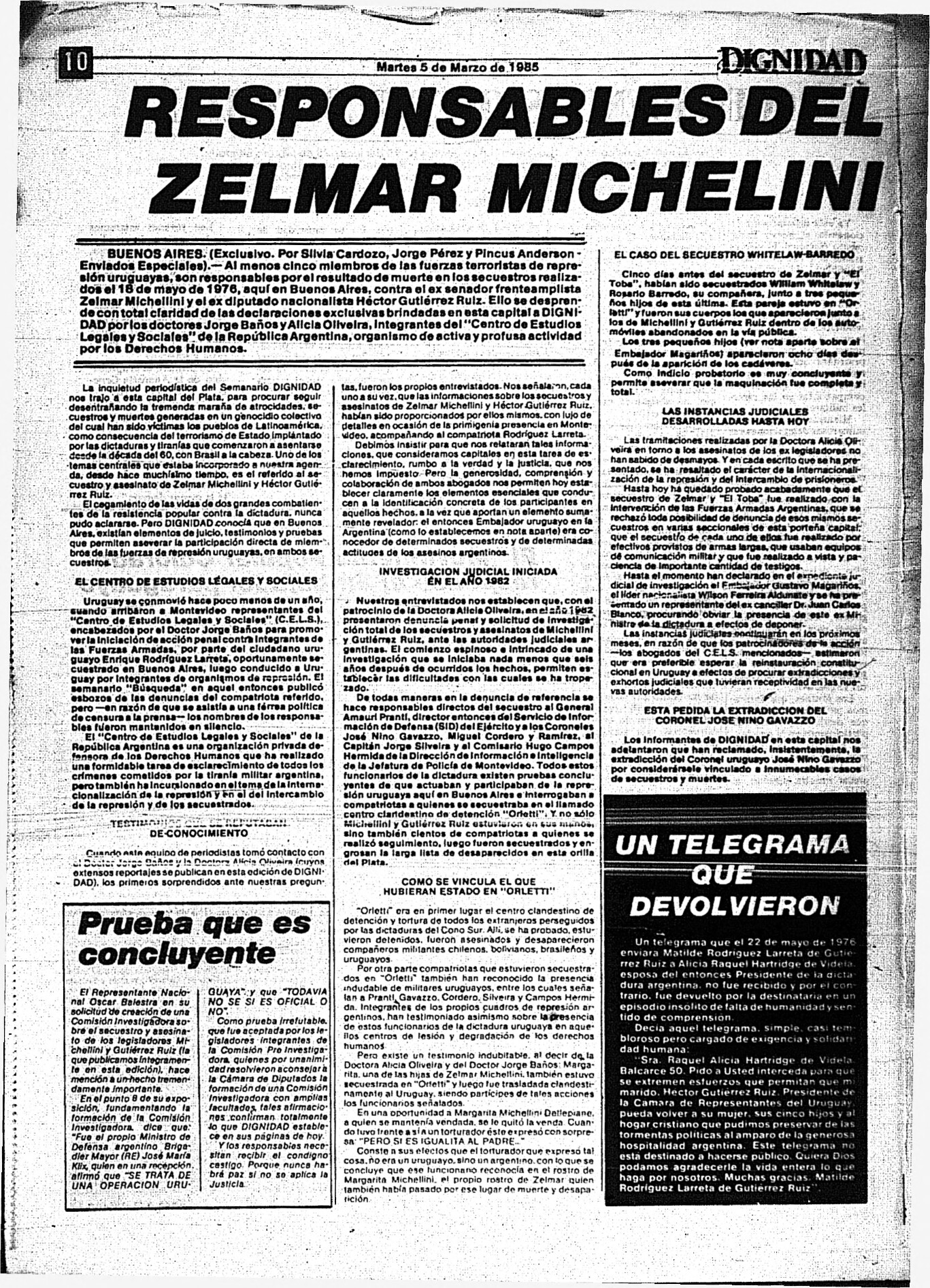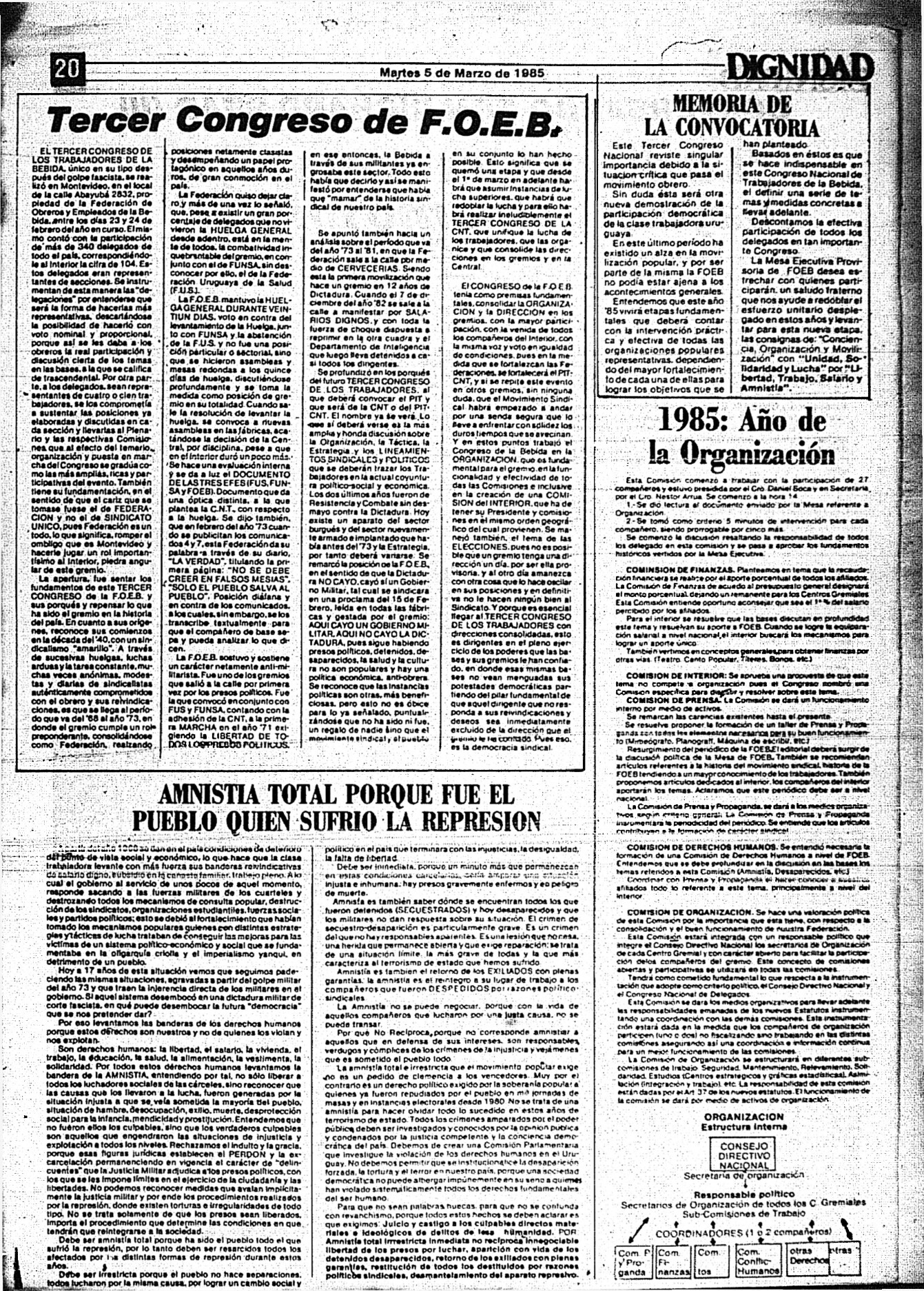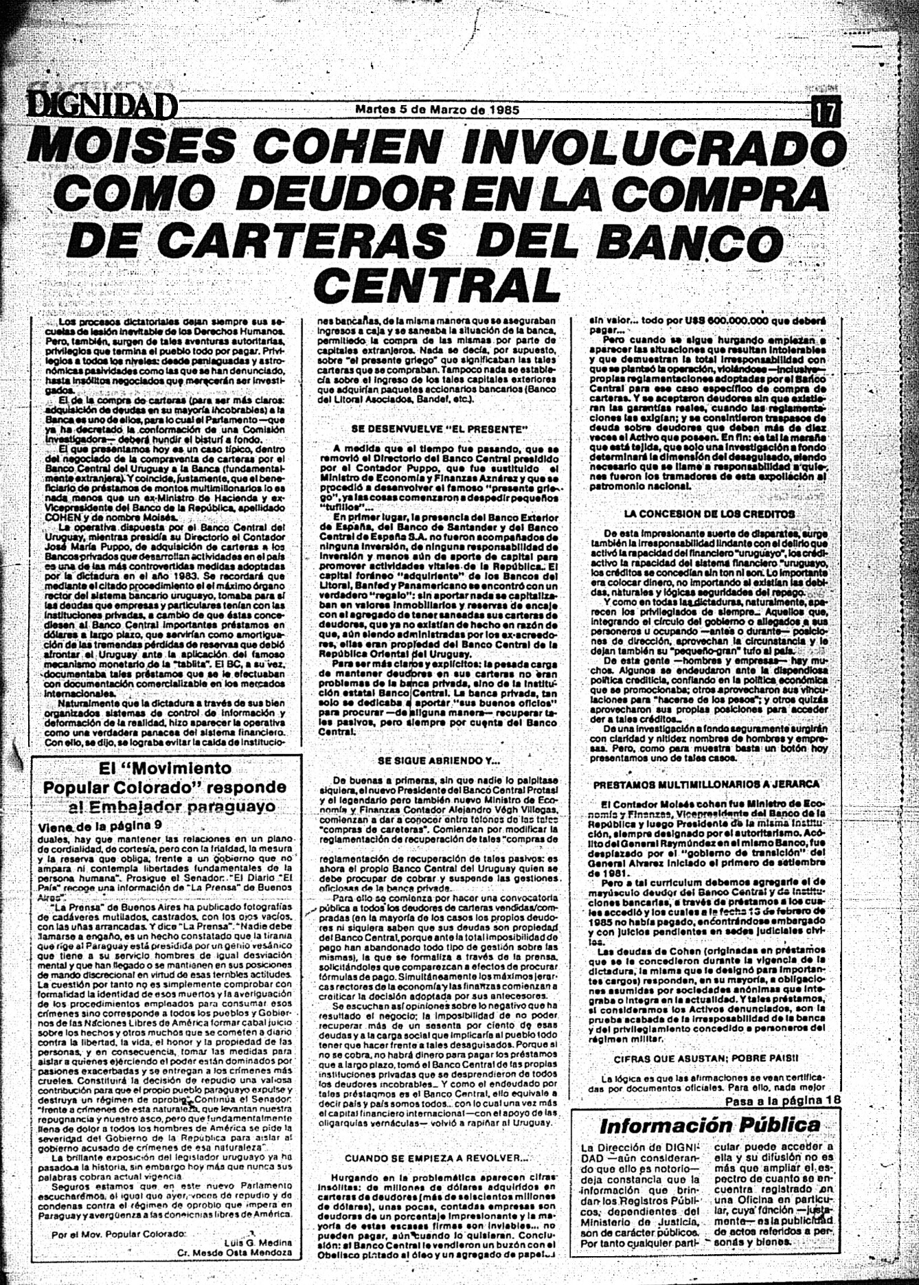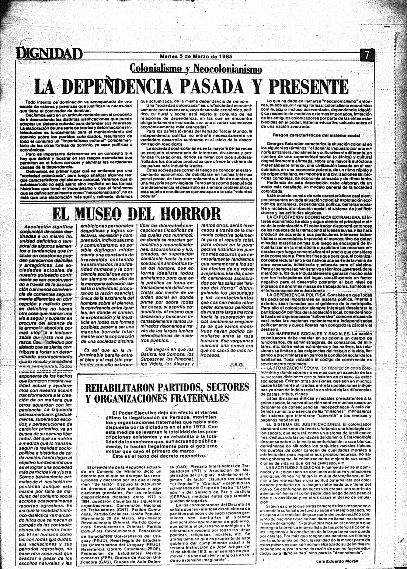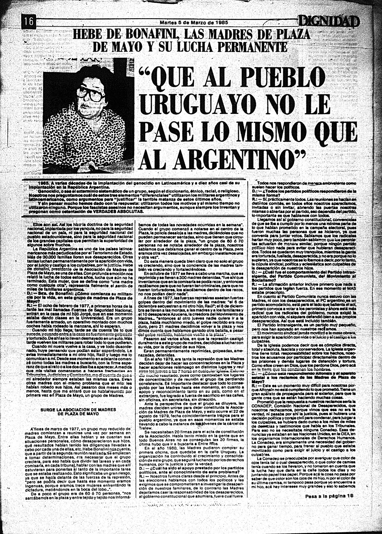 Medio de prensa Dignidad Tipo Posdictadura Día de publicación 5 Mes de publicación 3 Año de publicación 1985 Origen Archivo Berrutti Archivo Berrutti Publicacion completa