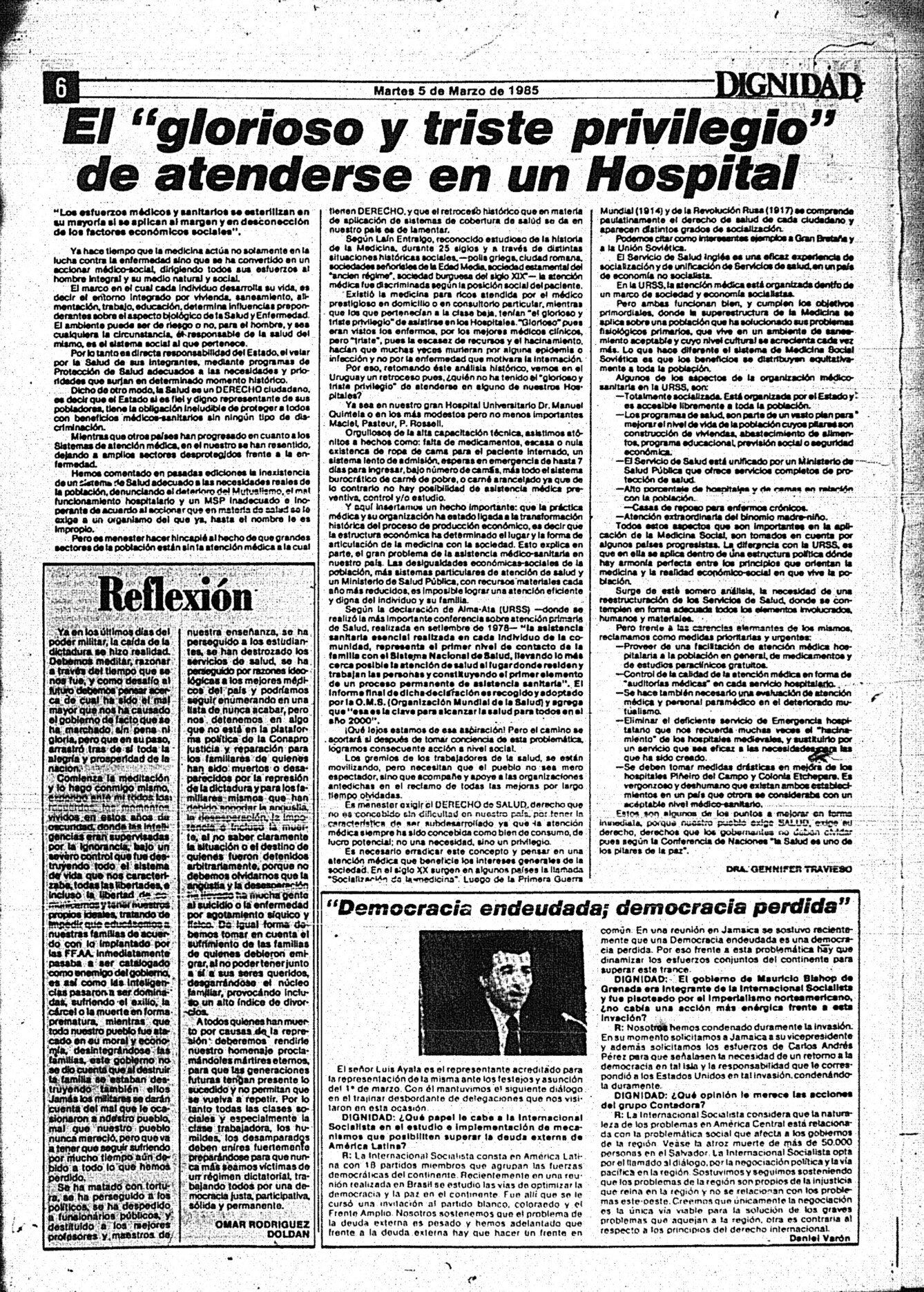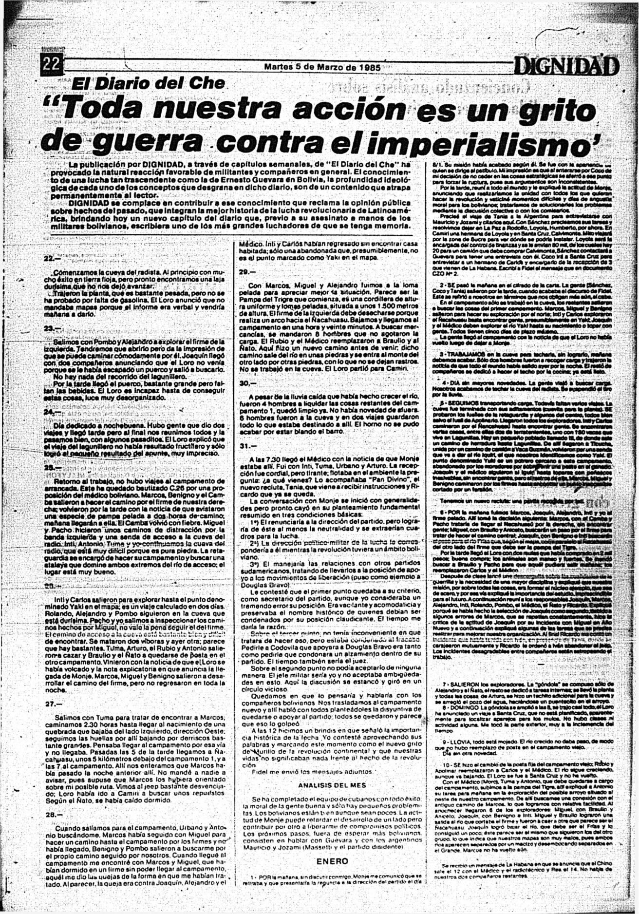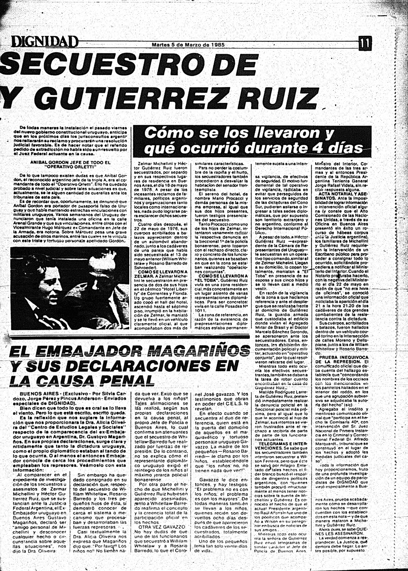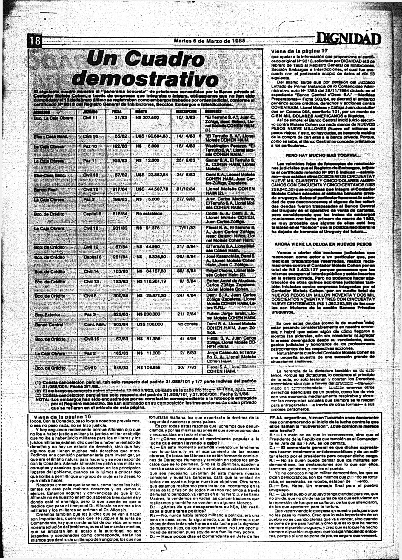 Medio de prensa Dignidad Tipo Posdictadura Día de publicación 5 Mes de publicación 3 Año de publicación 1985 Origen Archivo Berrutti Archivo Berrutti Publicacion completa