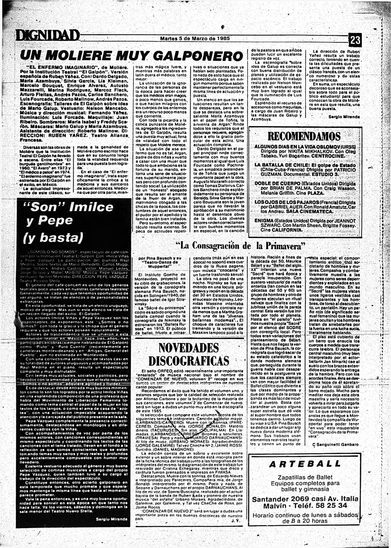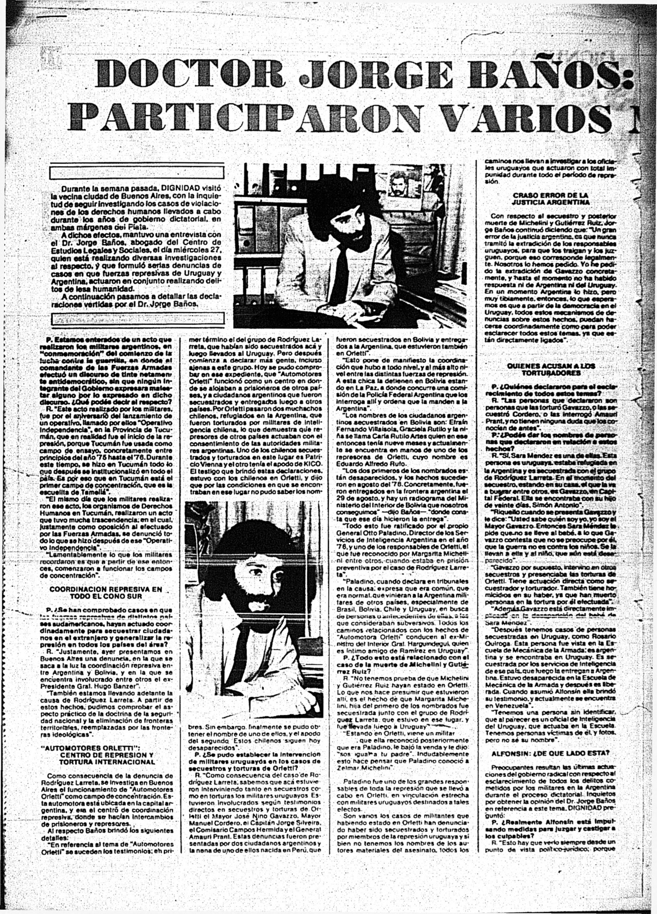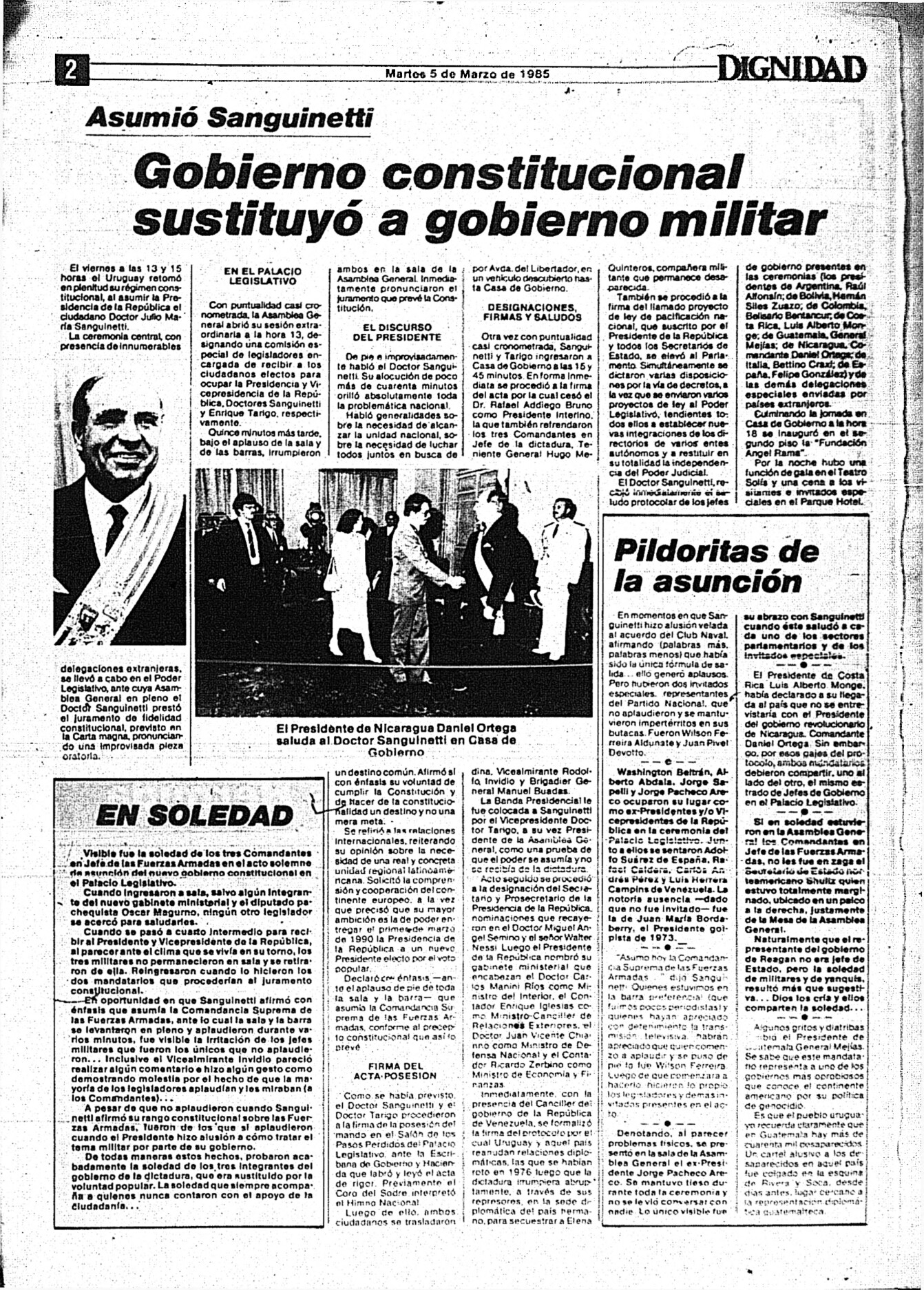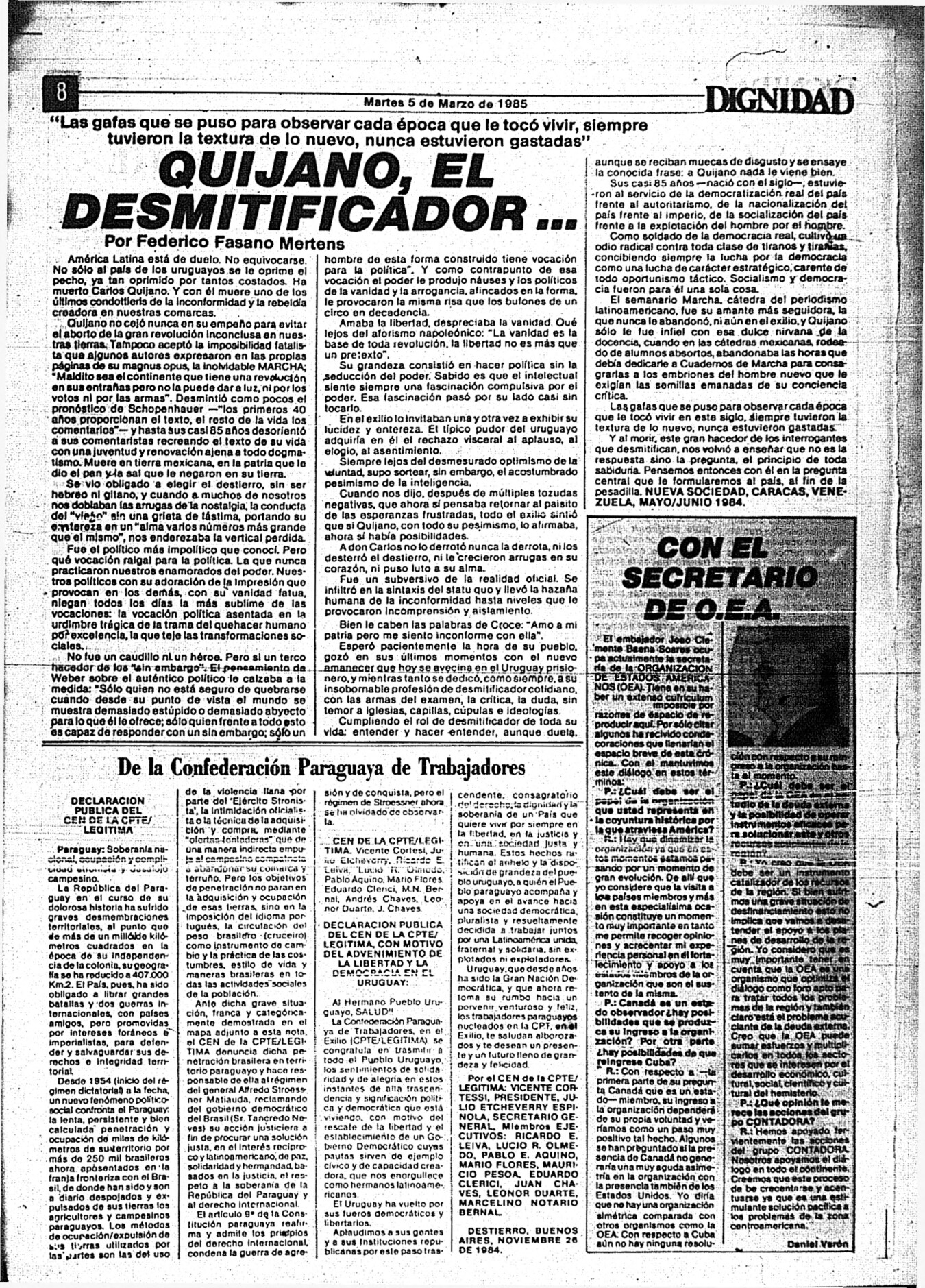 Medio de prensa Dignidad Tipo Posdictadura Día de publicación 5 Mes de publicación 3 Año de publicación 1985 Origen Archivo Berrutti Archivo Berrutti Publicacion completa