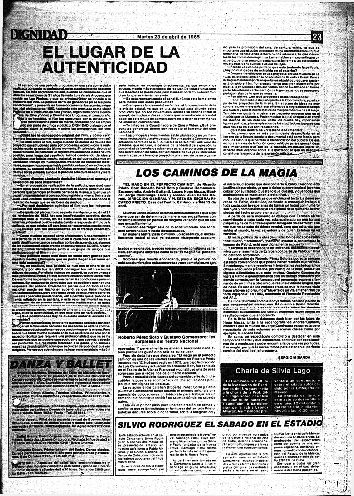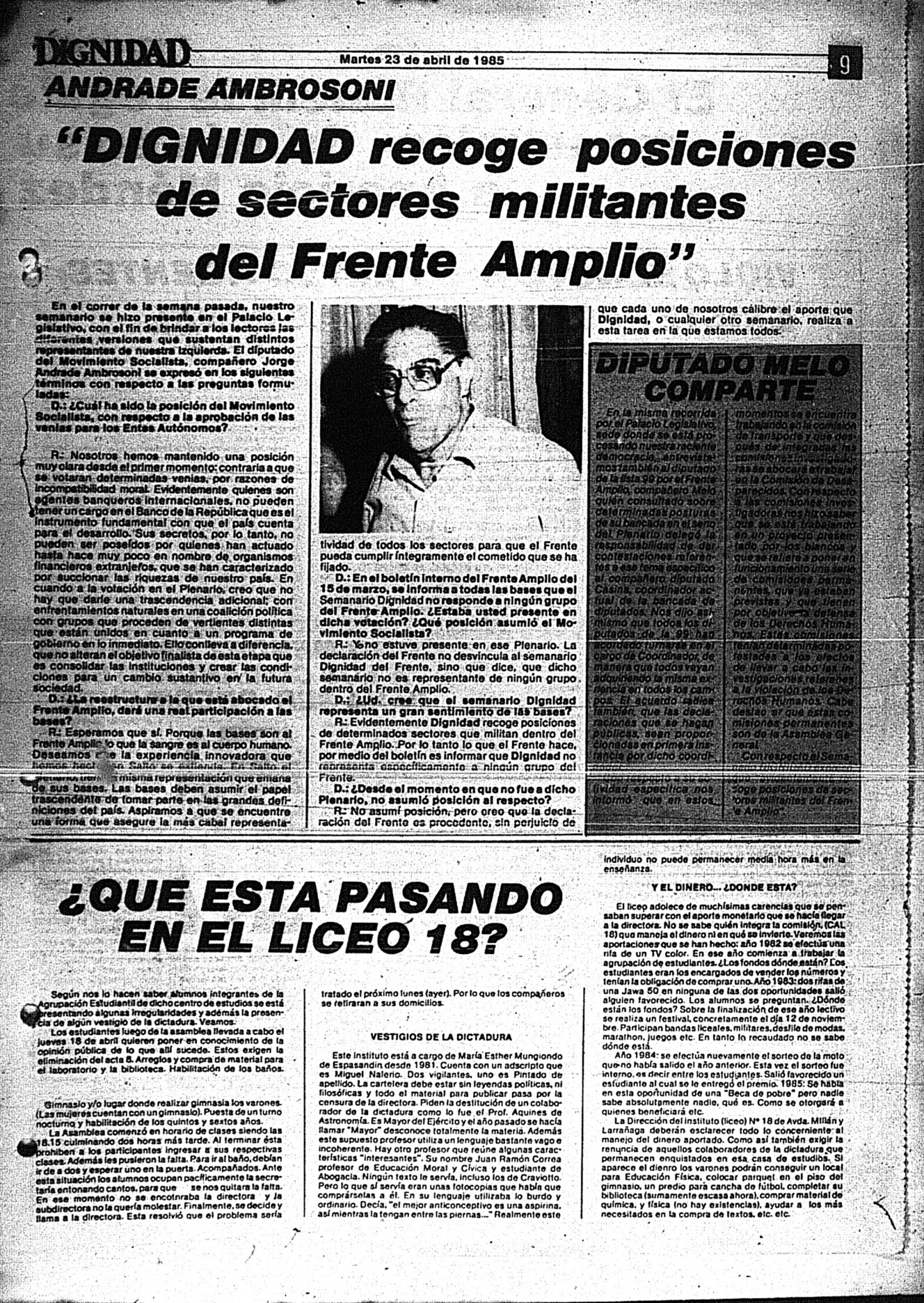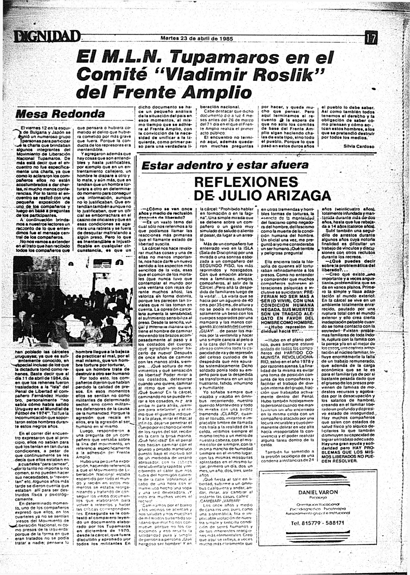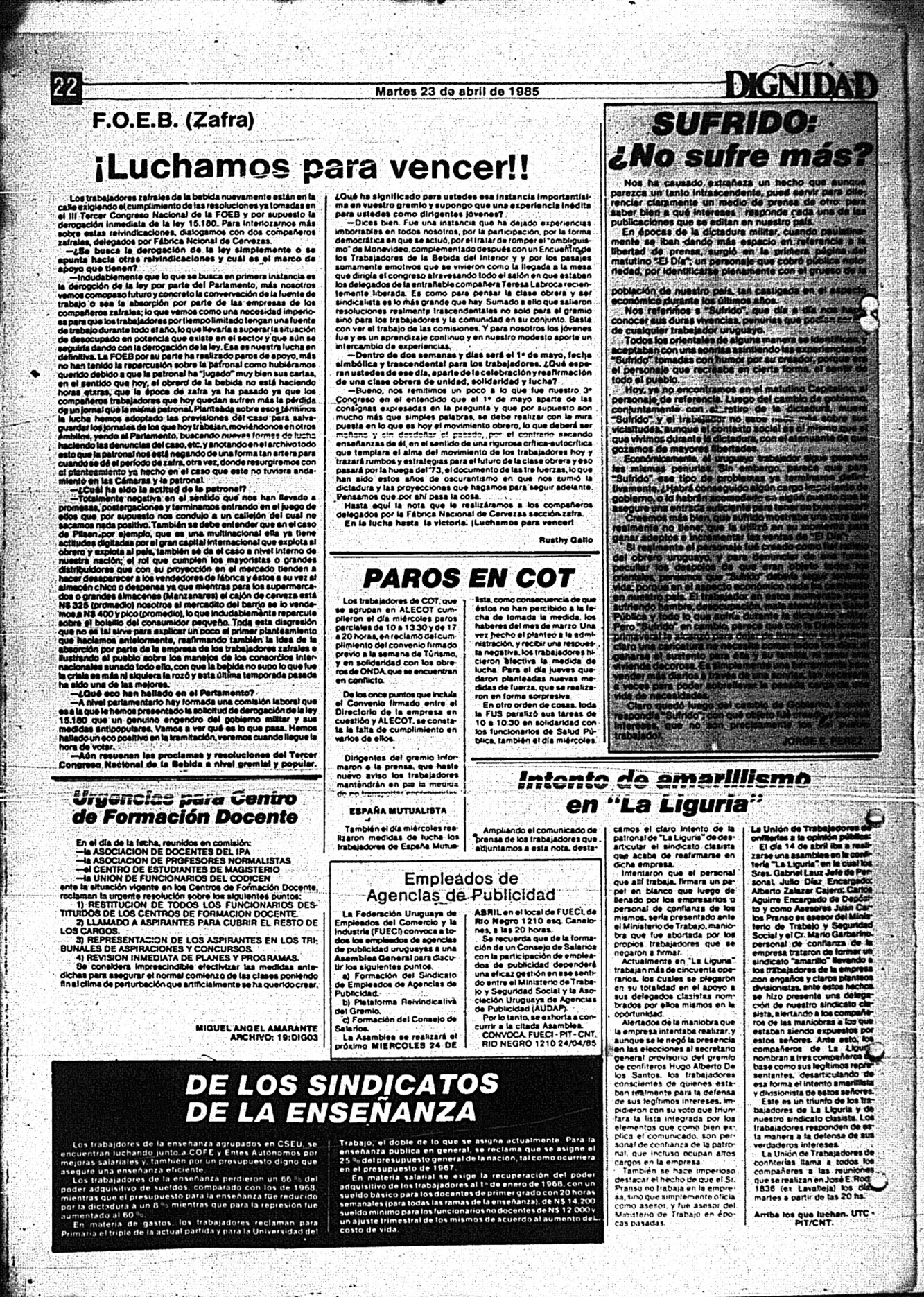 Medio de prensa Dignidad Tipo Posdictadura Día de publicación 23 Mes de publicación 4 Año de publicación 1985 Origen Archivo Berrutti Archivo Berrutti Publicacion completa