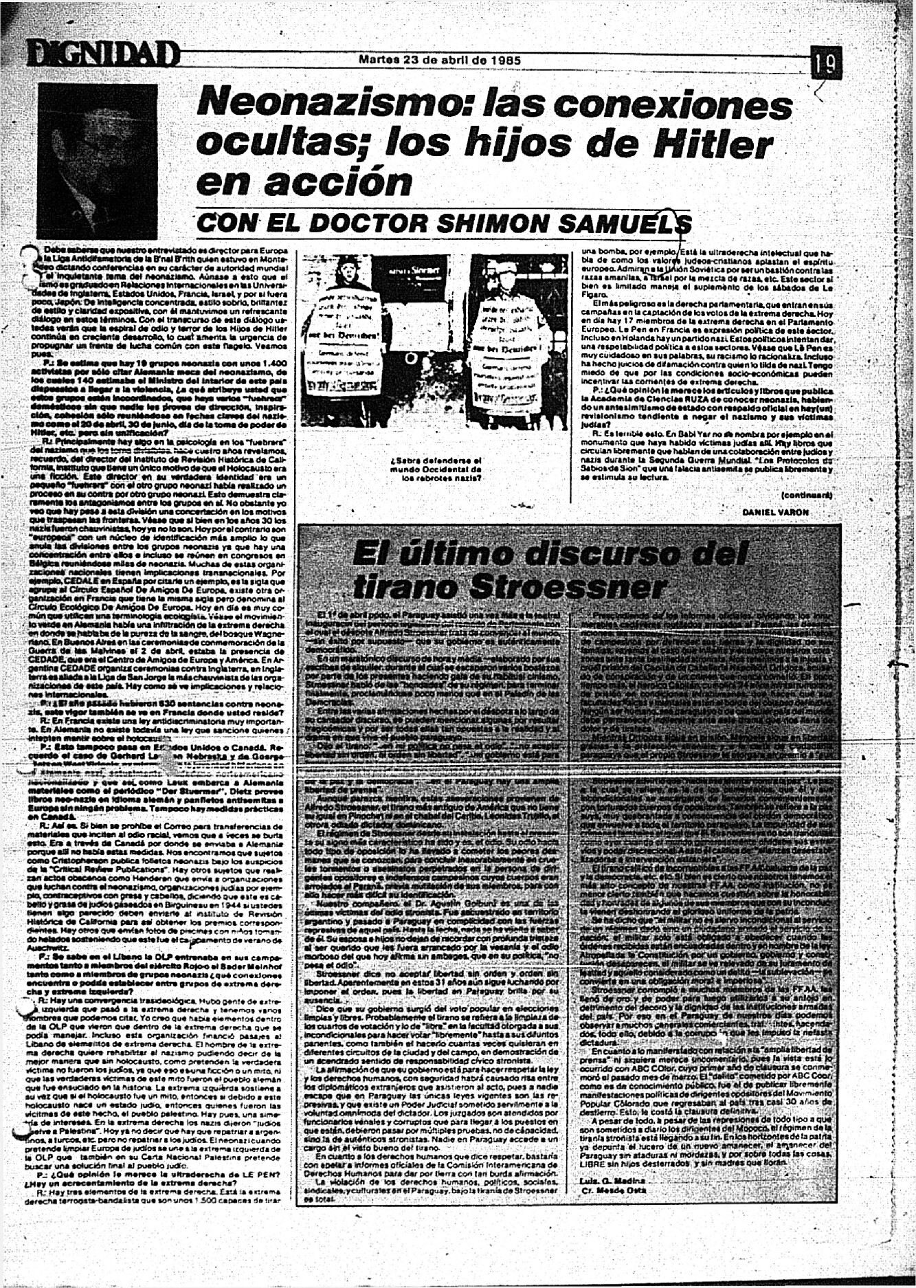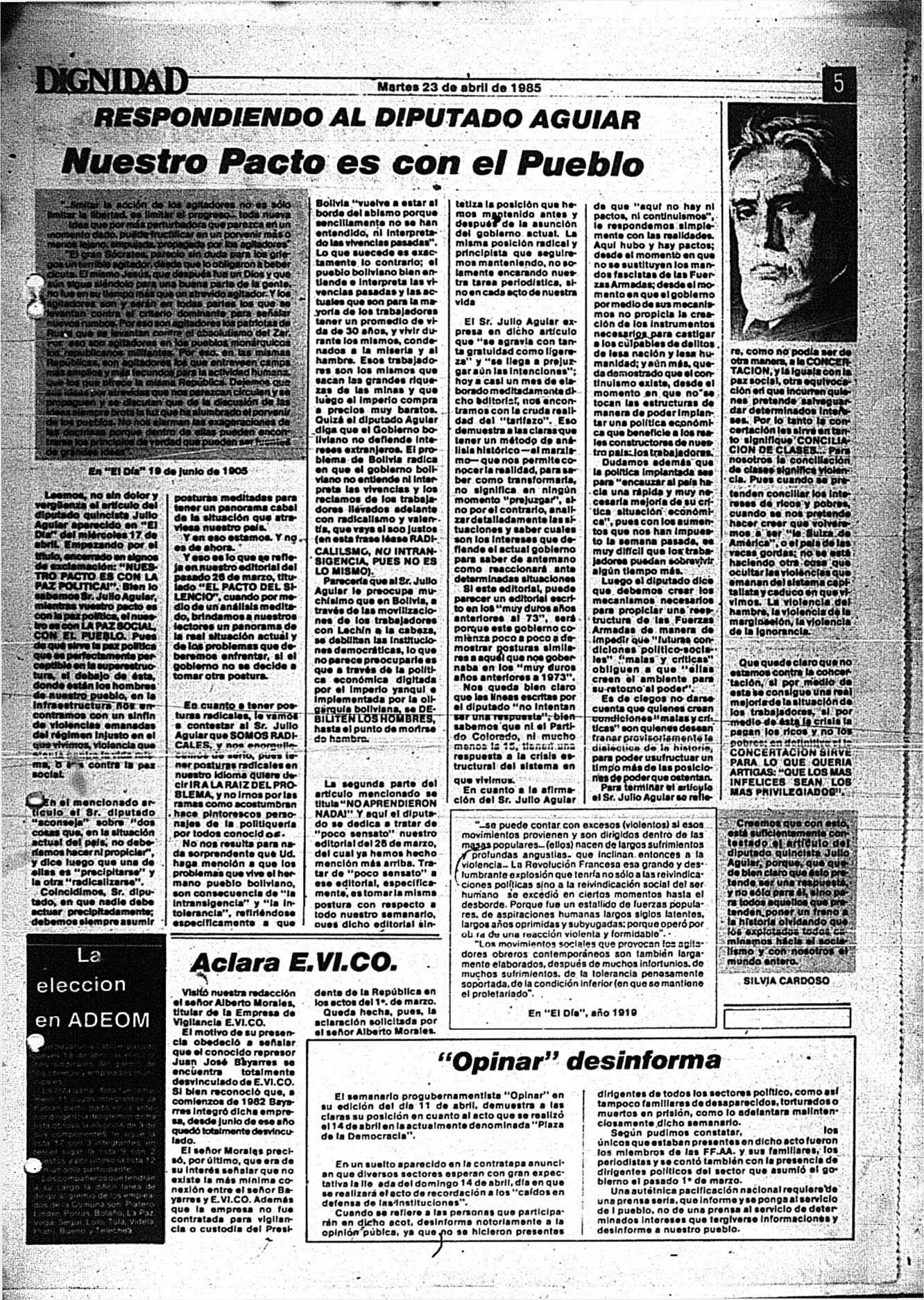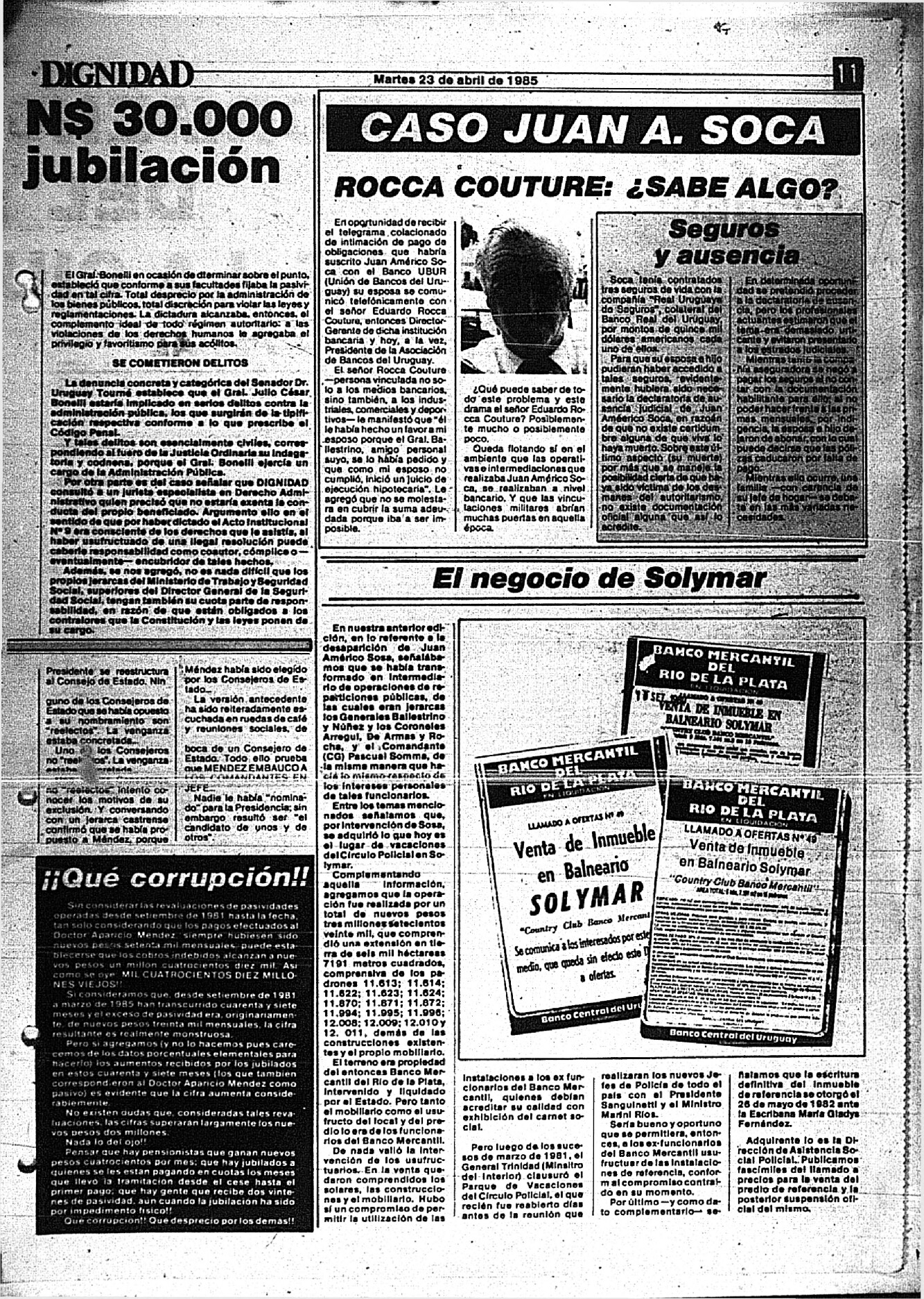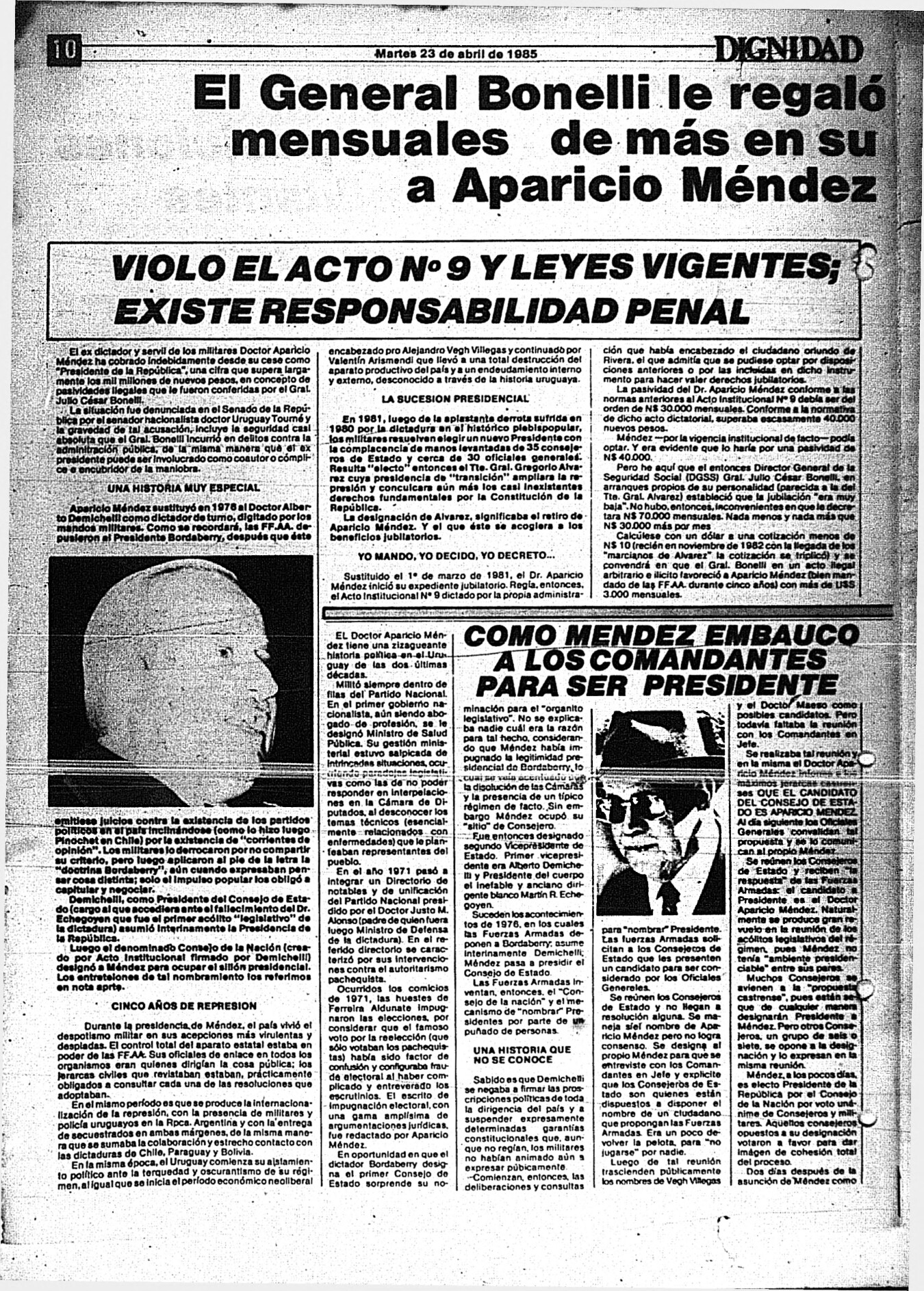 Medio de prensa Dignidad Tipo Posdictadura Día de publicación 23 Mes de publicación 4 Año de publicación 1985 Origen Archivo Berrutti Archivo Berrutti Publicacion completa