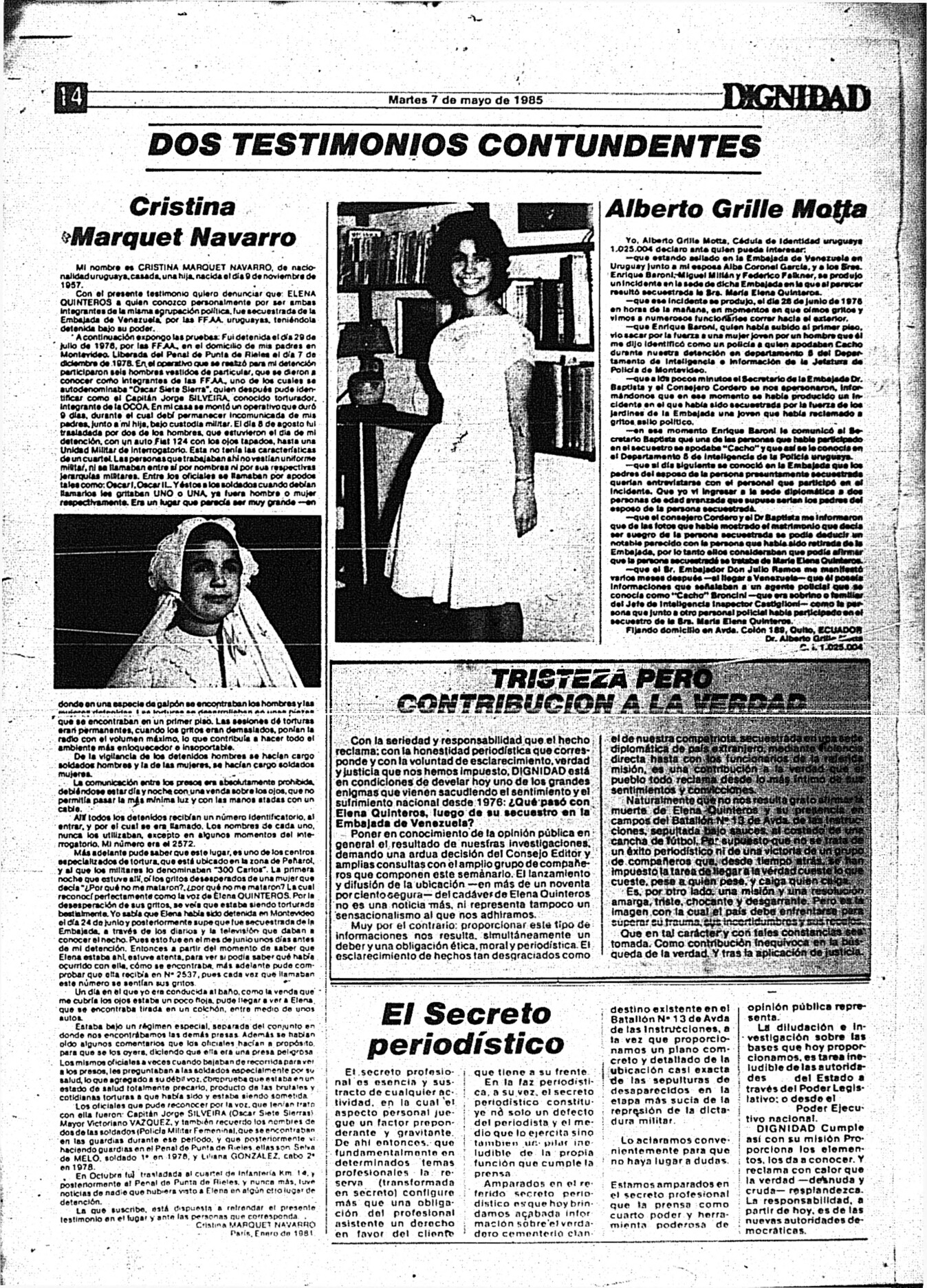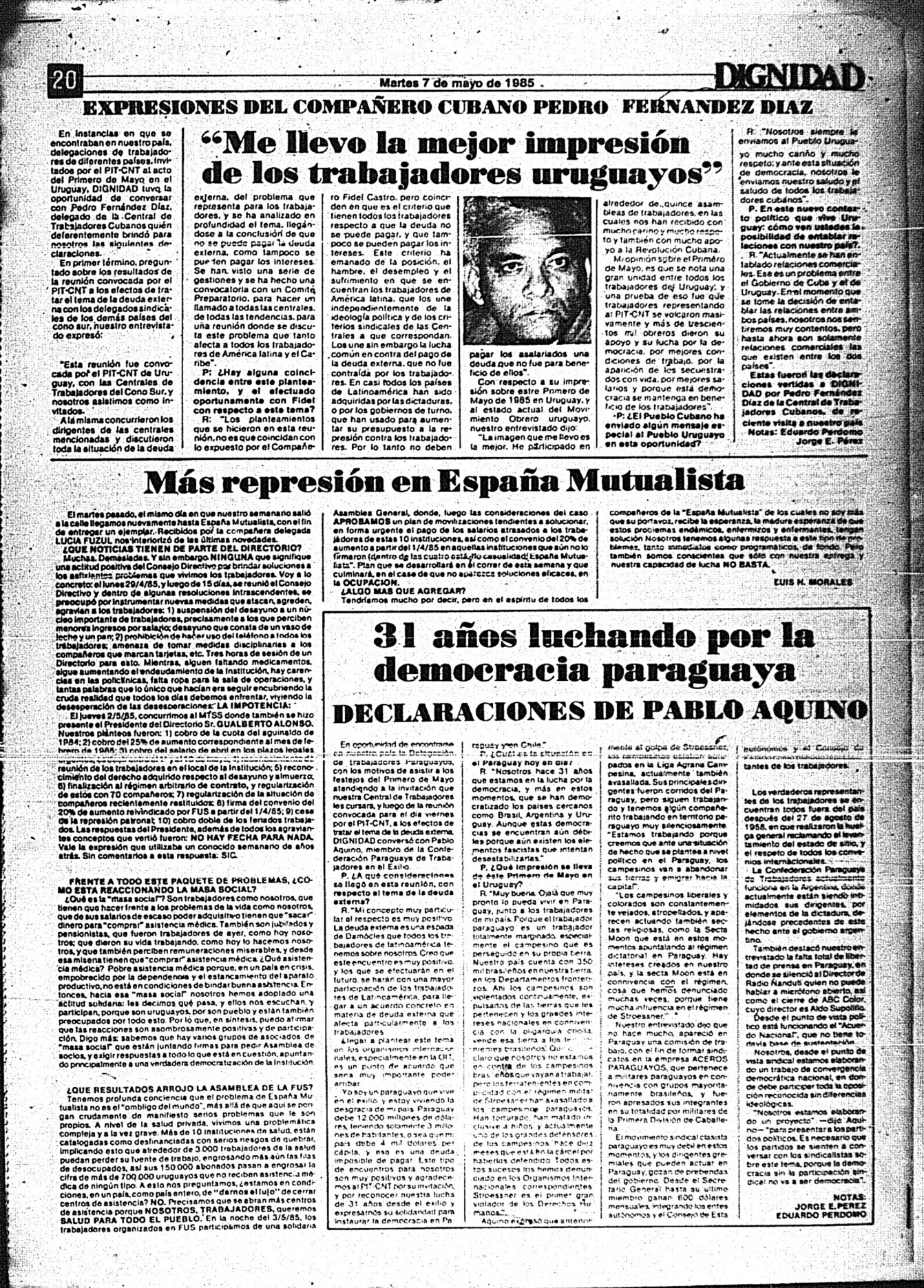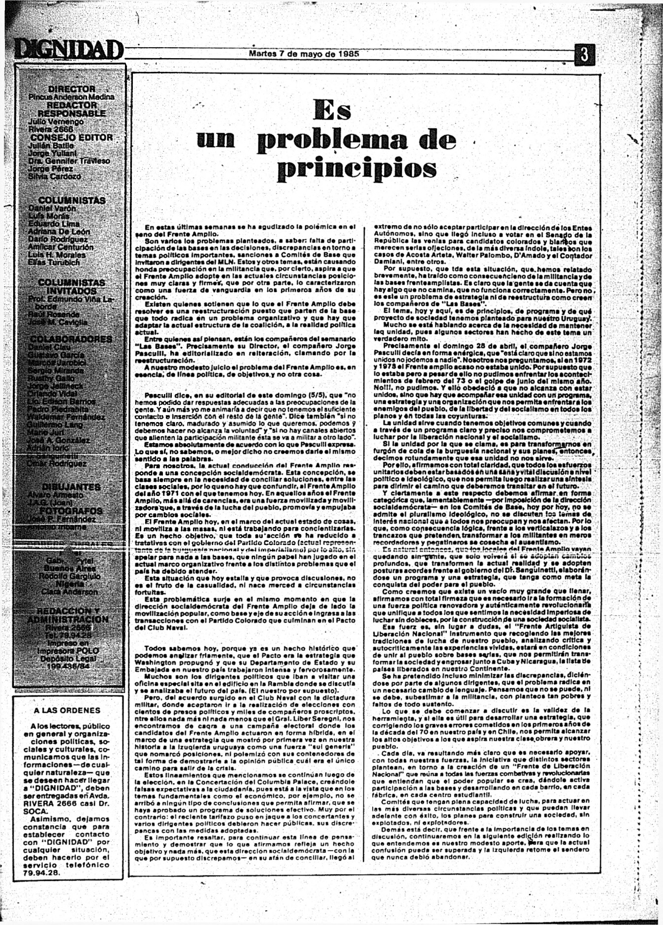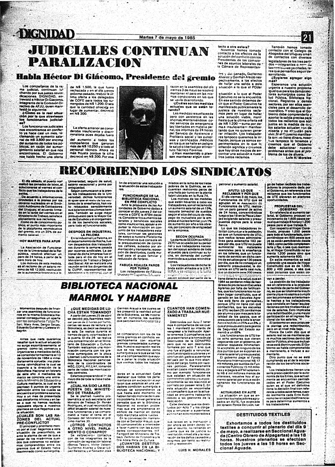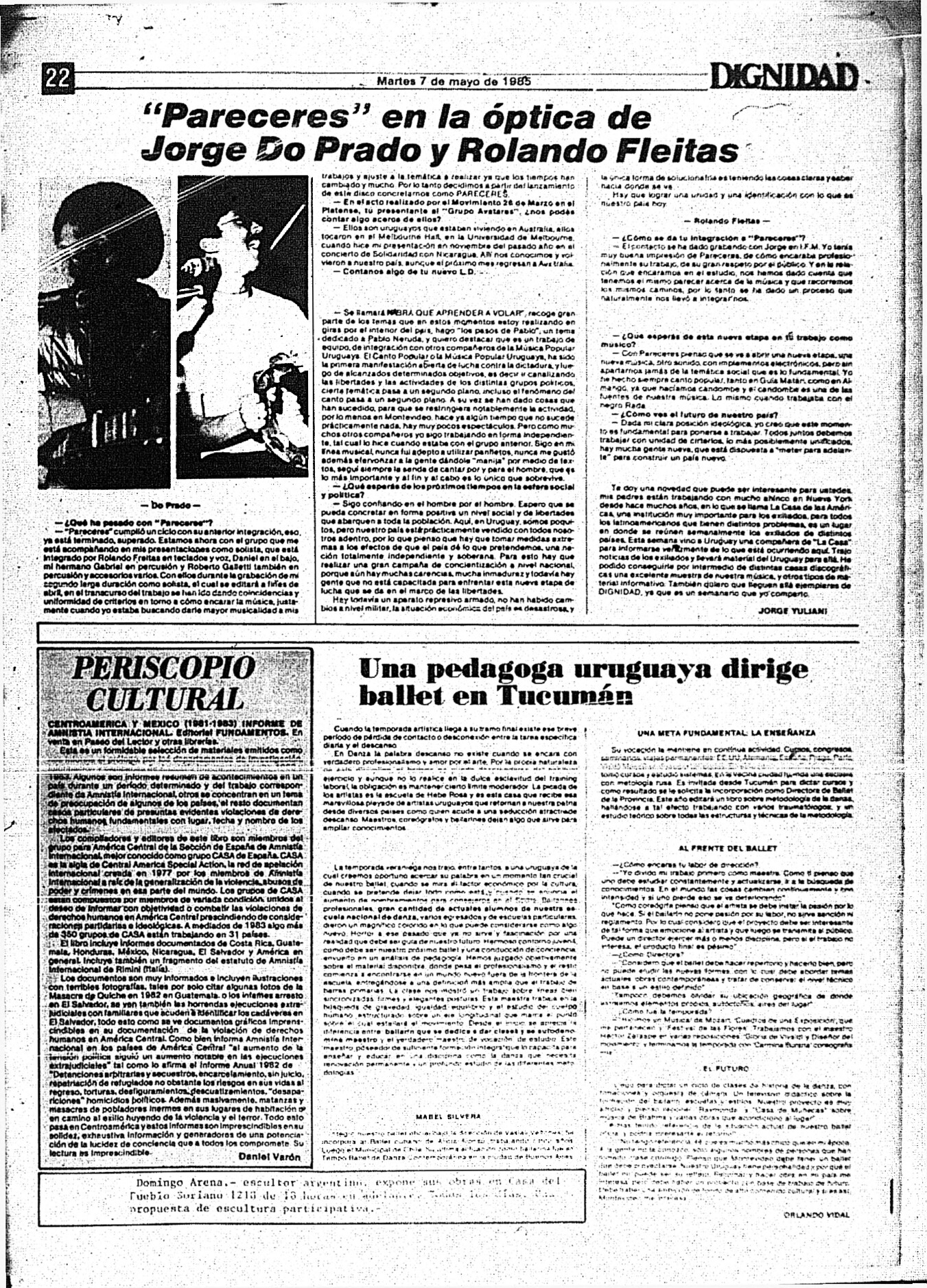 Medio de prensa Dignidad Tipo Posdictadura Día de publicación 7 Mes de publicación 5 Año de publicación 1985 Origen Archivo Berrutti Archivo Berrutti Publicacion completa