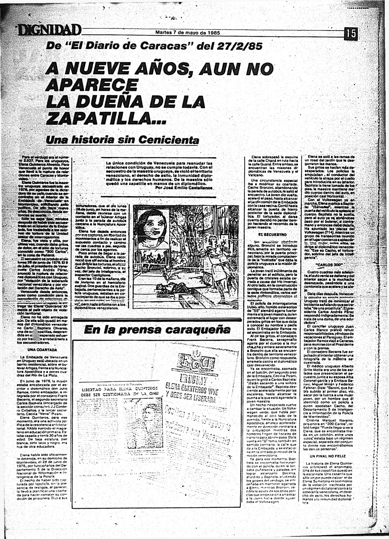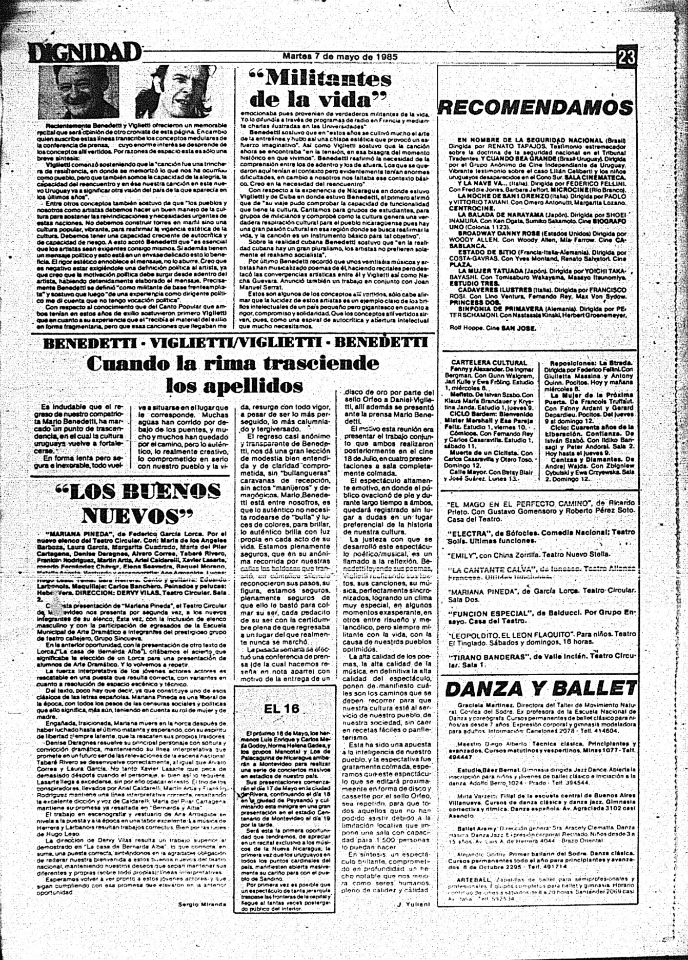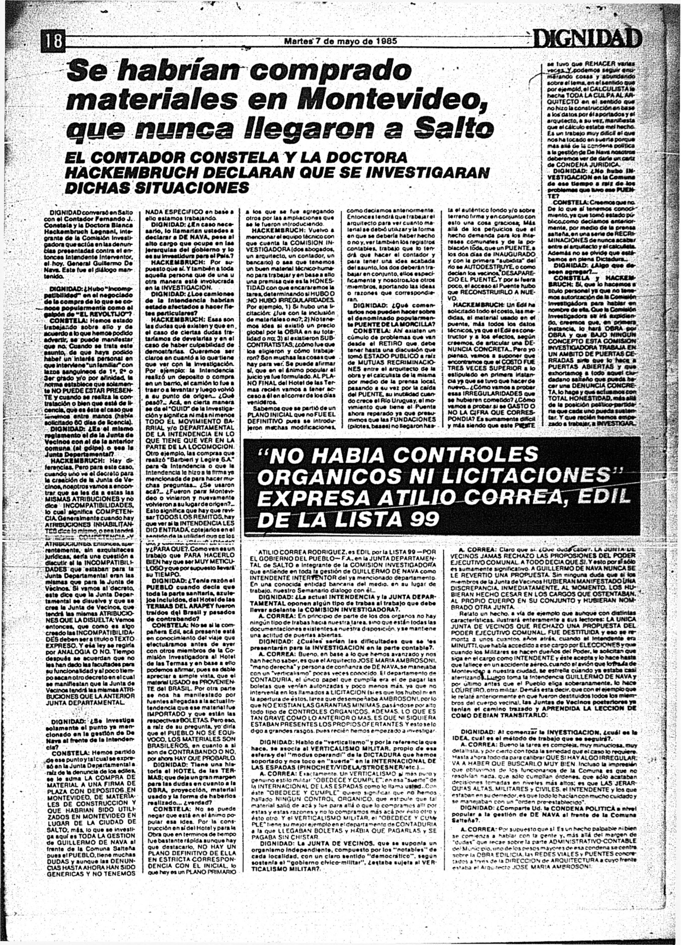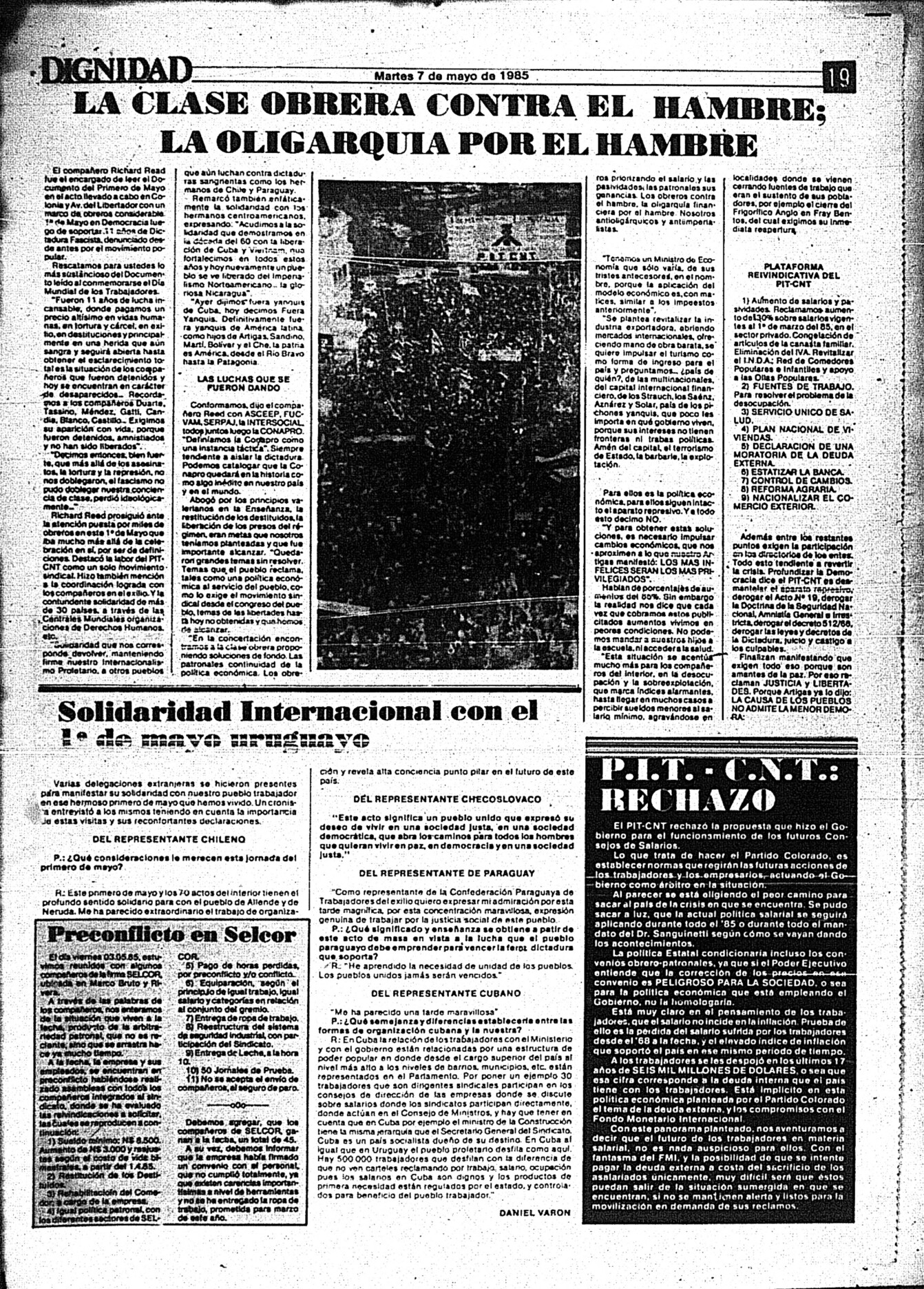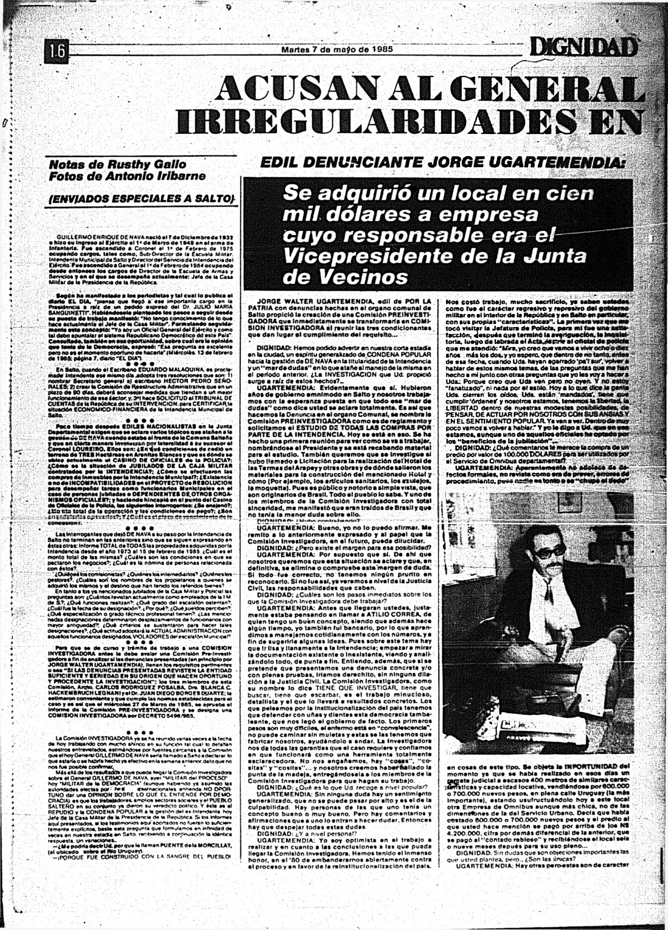 Medio de prensa Dignidad Tipo Posdictadura Día de publicación 7 Mes de publicación 5 Año de publicación 1985 Origen Archivo Berrutti Archivo Berrutti Publicacion completa