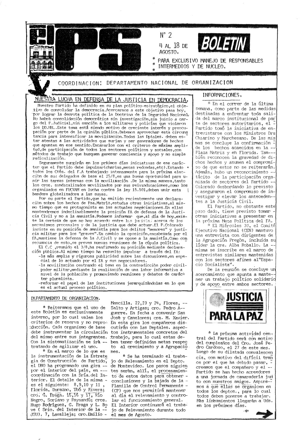 Medio de prensa El PS Tipo Posdictadura Día de publicación 4 Mes de publicación 8 Año de publicación 1986 Origen Colección Fernando de León Colección Fernando de León Publicacion completa