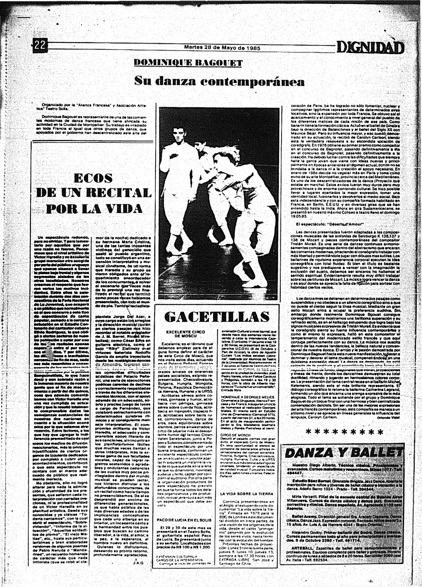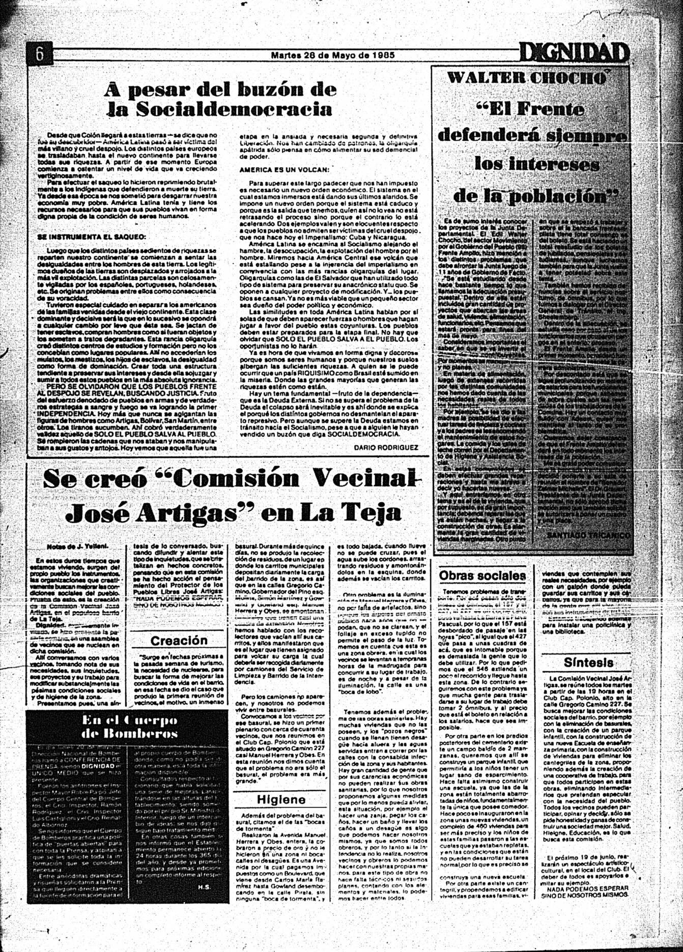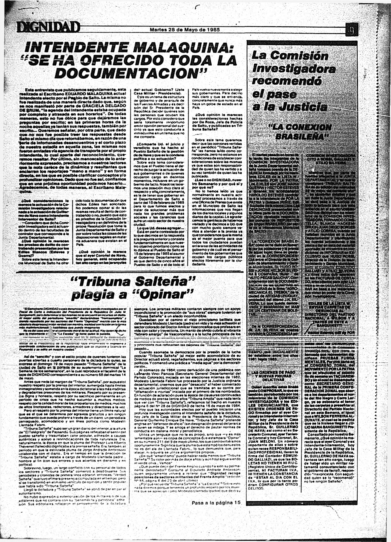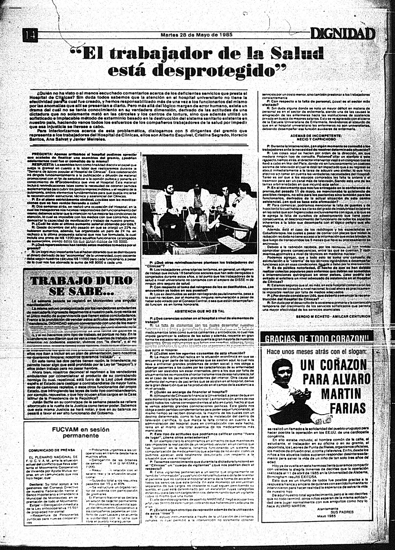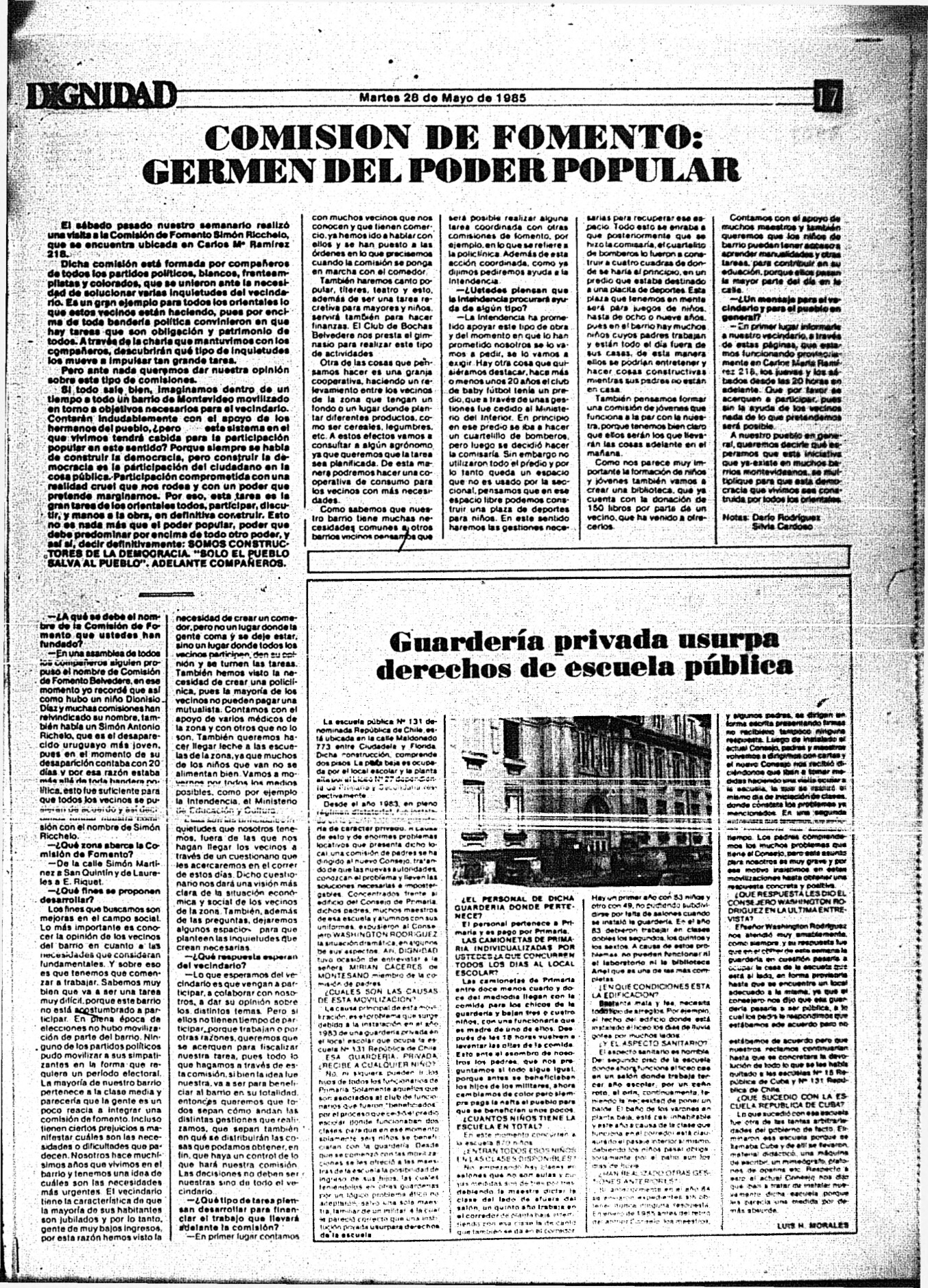 Medio de prensa Dignidad Tipo Posdictadura Día de publicación 28 Mes de publicación 5 Año de publicación 1985 Origen Archivo Berrutti Archivo Berrutti Publicacion completa