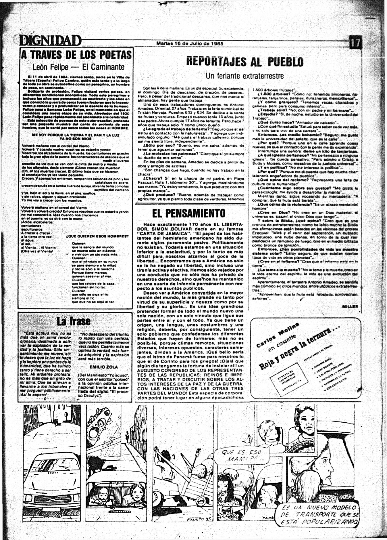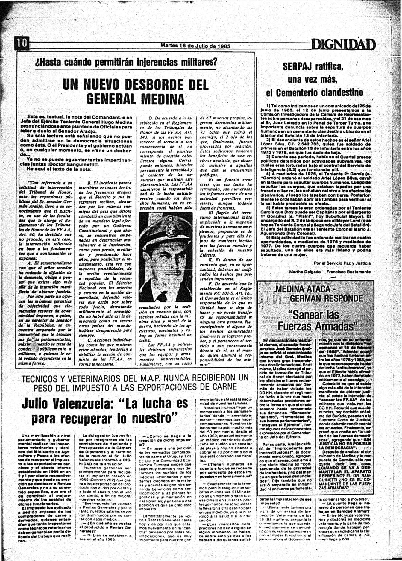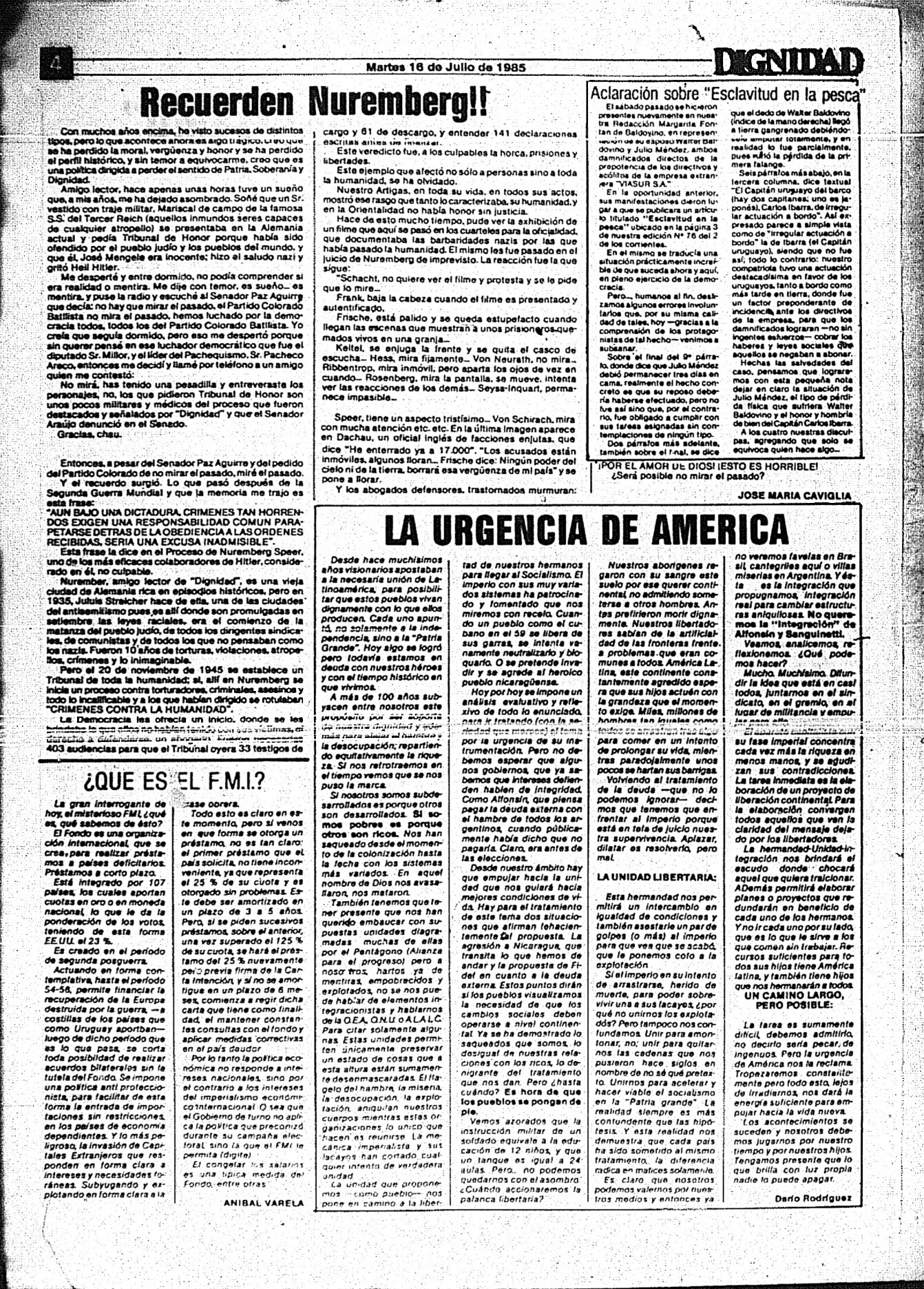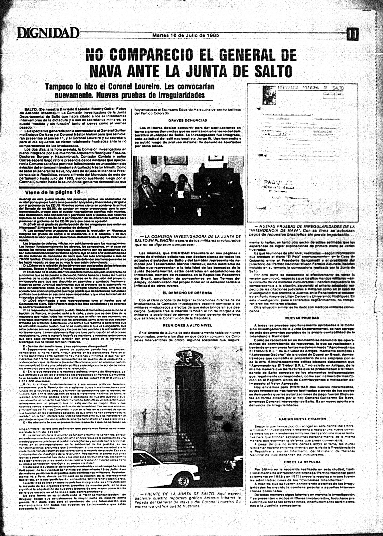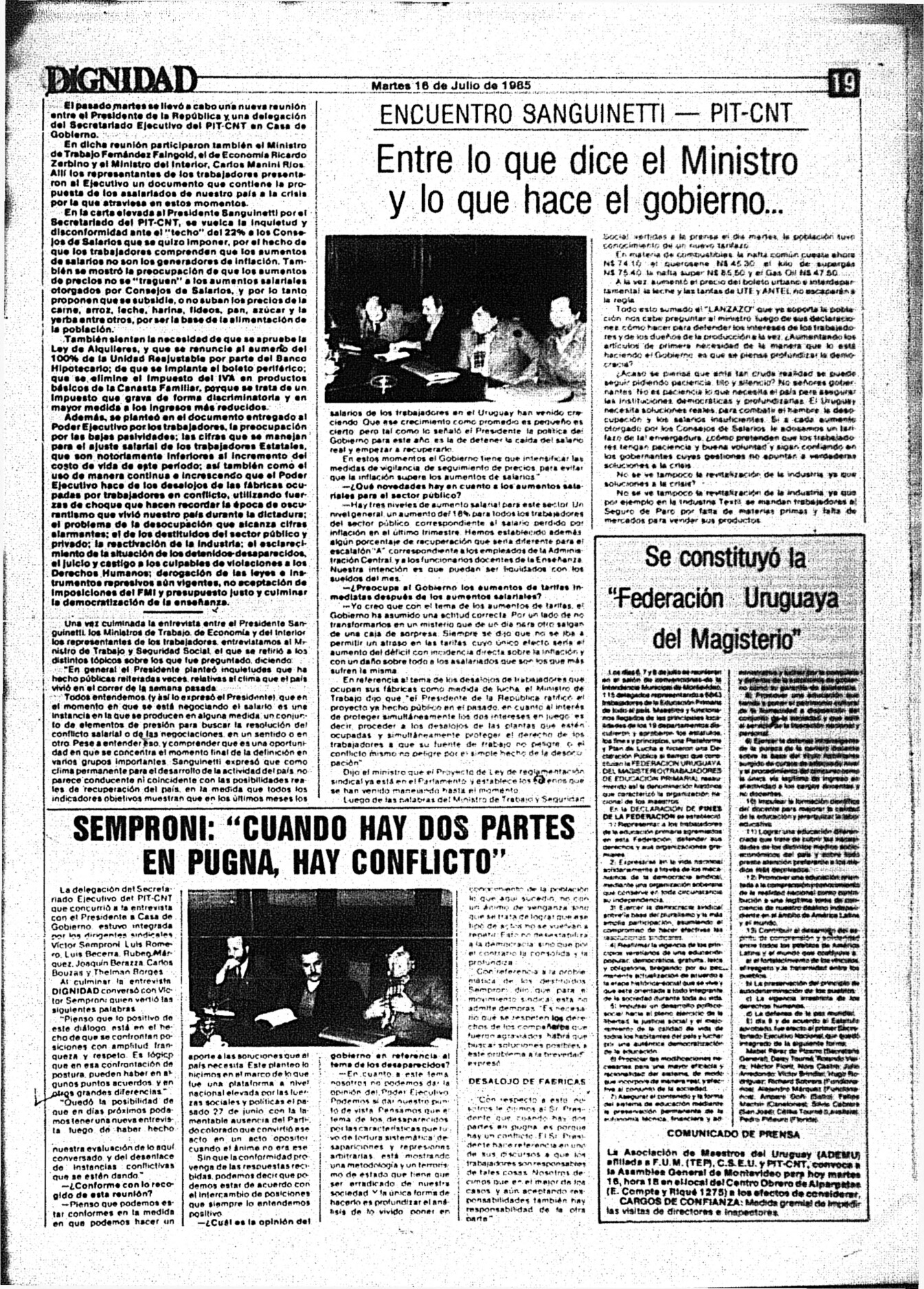 Medio de prensa Dignidad Tipo Posdictadura Día de publicación 16 Mes de publicación 7 Año de publicación 1985 Origen Archivo Berrutti Archivo Berrutti Publicacion completa