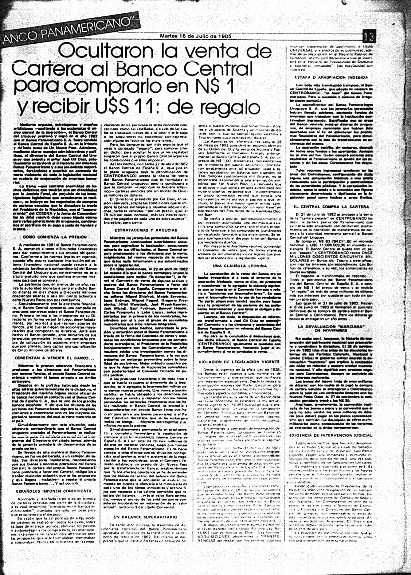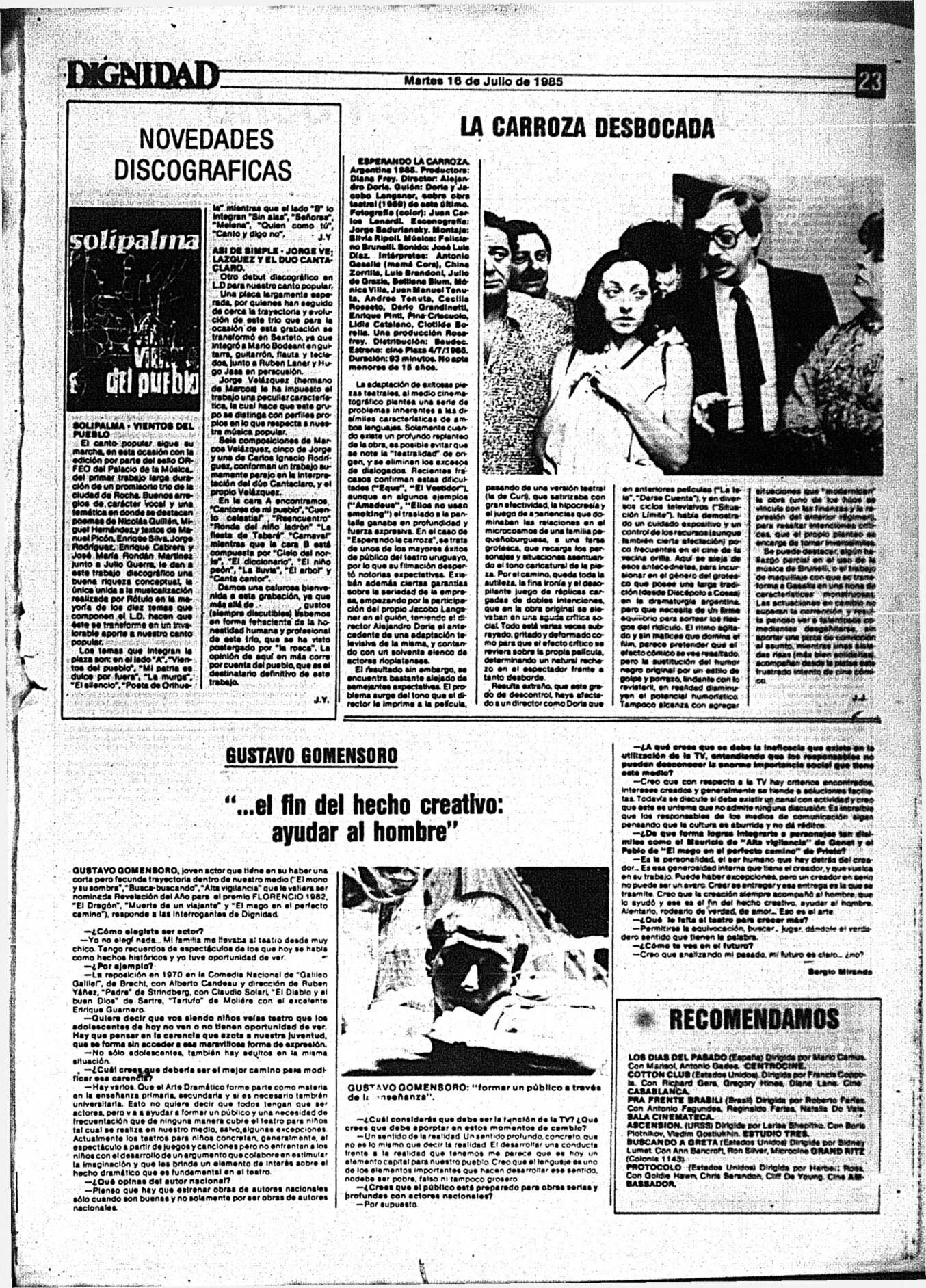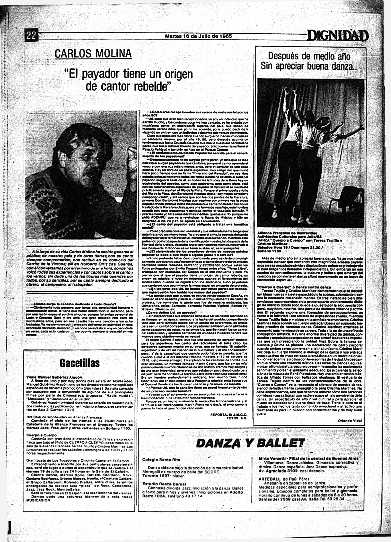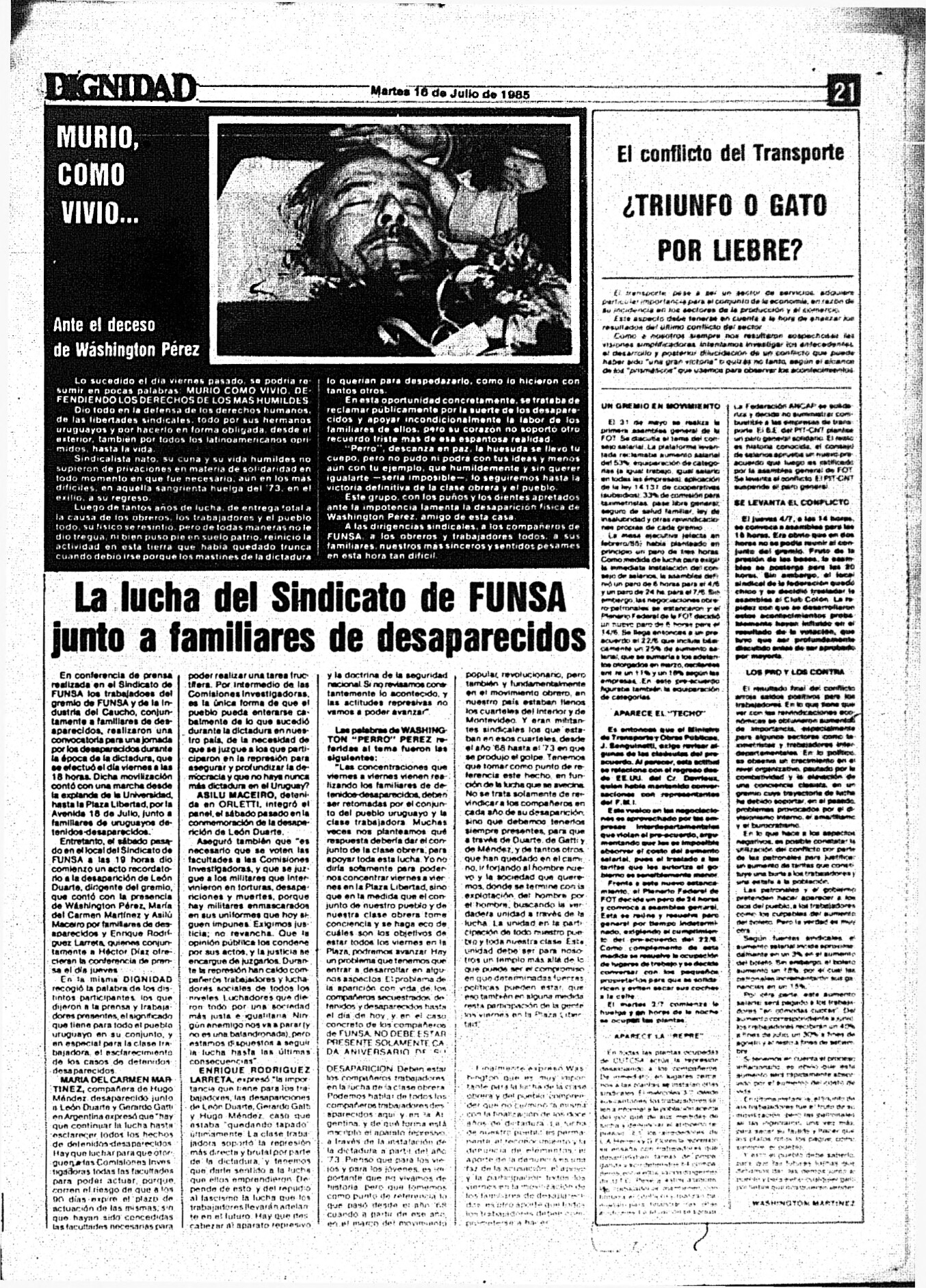 Medio de prensa Dignidad Tipo Posdictadura Día de publicación 16 Mes de publicación 7 Año de publicación 1985 Origen Archivo Berrutti Archivo Berrutti Publicacion completa