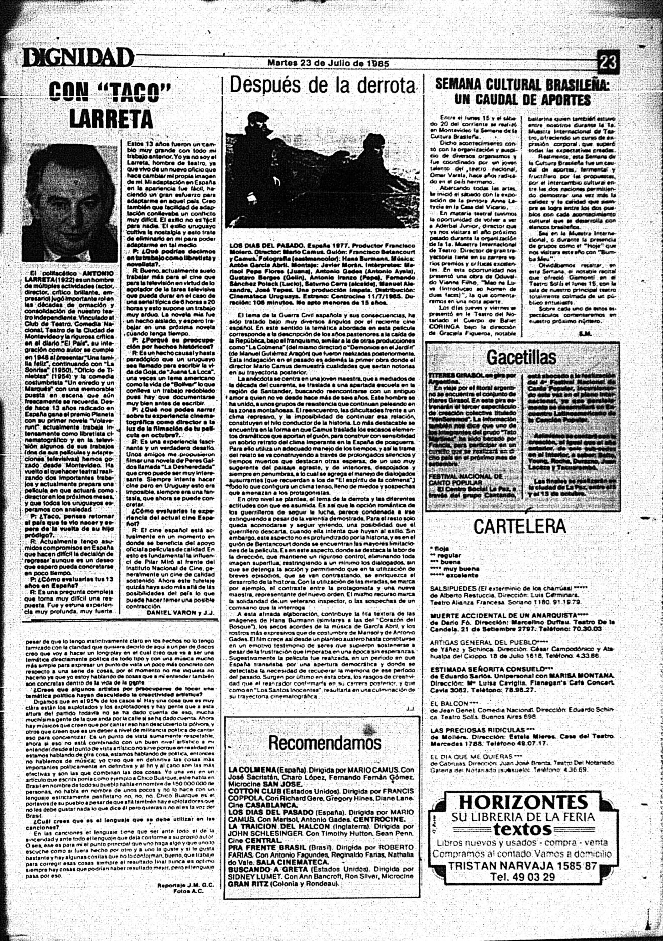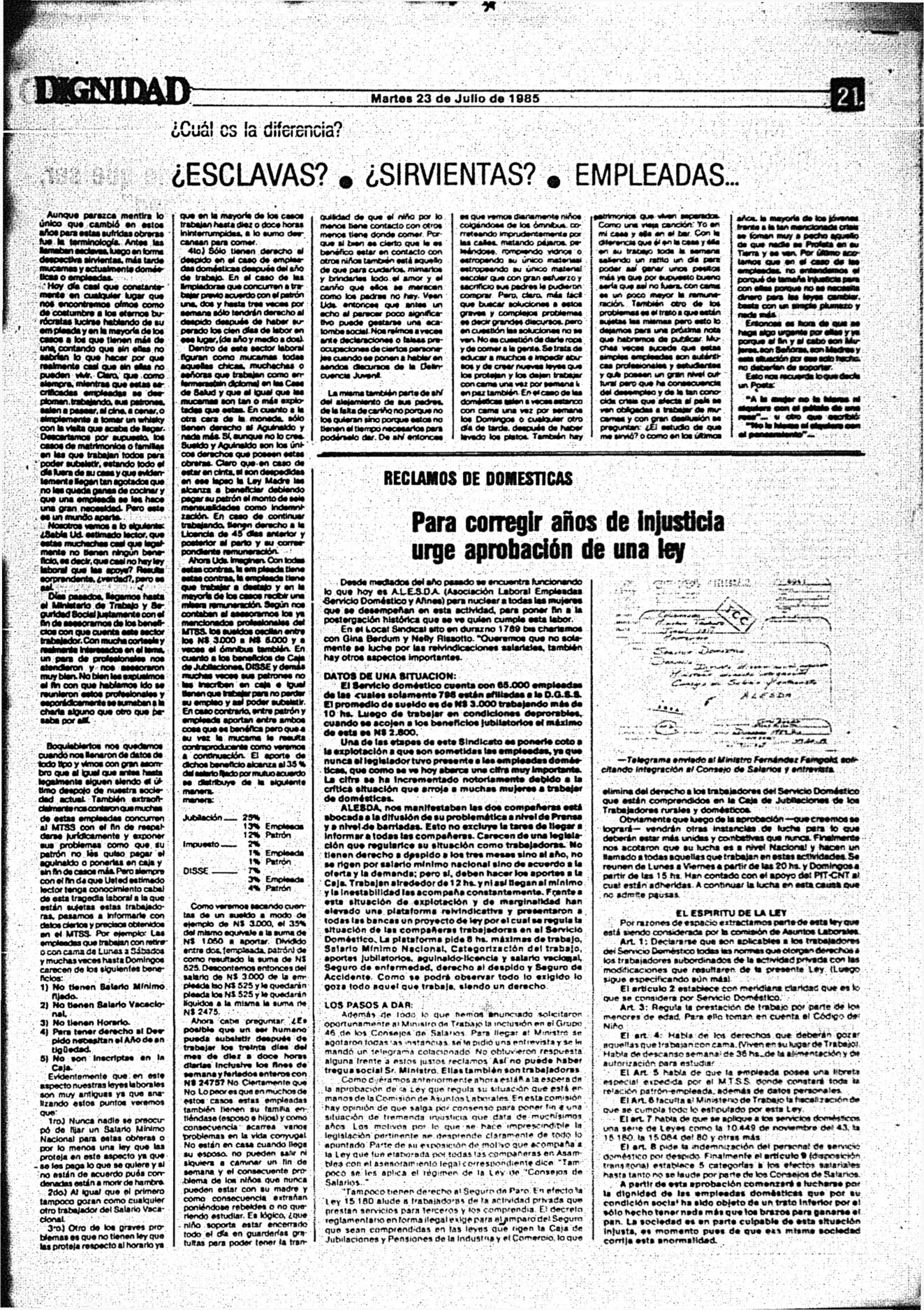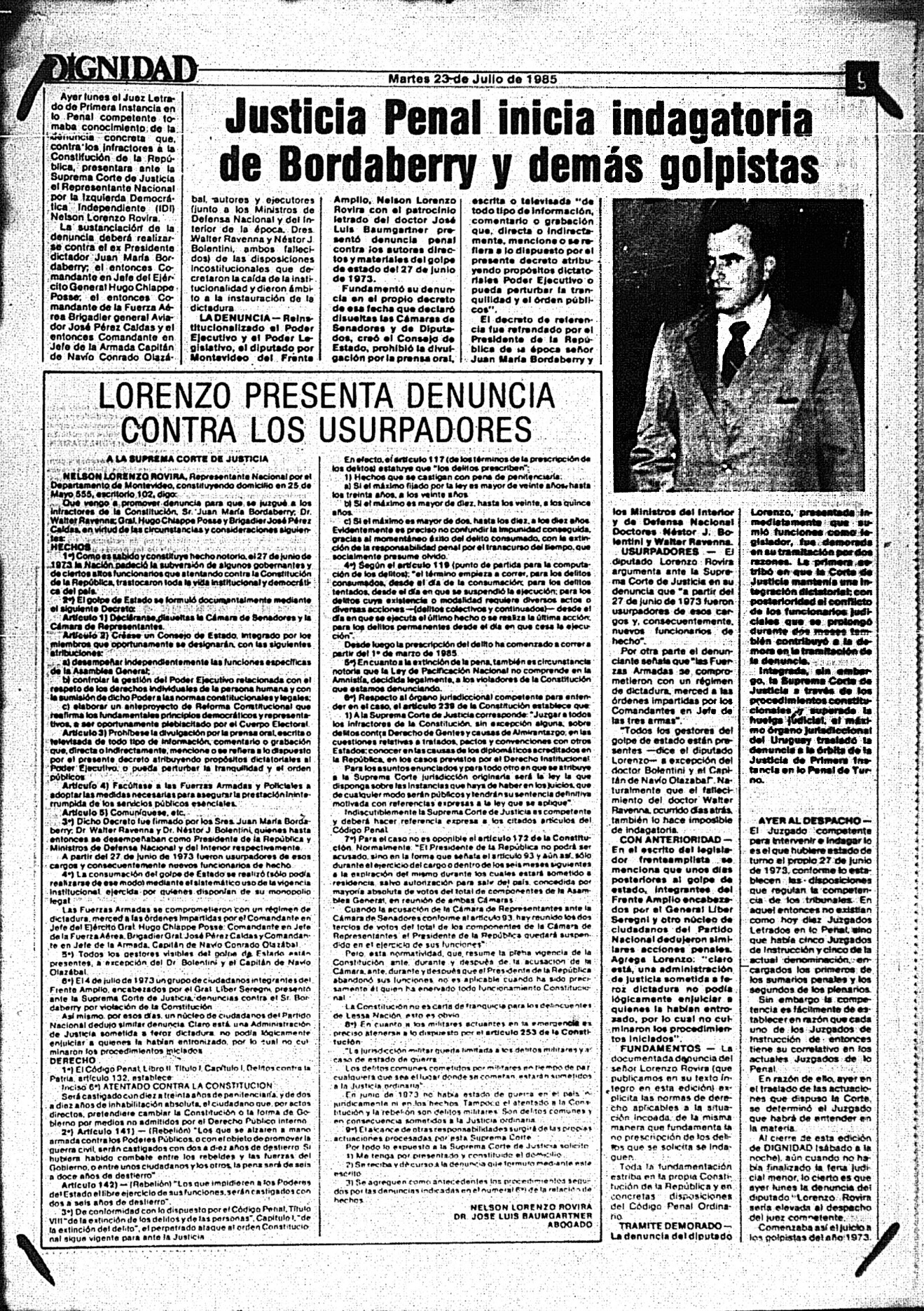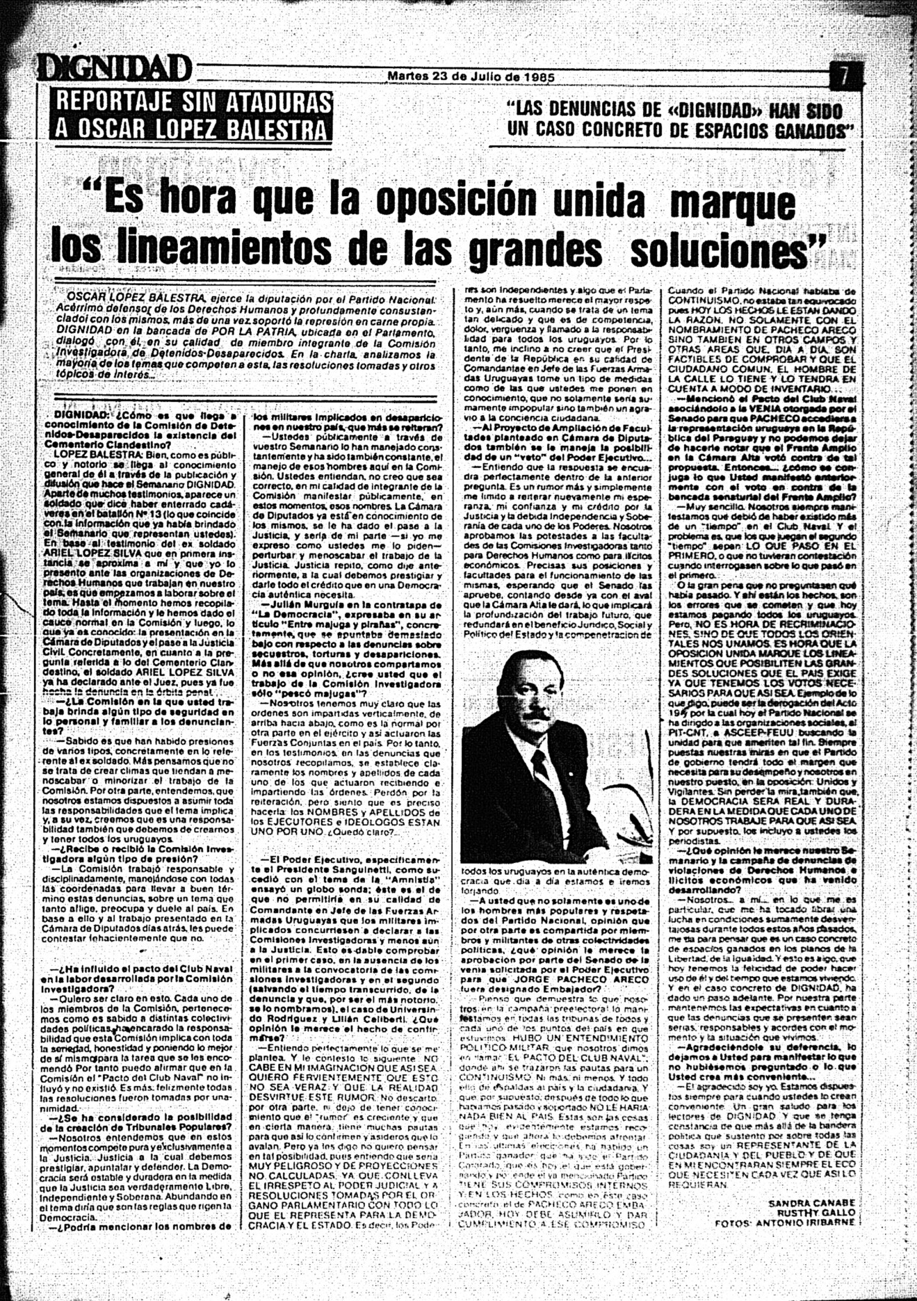 Medio de prensa Dignidad Tipo Posdictadura Día de publicación 23 Mes de publicación 7 Año de publicación 1985 Origen Archivo Berrutti Archivo Berrutti Publicacion completa