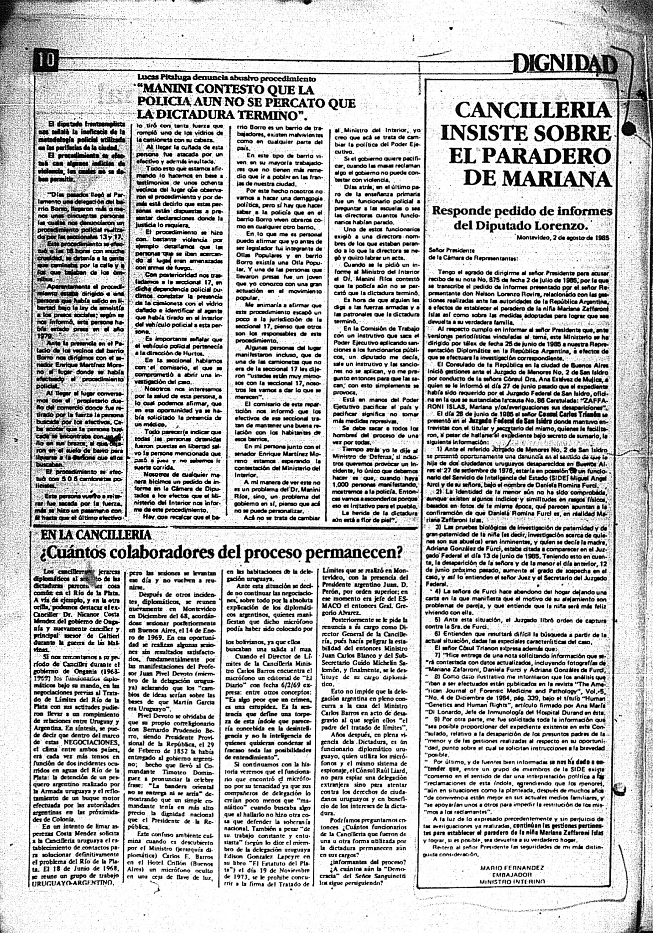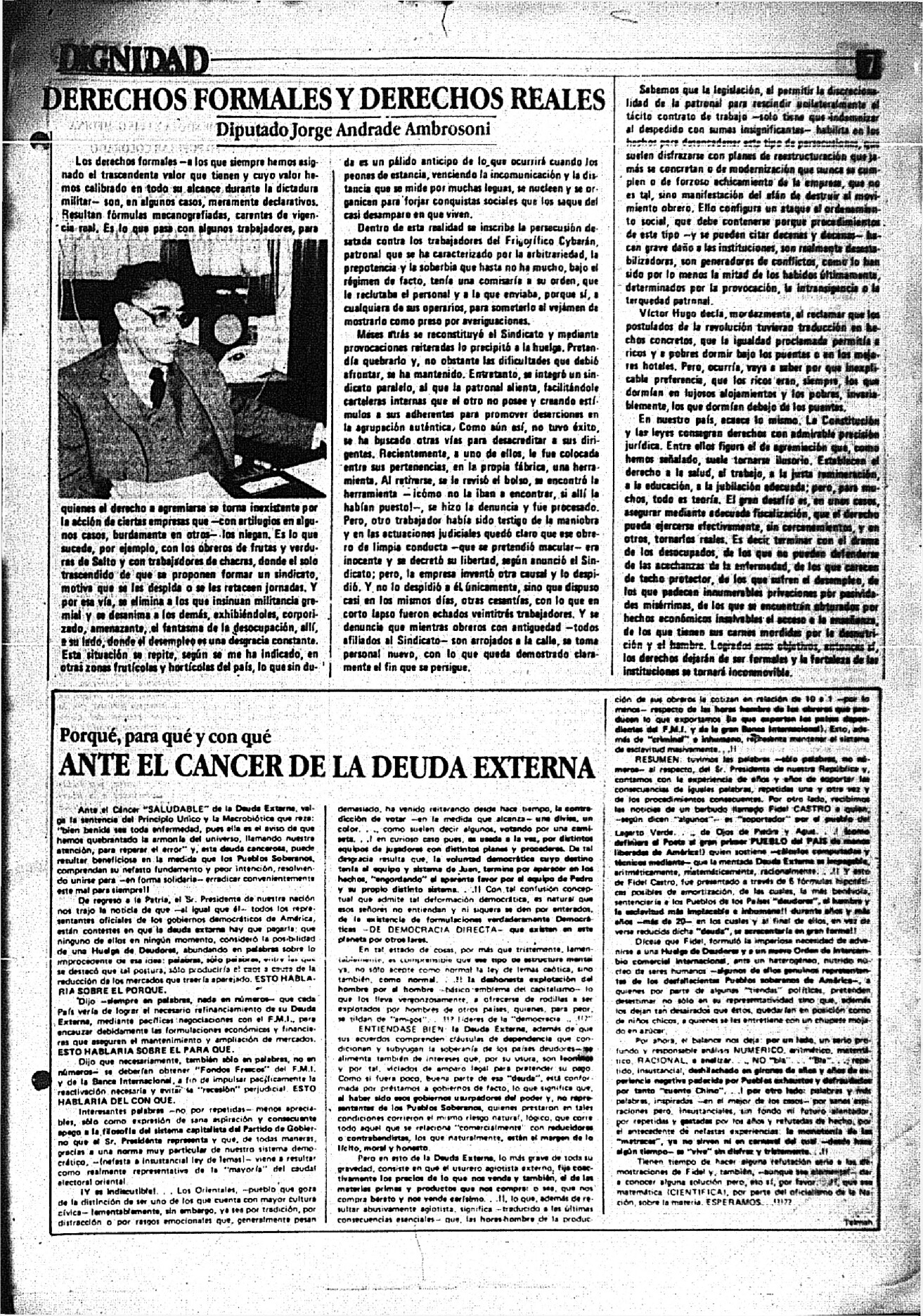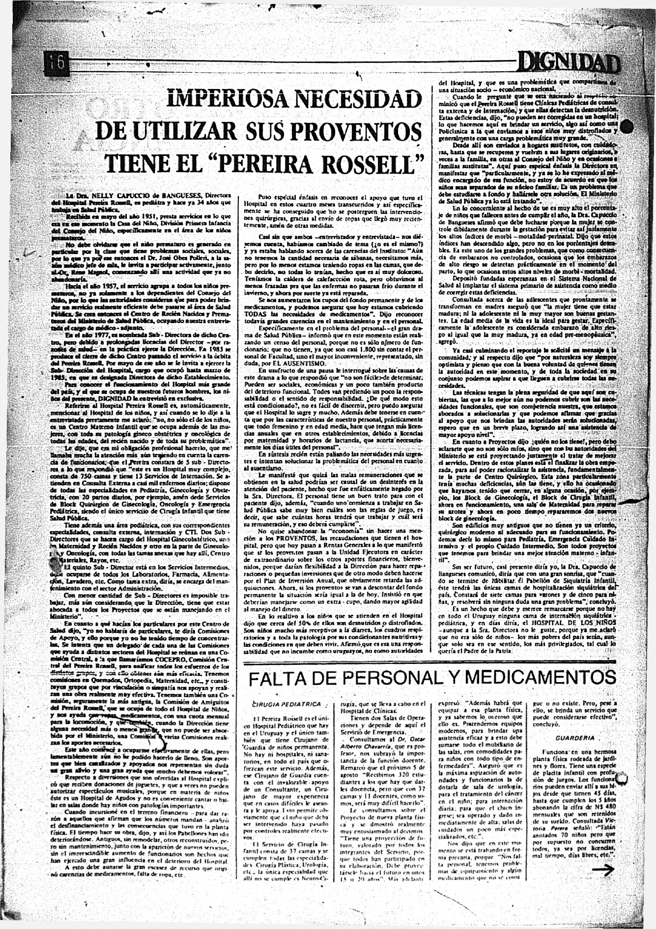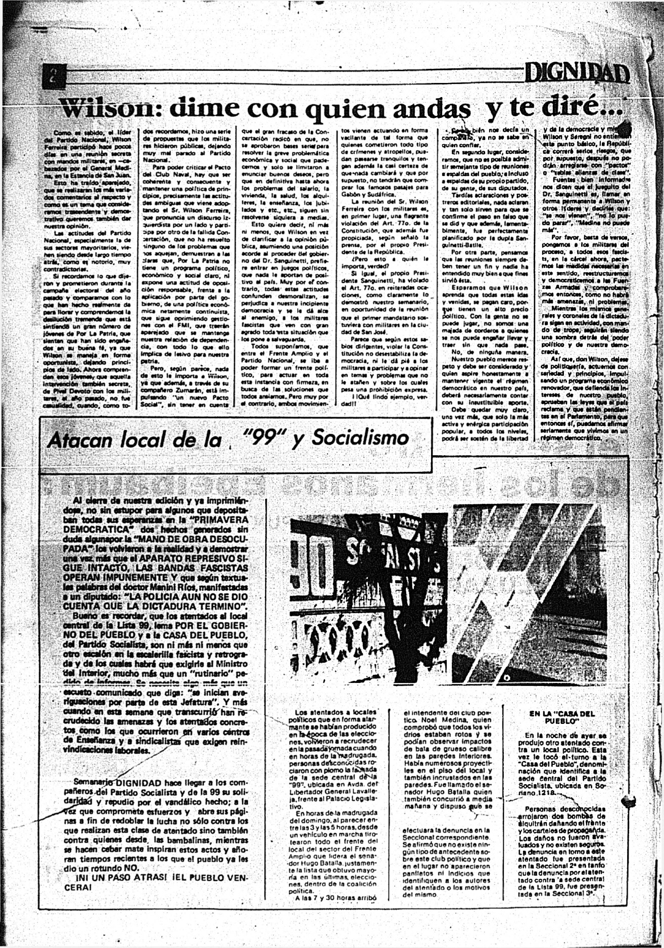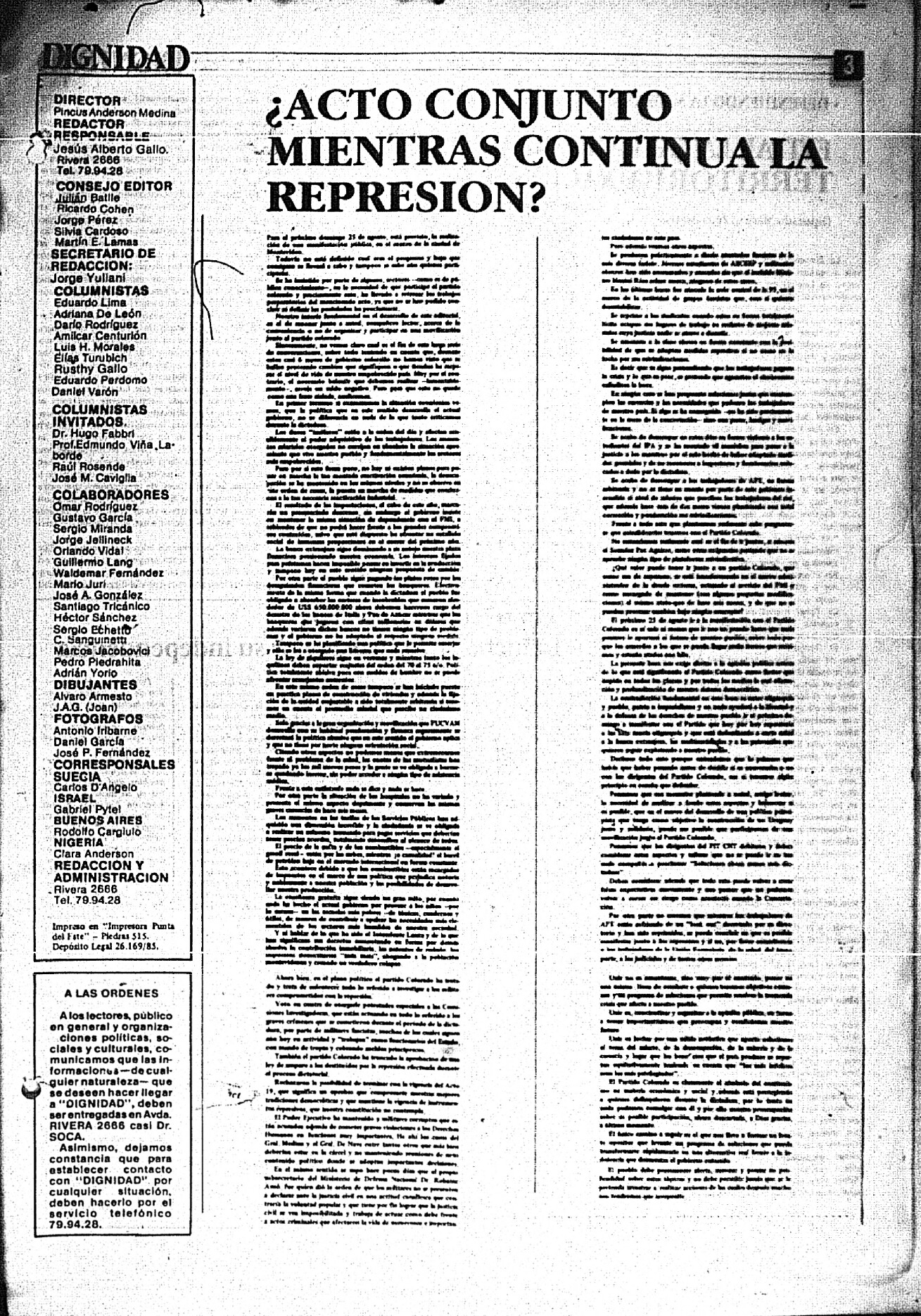 Medio de prensa Dignidad Tipo Posdictadura Día de publicación 20 Mes de publicación 8 Año de publicación 1985 Origen Archivo Berrutti Archivo Berrutti Publicacion completa