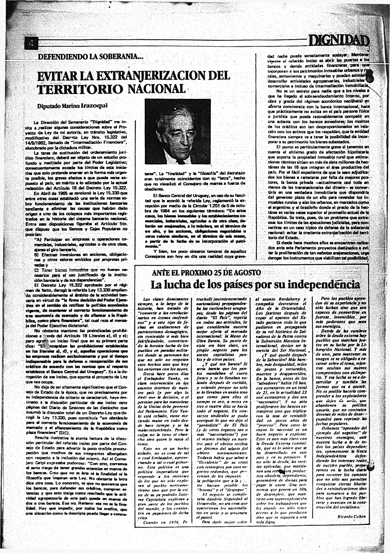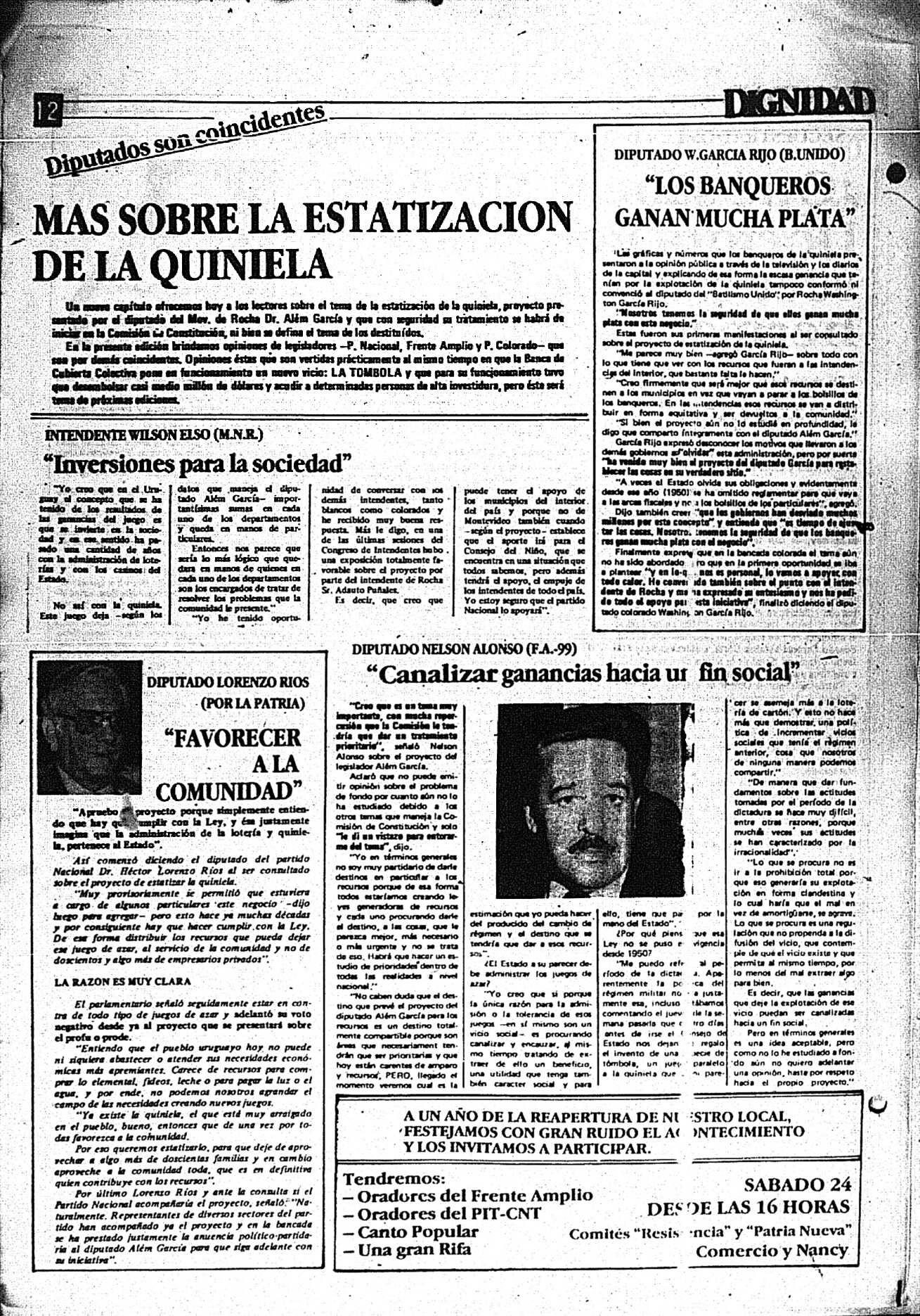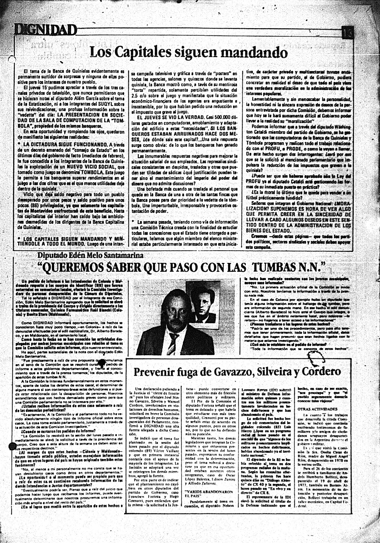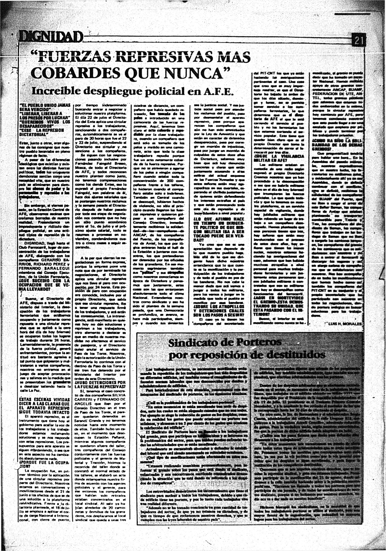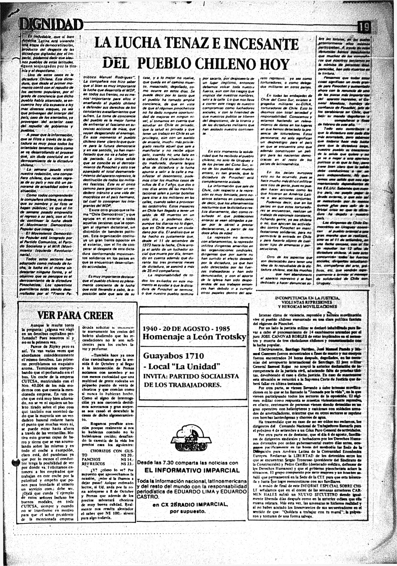 Medio de prensa Dignidad Tipo Posdictadura Día de publicación 20 Mes de publicación 8 Año de publicación 1985 Origen Archivo Berrutti Archivo Berrutti Publicacion completa
