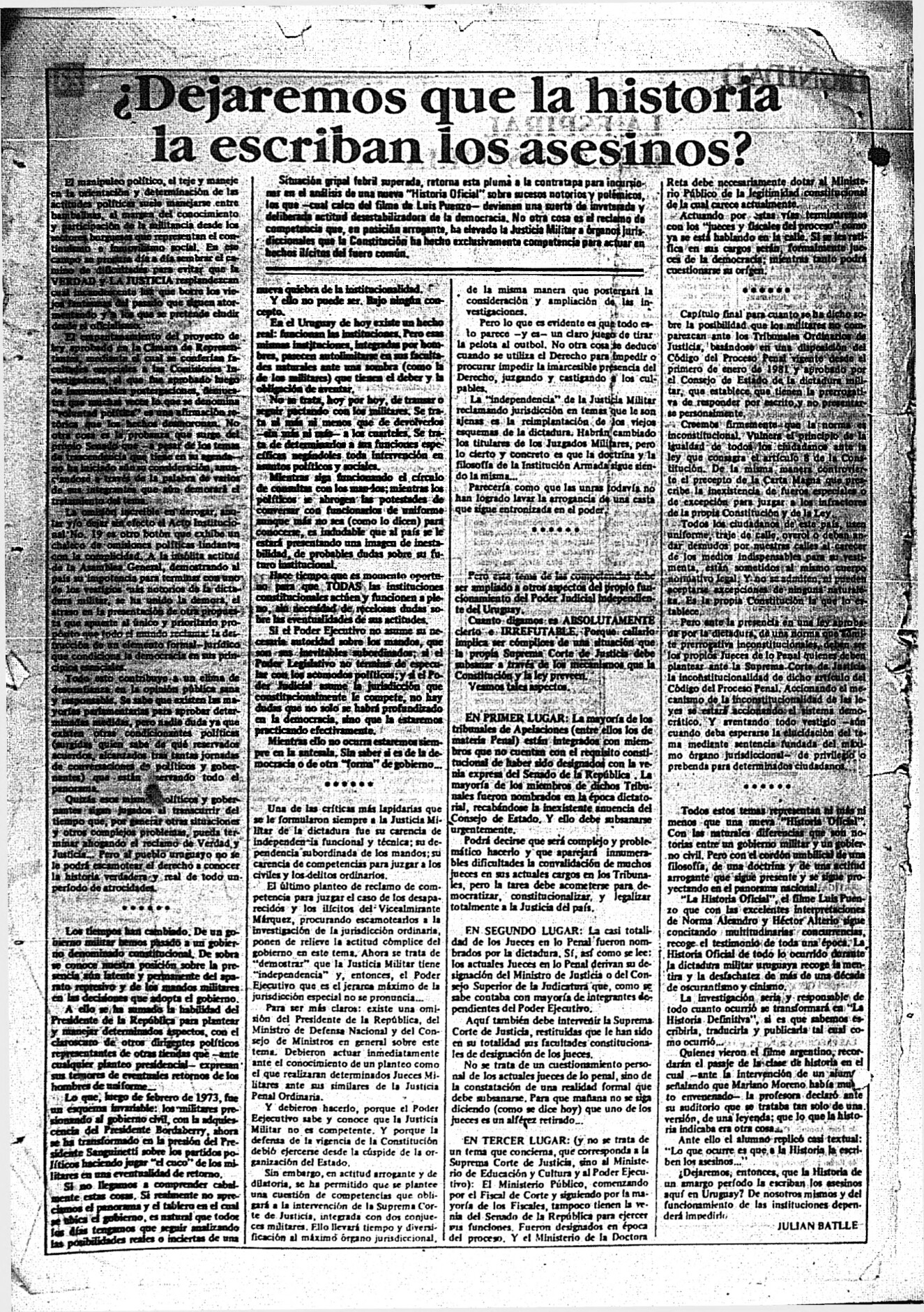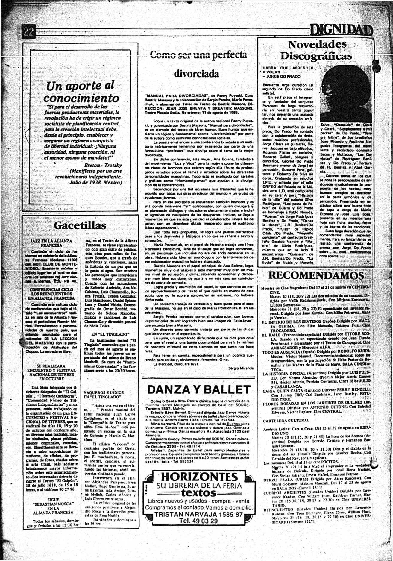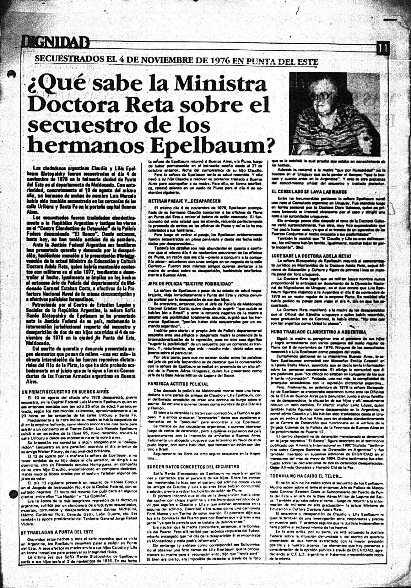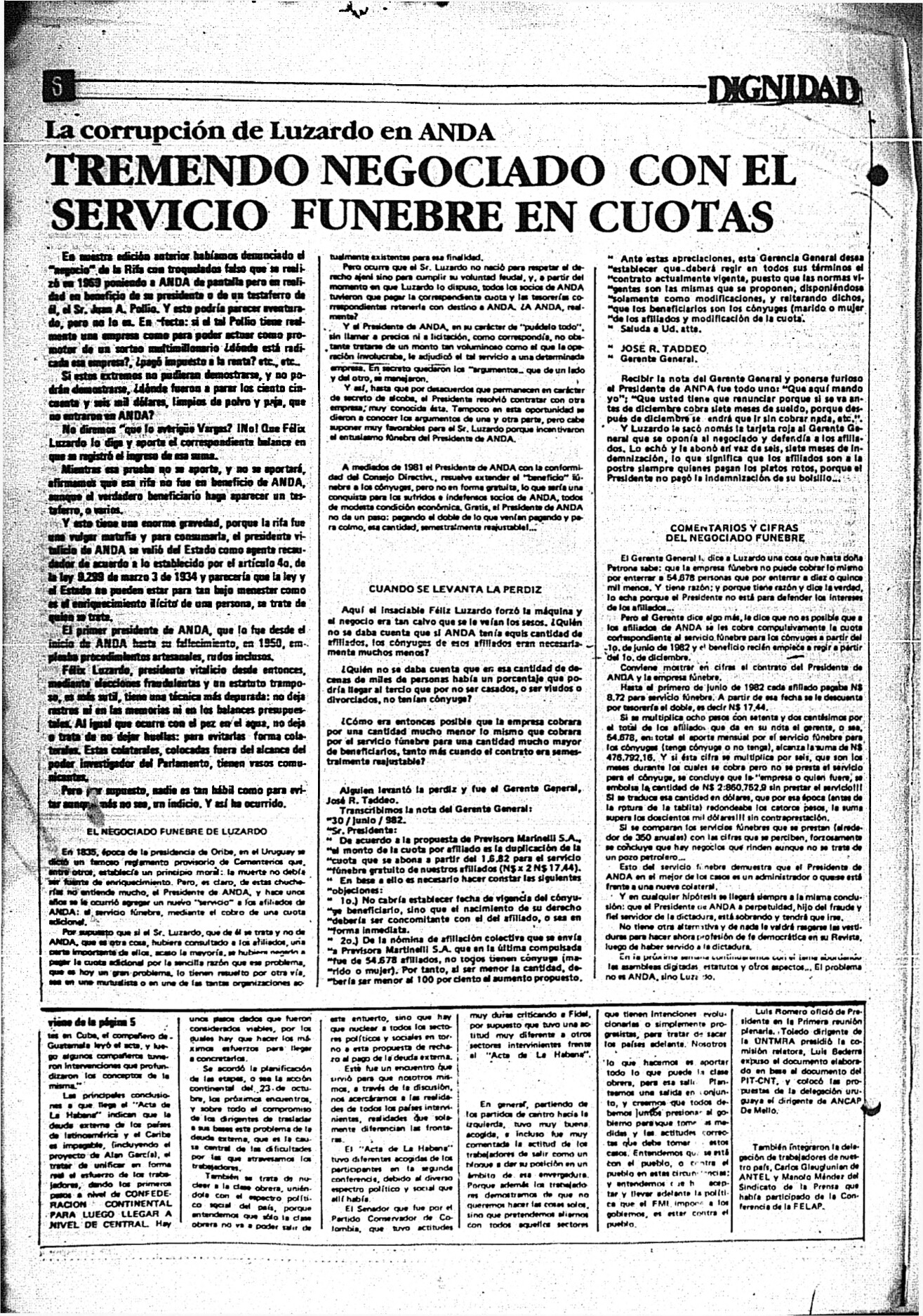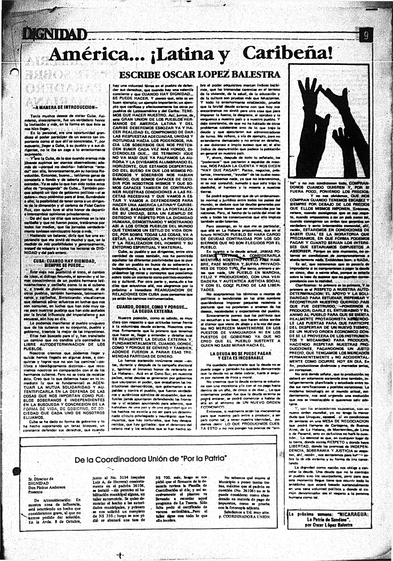 Medio de prensa Dignidad Tipo Posdictadura Día de publicación 20 Mes de publicación 8 Año de publicación 1985 Origen Archivo Berrutti Archivo Berrutti Publicacion completa