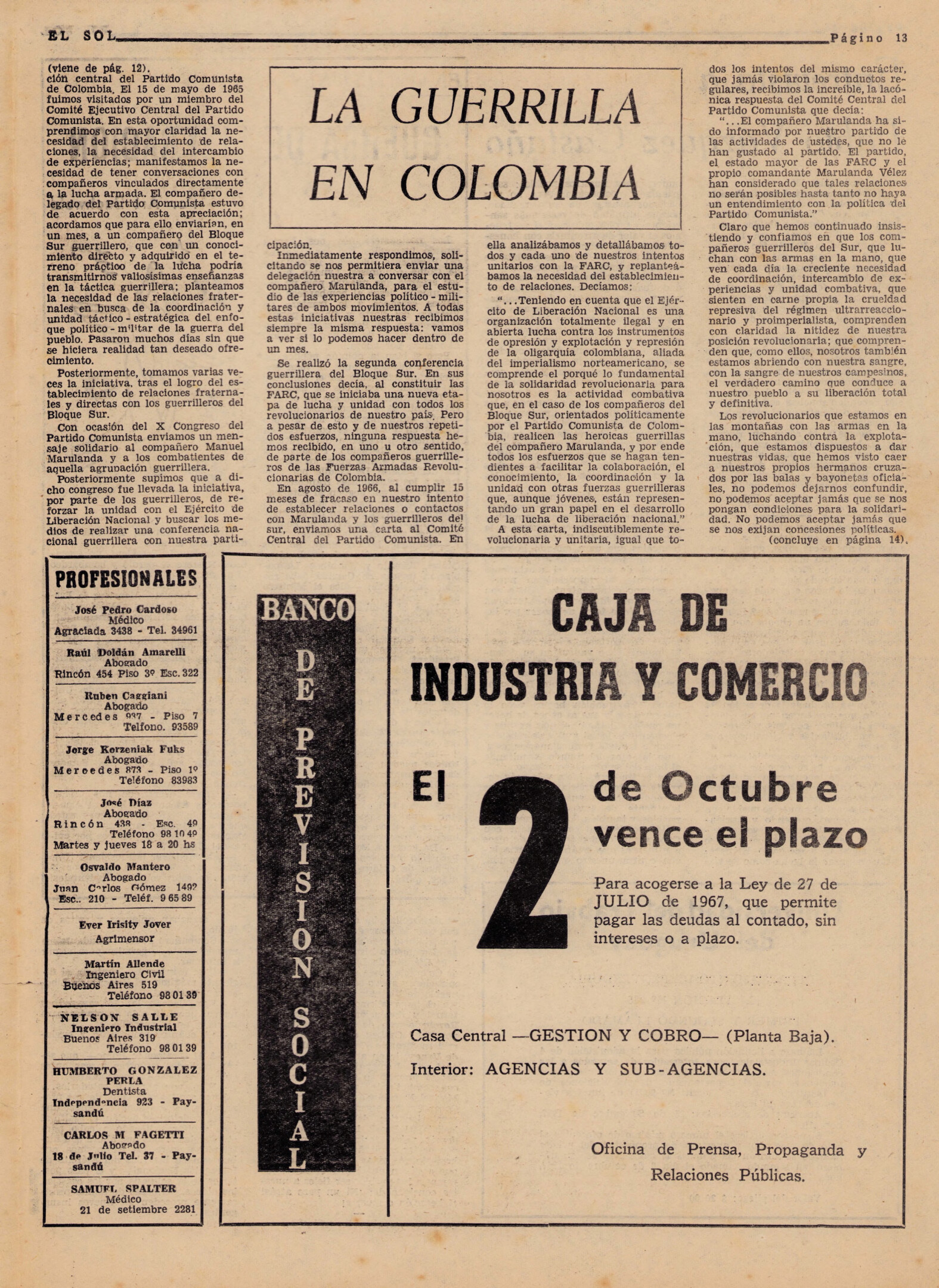 Medio de prensa El Sol Tipo Crítica Día de publicación 23 Mes de publicación 9 Año de publicación 1967 Origen Acervo de la Fundación Vivián Trias Acervo de la Fundación Vivián Trias Publicacion completa