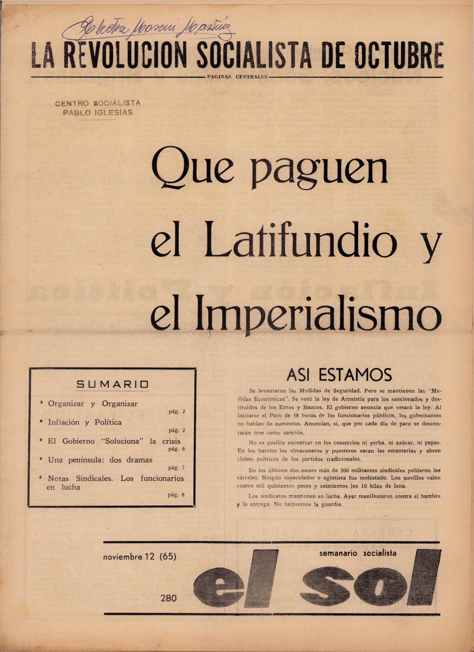 Medio de prensa El Sol Tipo Crítica Día de publicación 12 Mes de publicación 11 Año de publicación 1965 Origen Acervo de la Fundación Vivián Trias Acervo de la Fundación Vivián Trias Publicacion completa