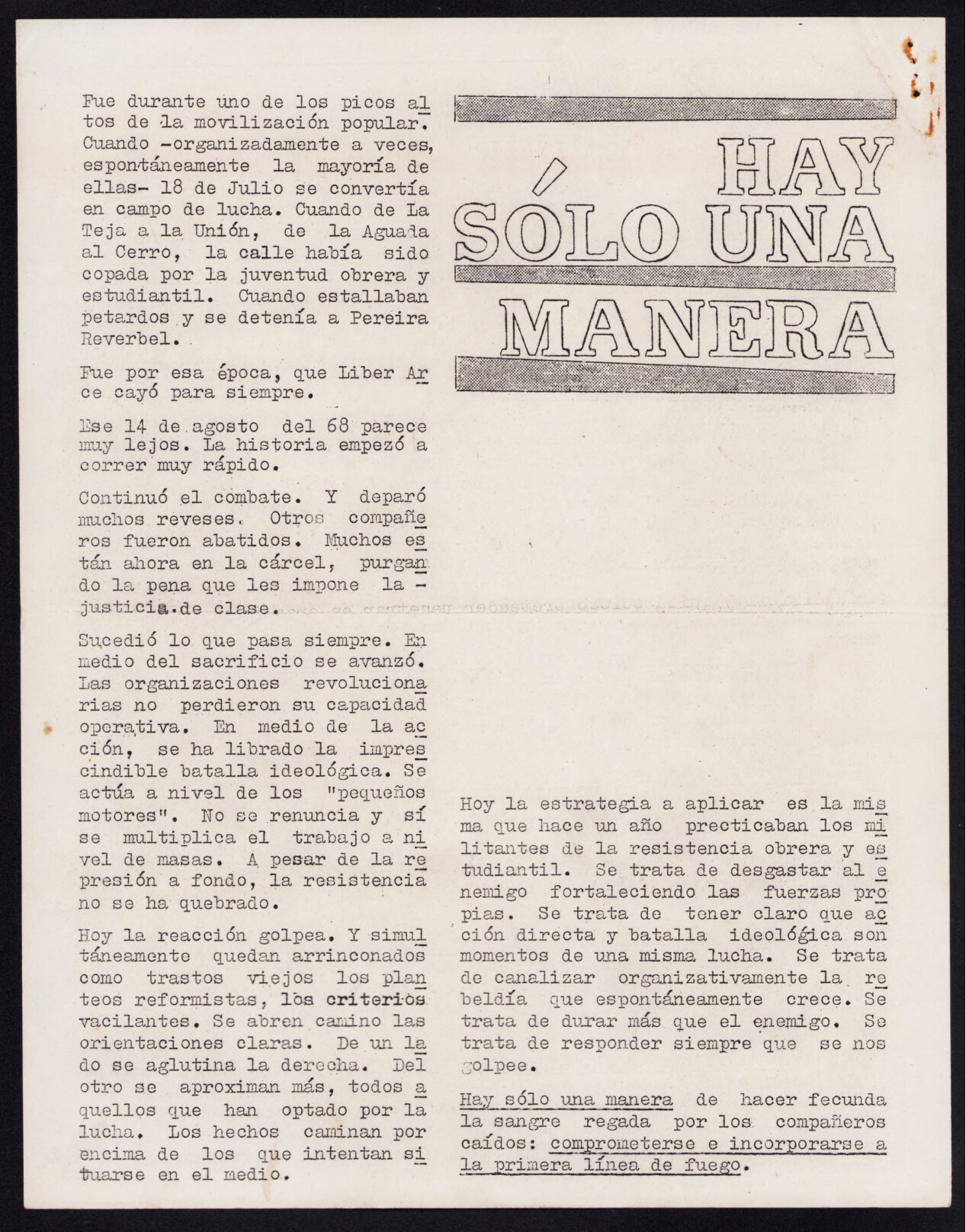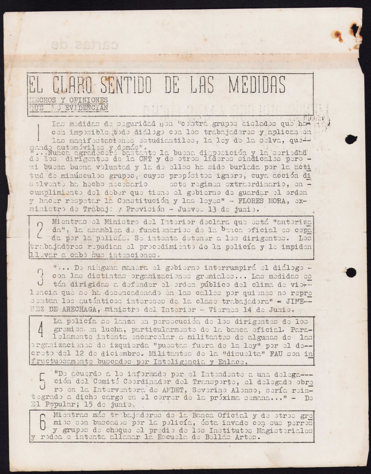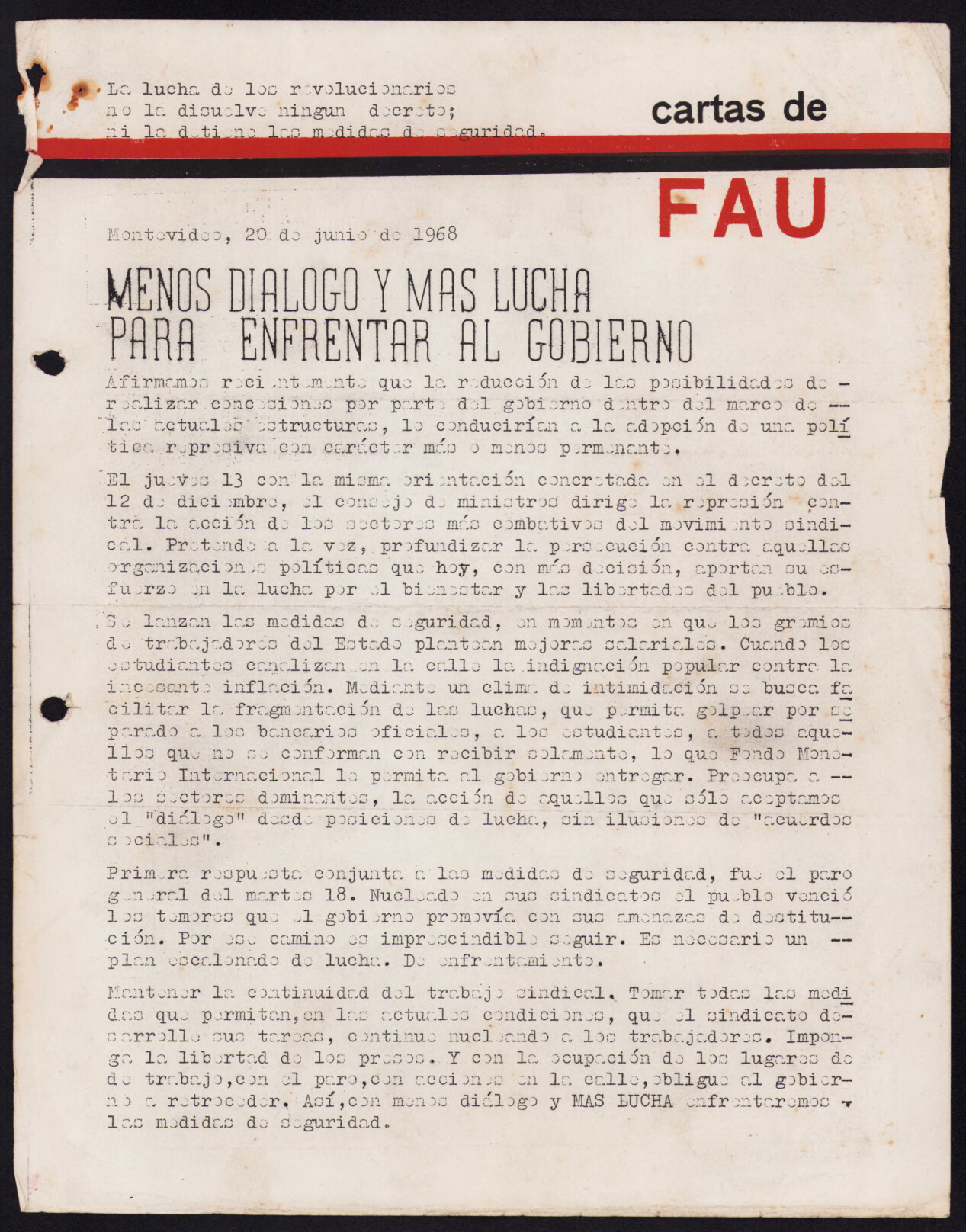 Medio de prensa Cartas de FAU Tipo Clandestina Día de publicación 20 Mes de publicación 6 Año de publicación 1968 Origen Archivo de la FAU Archivo de la FAU Publicacion completa