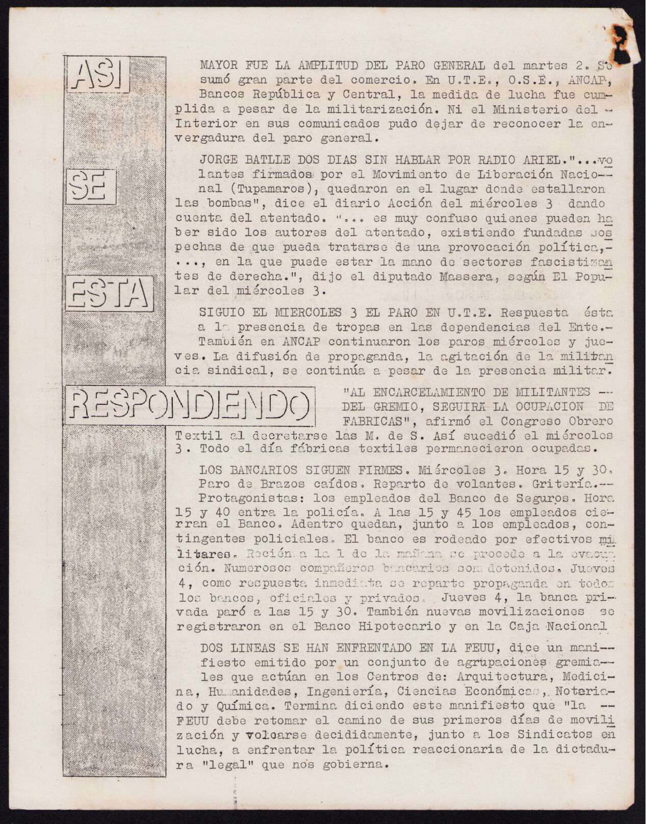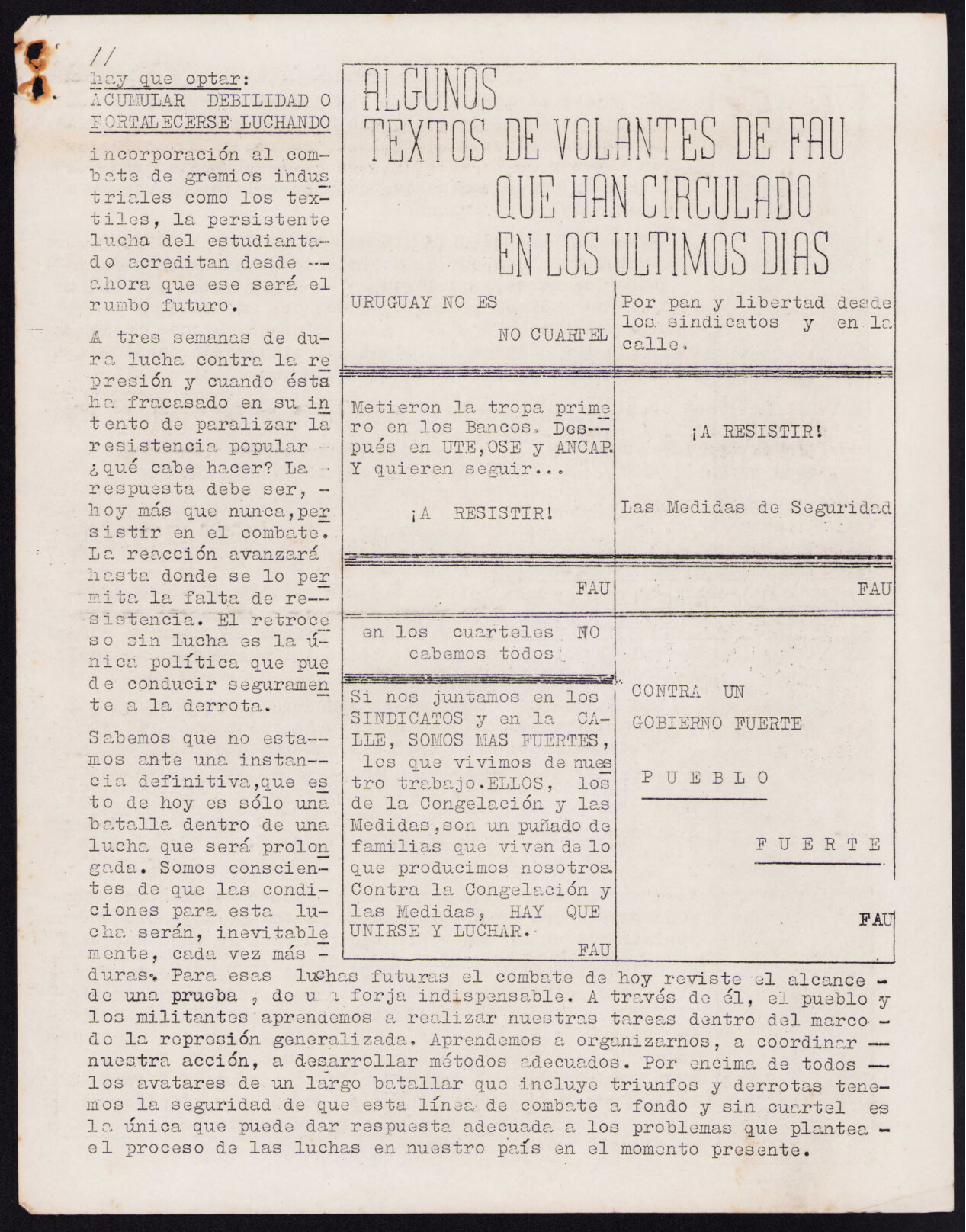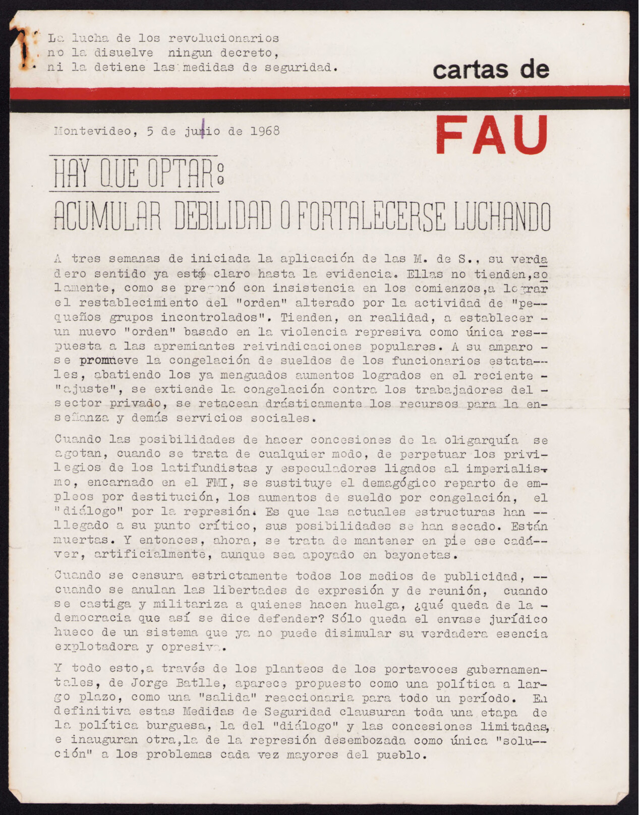 Medio de prensa Cartas de FAU Tipo Clandestina Día de publicación 5 Mes de publicación 7 Año de publicación 1968 Origen Archivo de la FAU Archivo de la FAU Publicacion completa