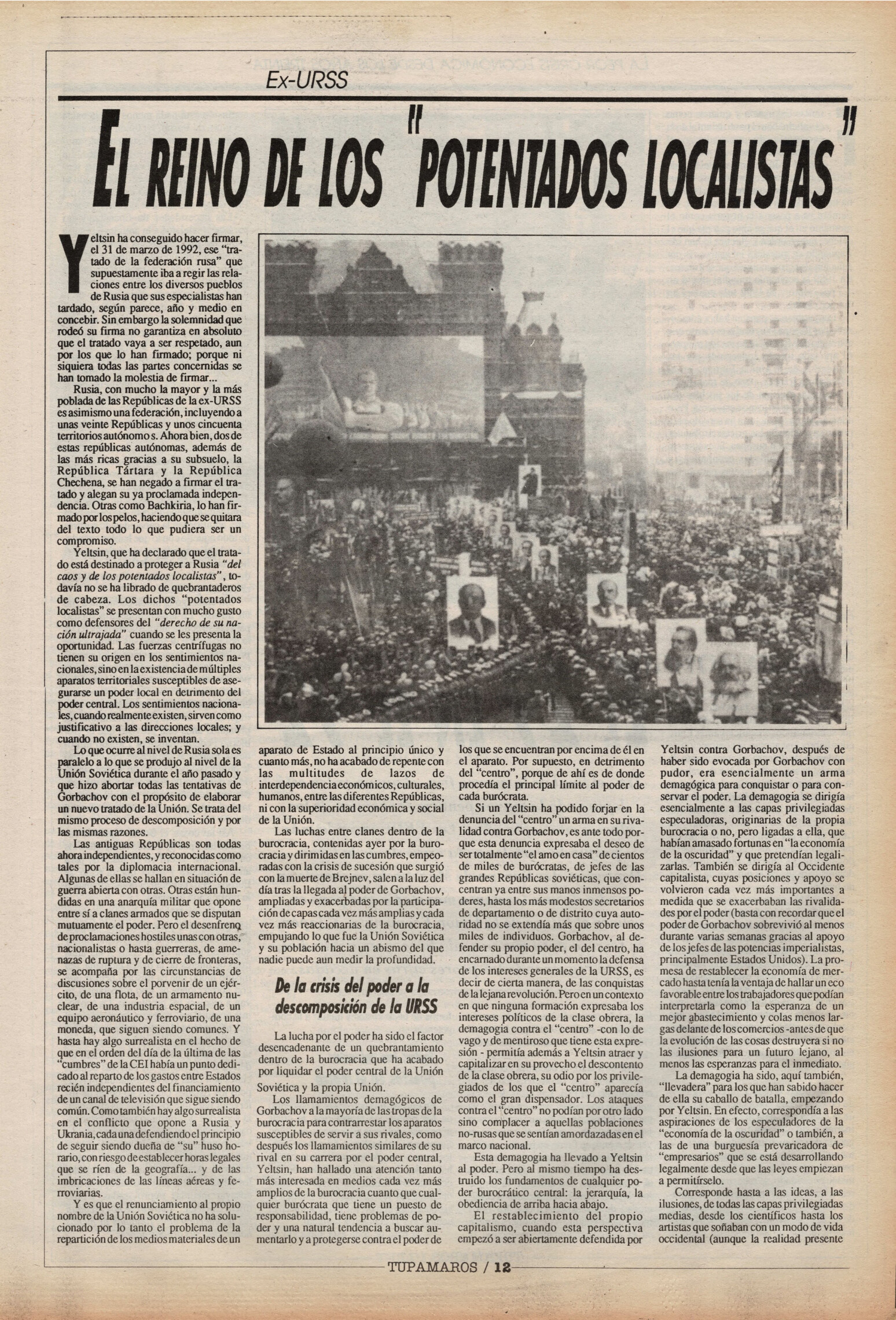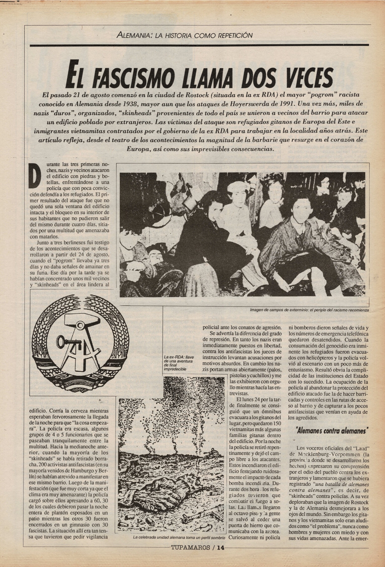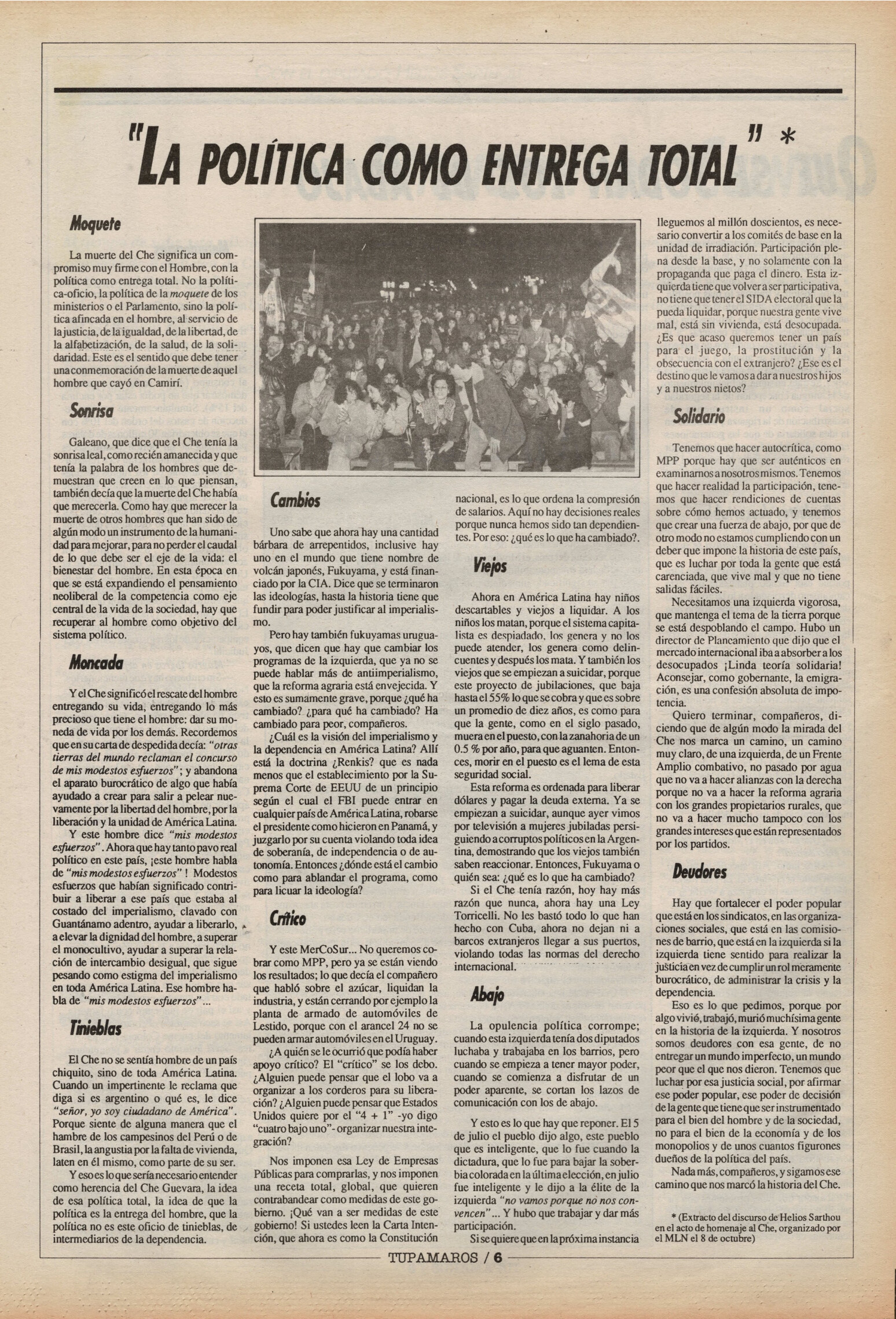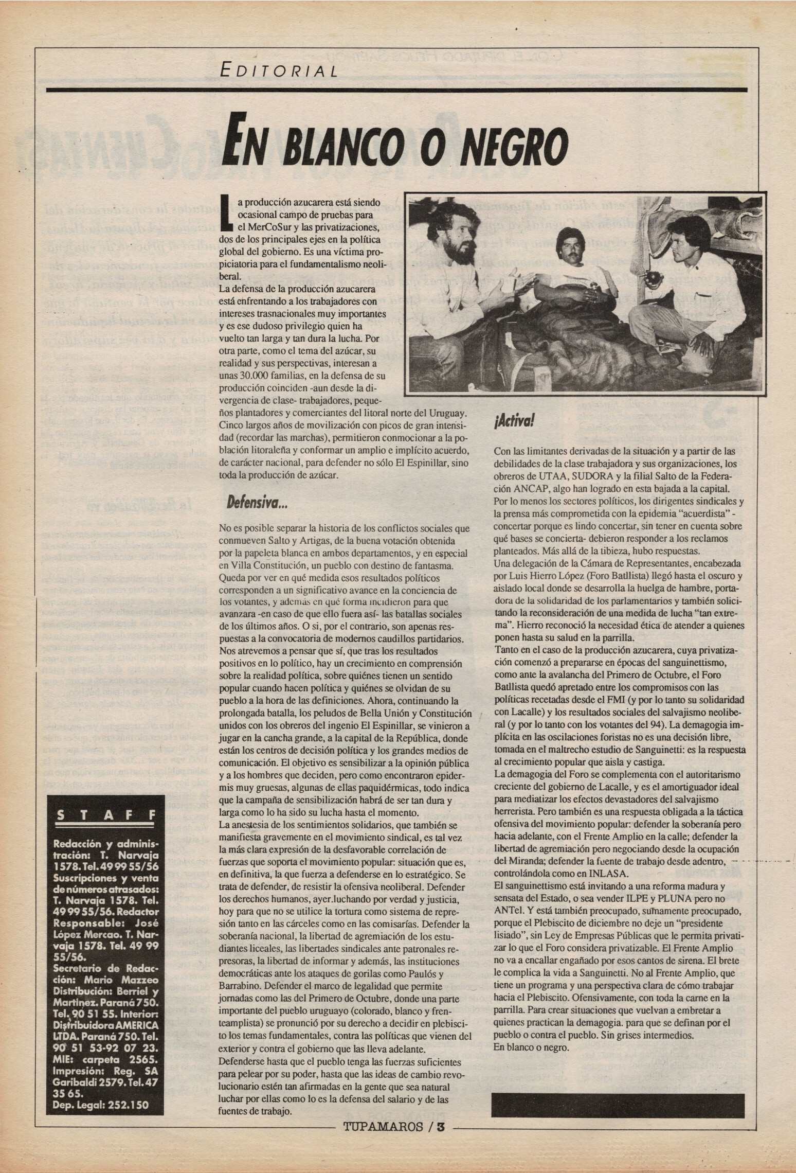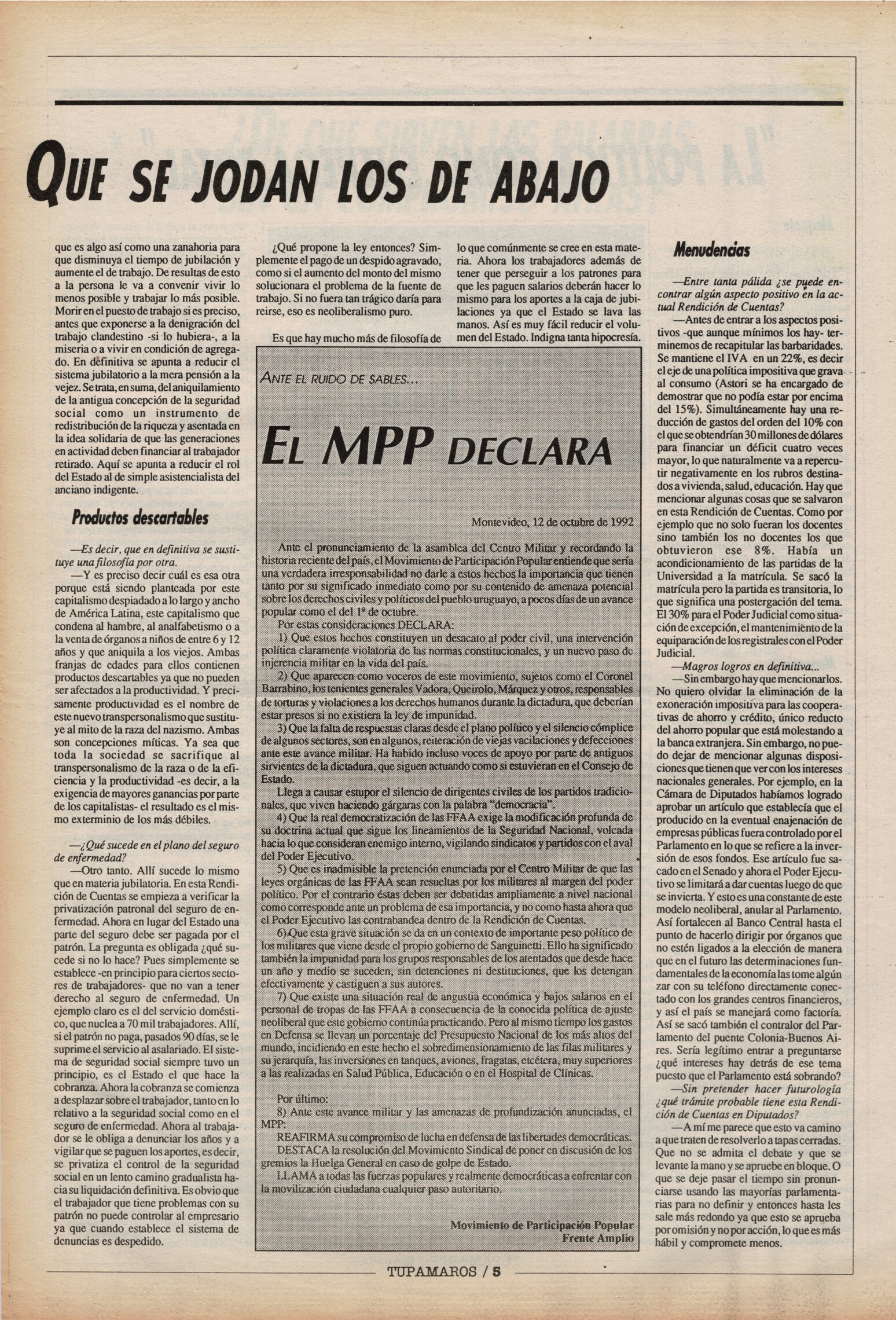 Medio de prensa Tupamaros Tipo Posdictadura Día de publicación 14 Mes de publicación 10 Año de publicación 1992 Origen Archivo del MLN-T Archivo del MLN-T Publicacion completa