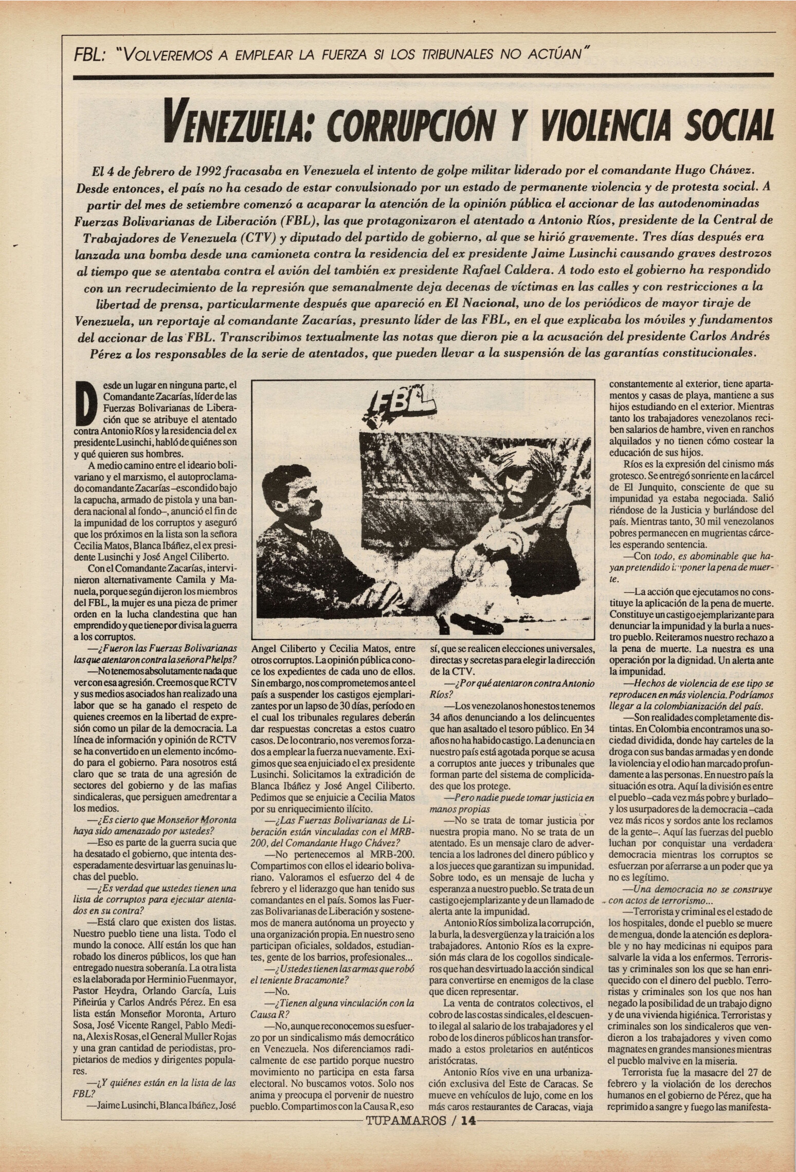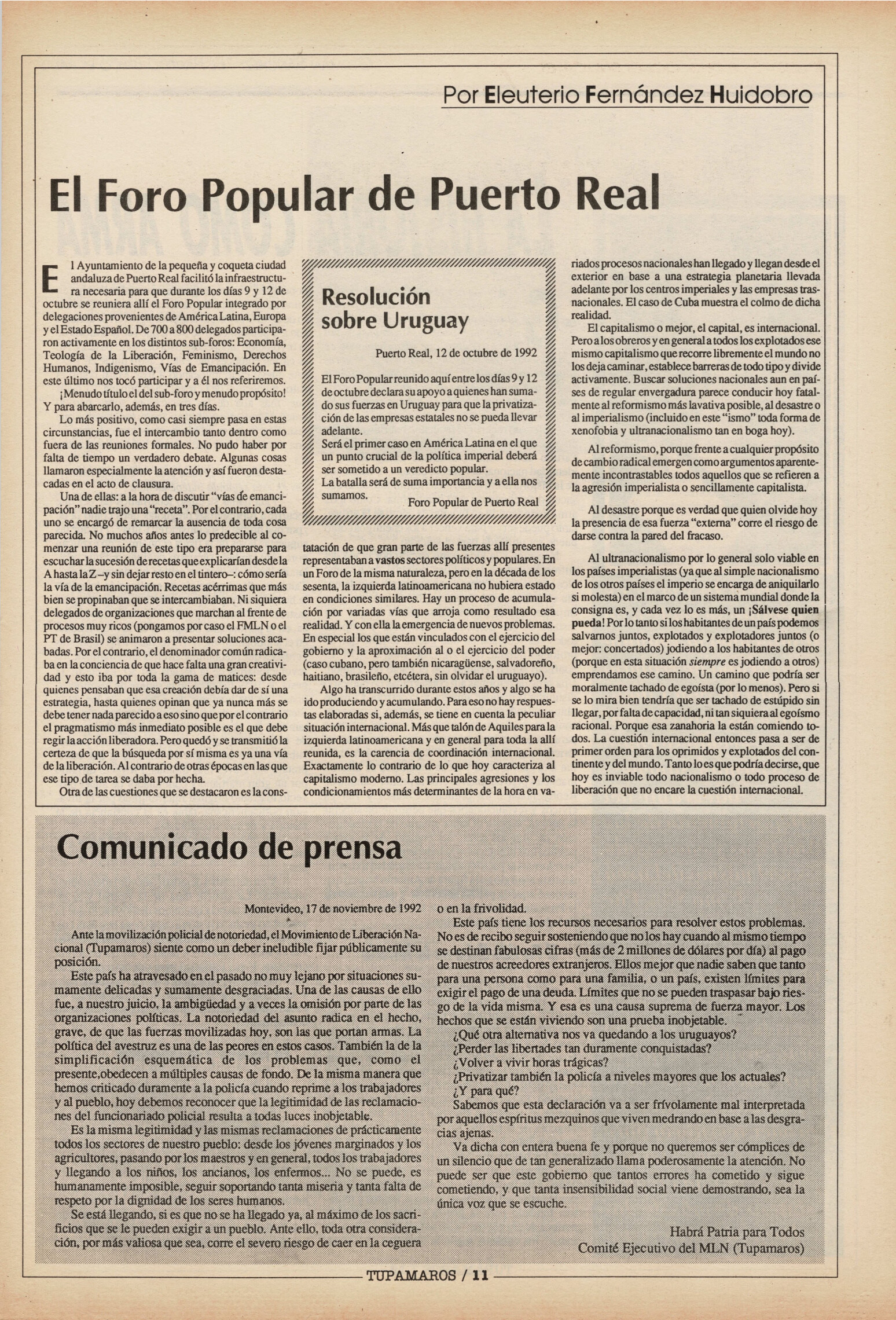 Medio de prensa Tupamaros Tipo Posdictadura Día de publicación 25 Mes de publicación 11 Año de publicación 1992 Origen Archivo del MLN-T Archivo del MLN-T Publicacion completa