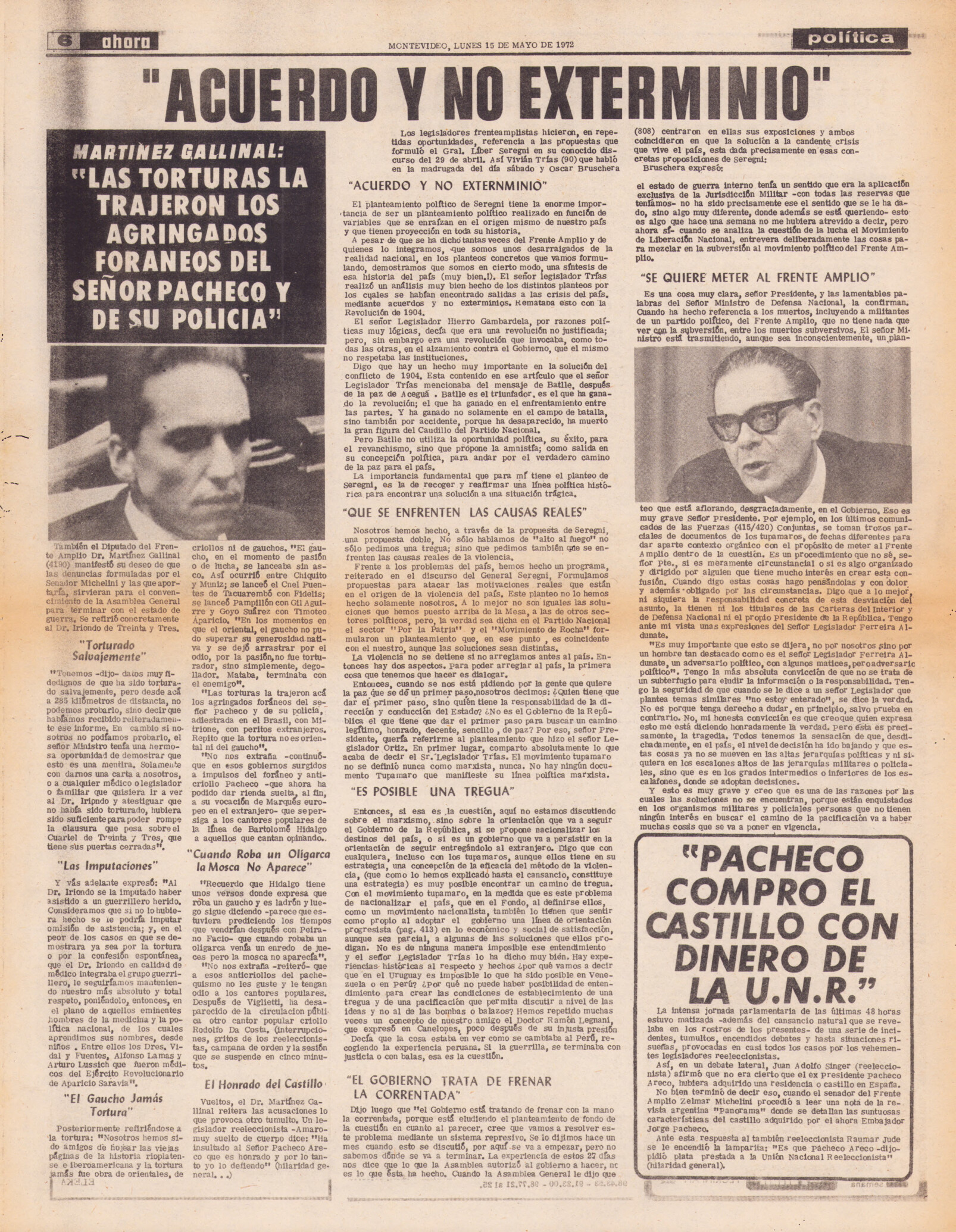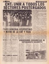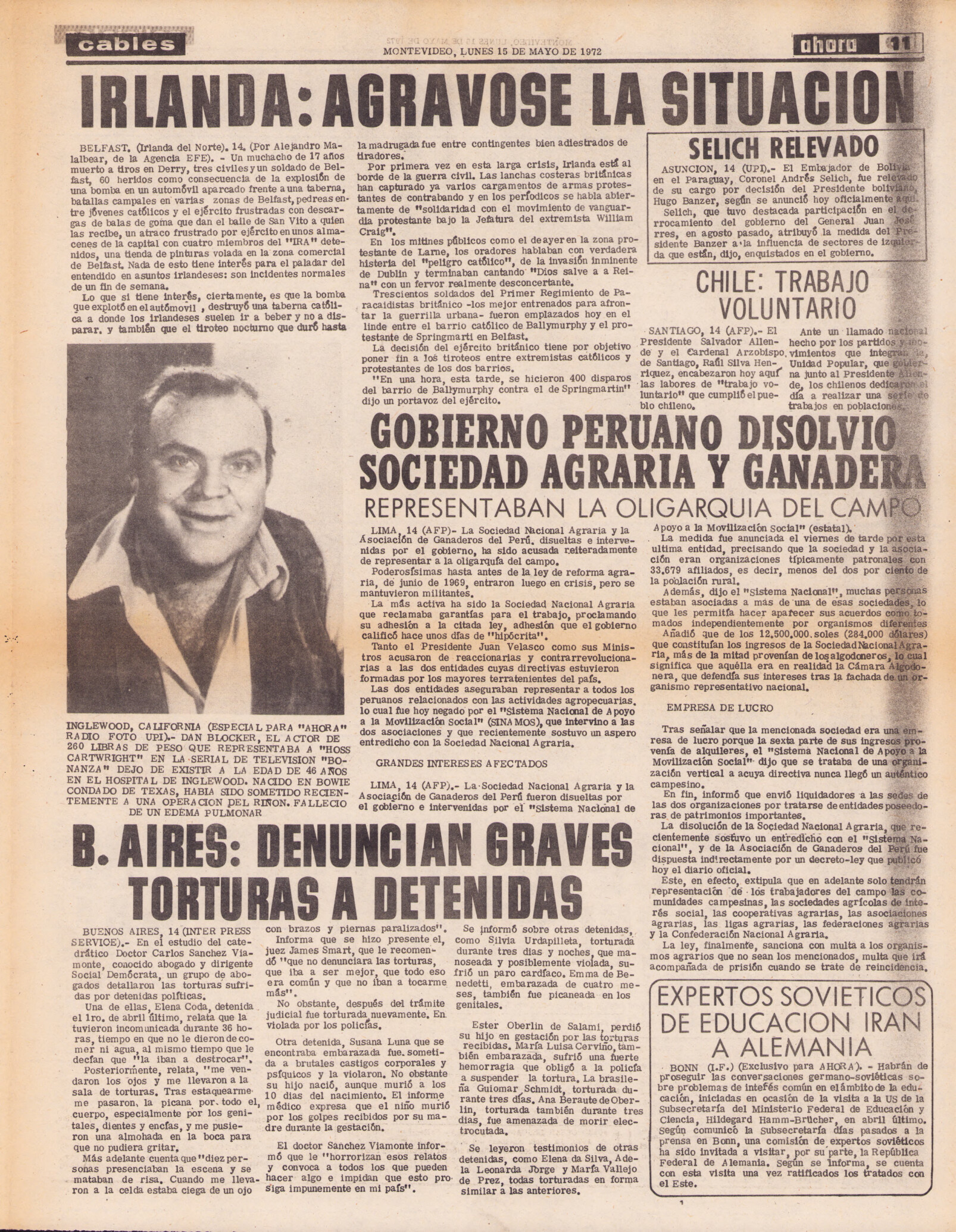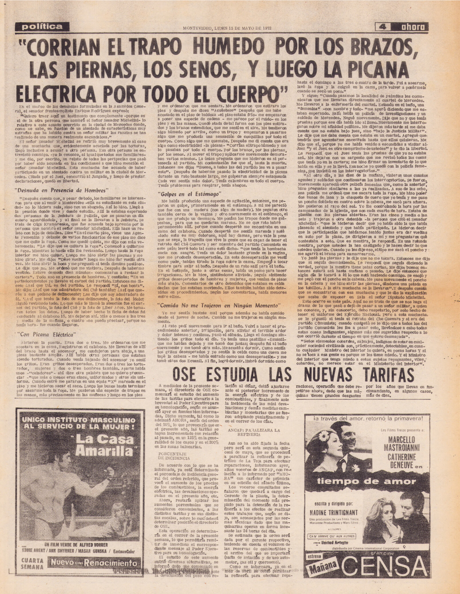 Publicación que reproduce un comunicado ofical de las Fuerzas Conjuntas, atribuyendo el suicidio como causa de muerte de Juan Fachinelli, quién estaba detenido en el Batallón de Infantería no. 1.
