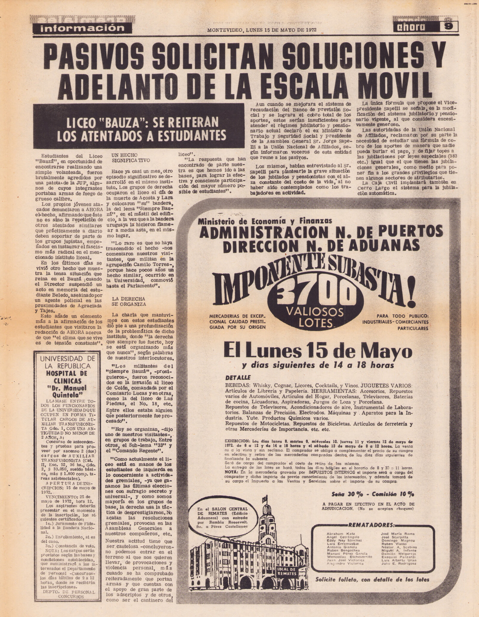 Ahora fue un diario dirigido por Oscar H. Bruschera y vinculado al Partido Demócrata Cristiano. Comenzó a publicarse en 1971 y hacia fines de 1973 luego de una clausura por 30 números, se convirtió en semanario. A lo largo de estos 4 años incorporó varios suplementos, como las "Revista Internacional", "Revista de los domingos" o el humorístico "La Balota". Recibió clausuras parciales en varias oportunidades y fue clausurado definitivamente en abril de 1974.