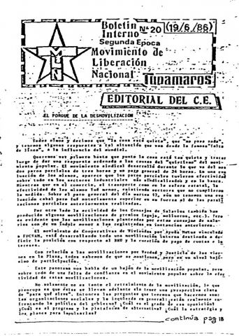 "Boletín Interno" fue una publicación del Movimiento de Liberación Nacional-Tupamaros orientada a su distribución dentro de sus militantes. Tuvo dos épocas de publicación y probablemente haya comenzado a editarse en 1985. Su periodicidad era quincenal.