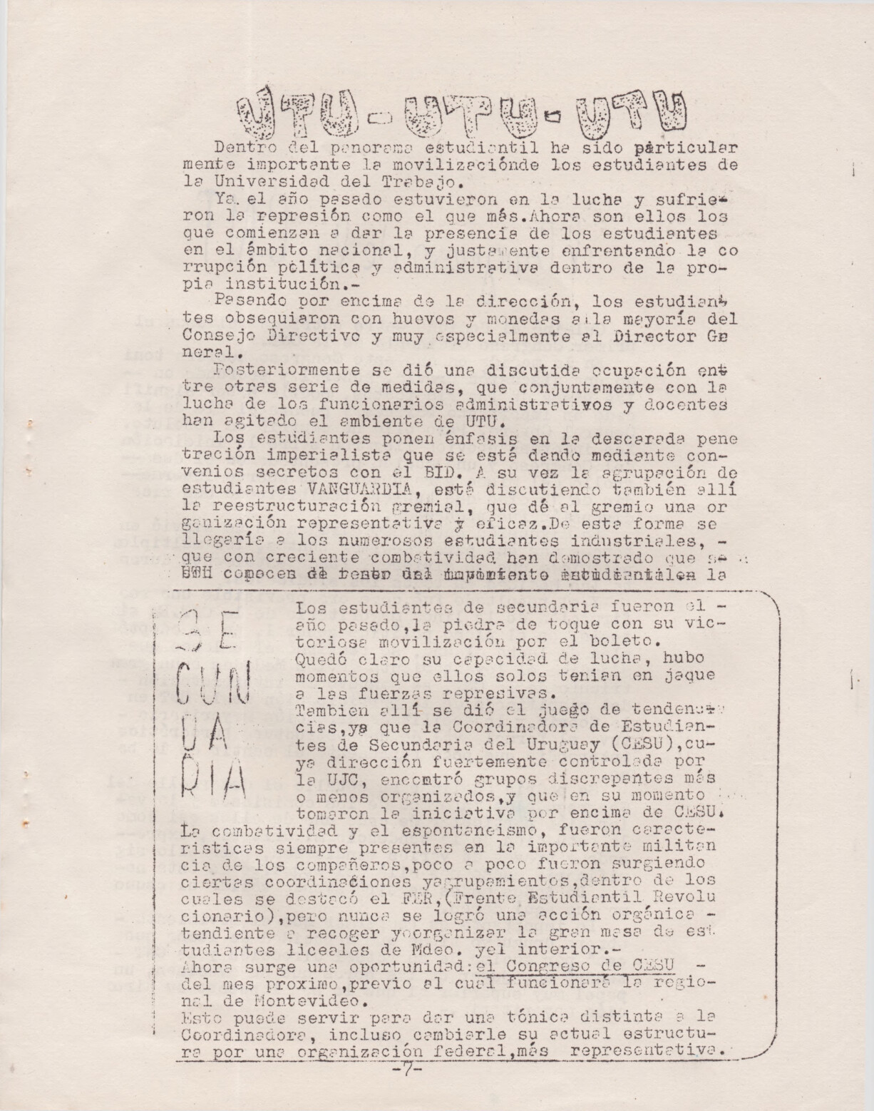 Brigada fue una publicación que funcionó como órgano oficial de la Brigada Universitaria Socialista (BUS), la agrupación de estudiantes universitarios perteneciente al Partido Socialista (PS) de Uruguay. Esta última organización era una ramificación organizativa, que junto a las Brigadas de Secundarios Socialistas (BSS) funcionaban como el núcleo orgánico para captar, formar y organizar a los estudiantes que se acercaban al socialismo. Se publicó en condiciones semi clandestinas, al menos entre 1969 y 1972.