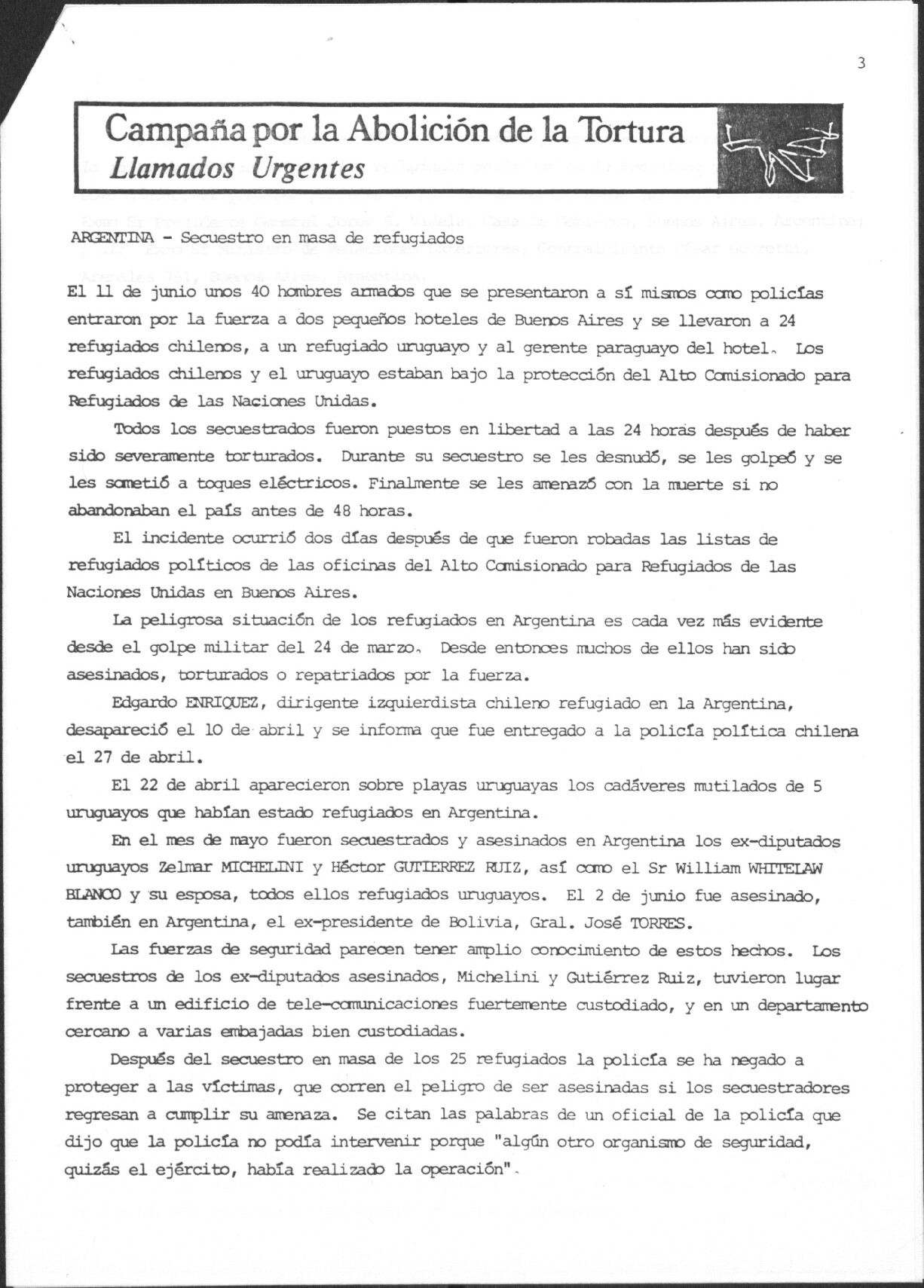 Enlace a contenido: Argentina : Secuestro en masa de refugiados