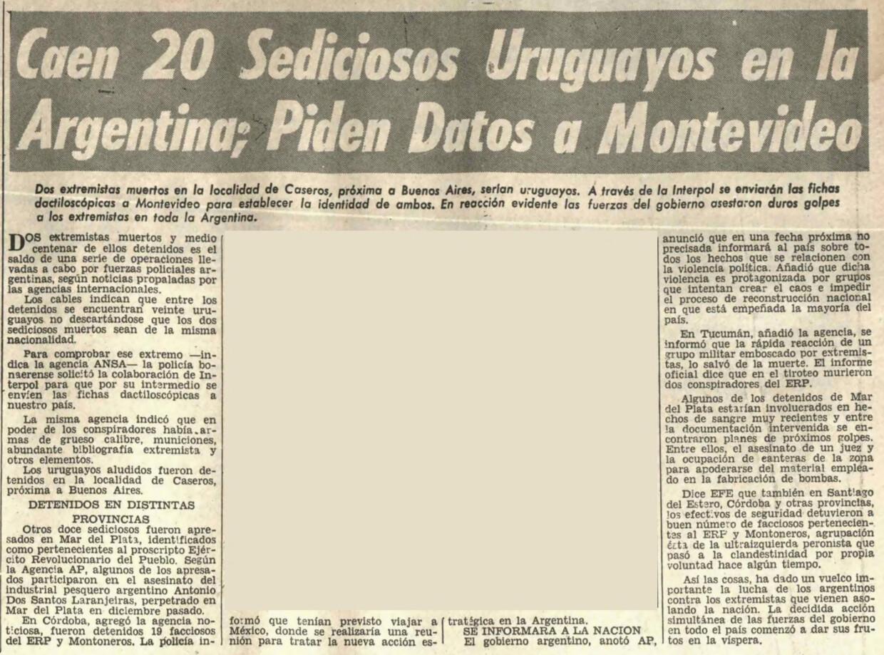 Nota de prensa de El País (Montevideo), publicada el 30/12/1977, fue difundida como parte de un operativo de propaganda de la dictadura uruguaya, en coordinación con la argentina.