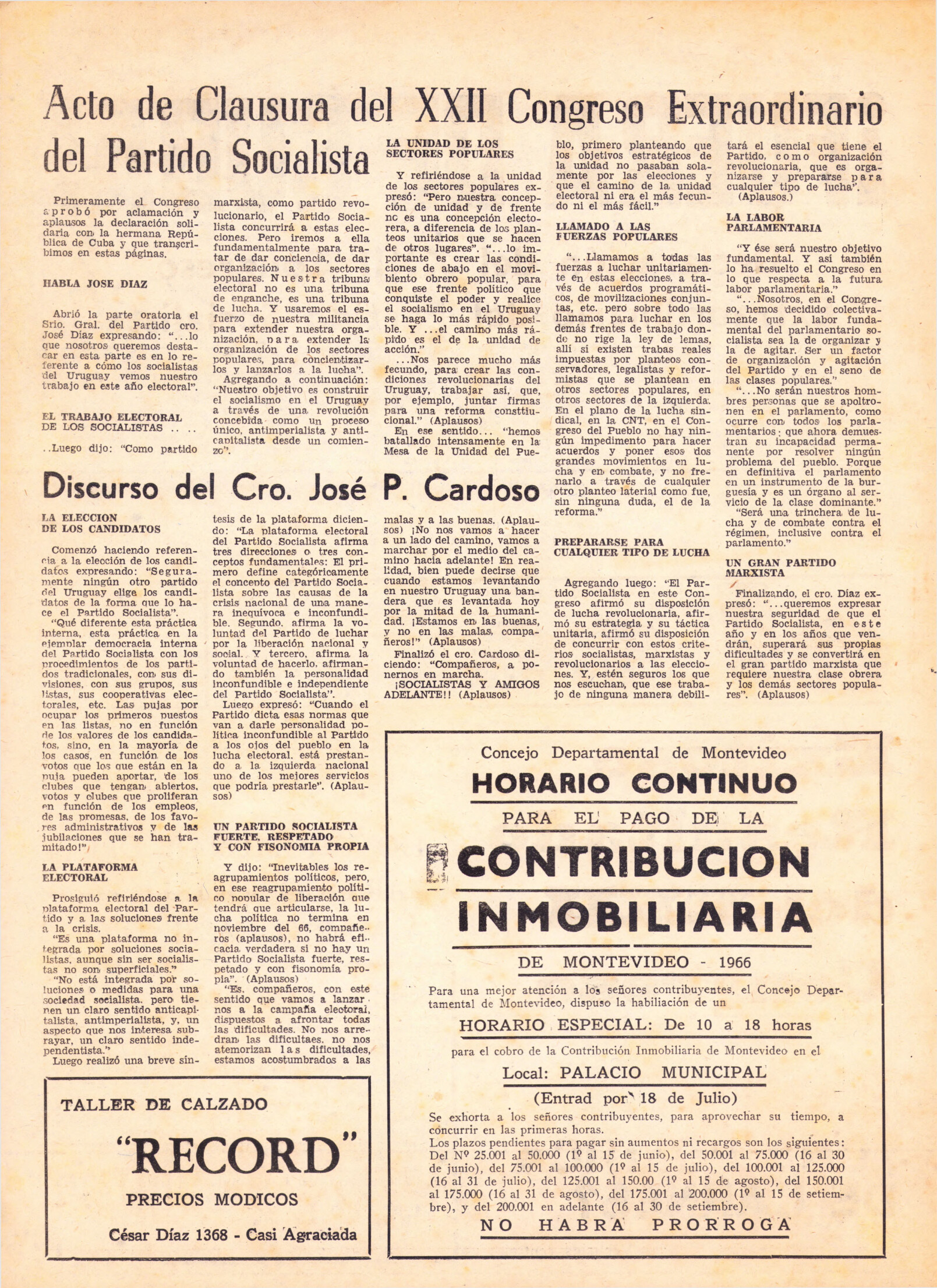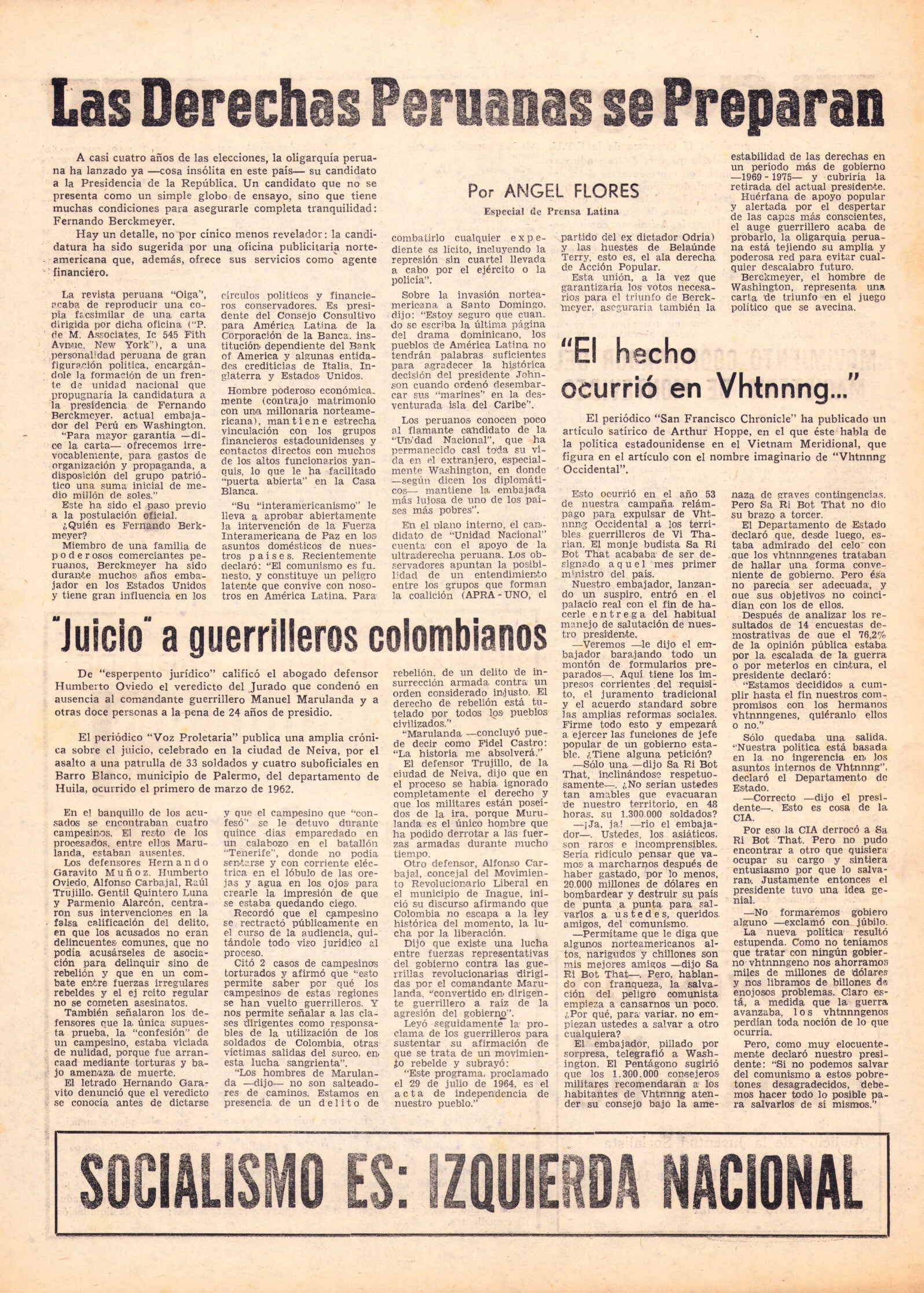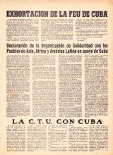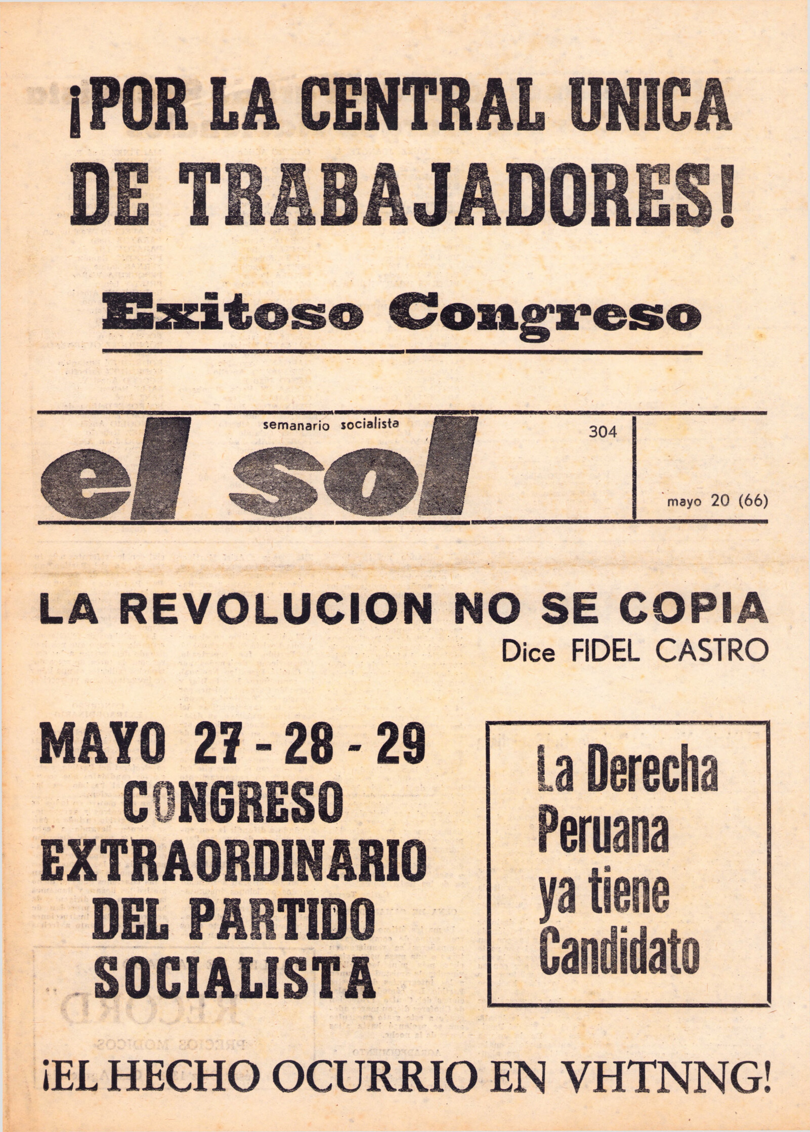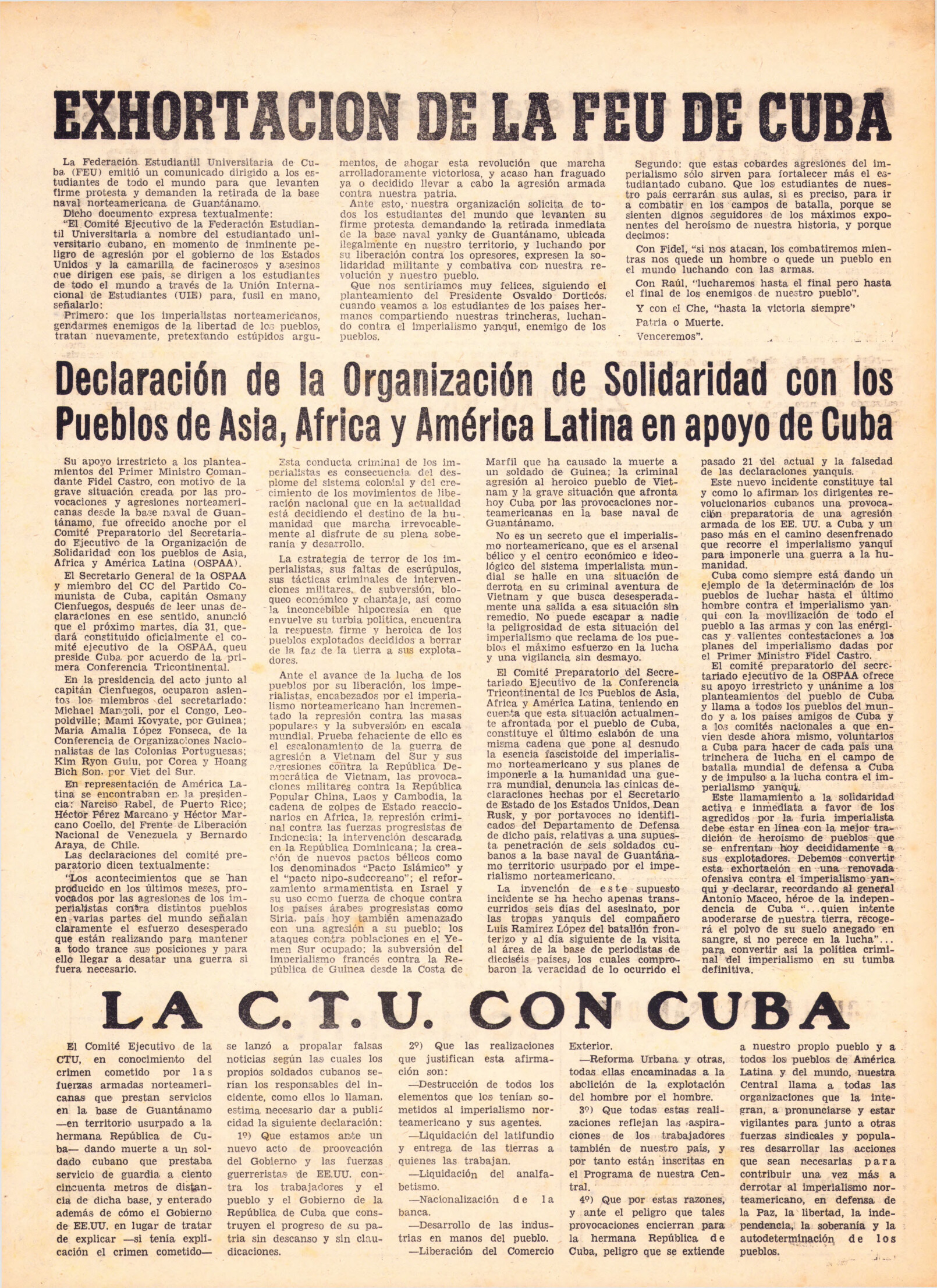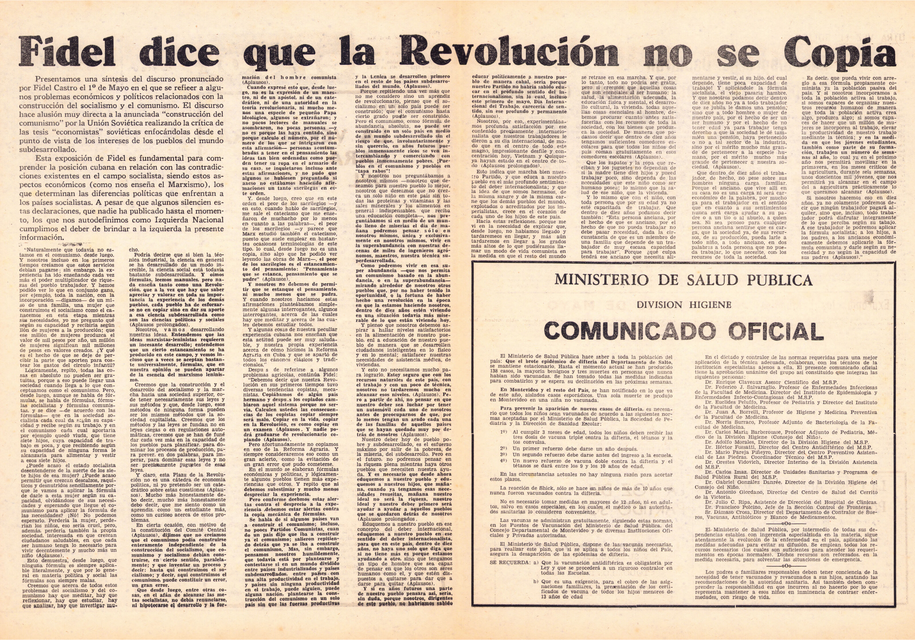 Publicación del diario Época del discurso de Fidel Castro en el acto de clausura de la Conferencia de la Organización Latinoamericana de Solidaridad (OLAS) que tuvo lugar el 10 de agosto de 1967. Esta publicación, editada en algún momento entre agosto y diciembre de 1967 convocaba a las reuniones pro reapertura del diario Época.