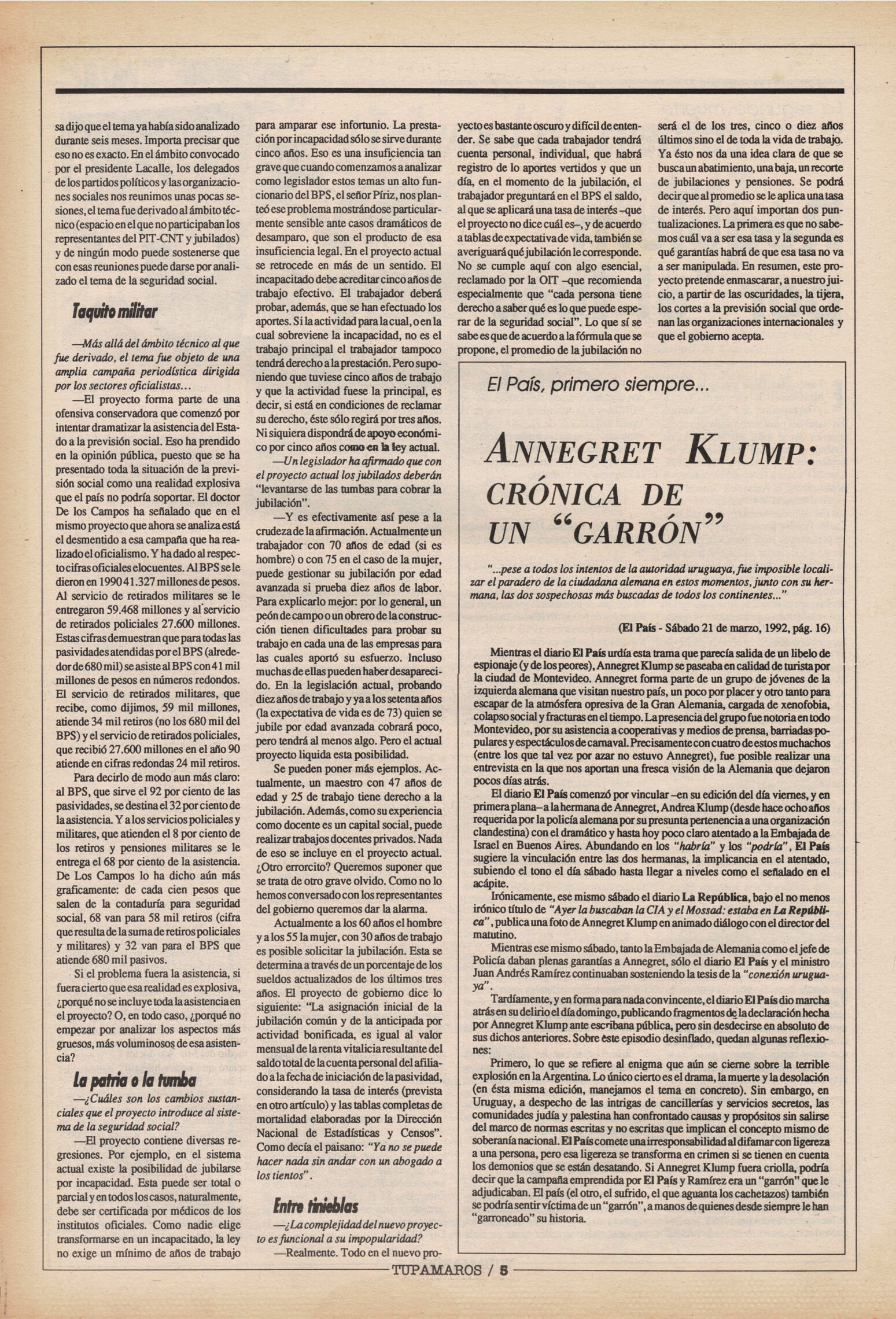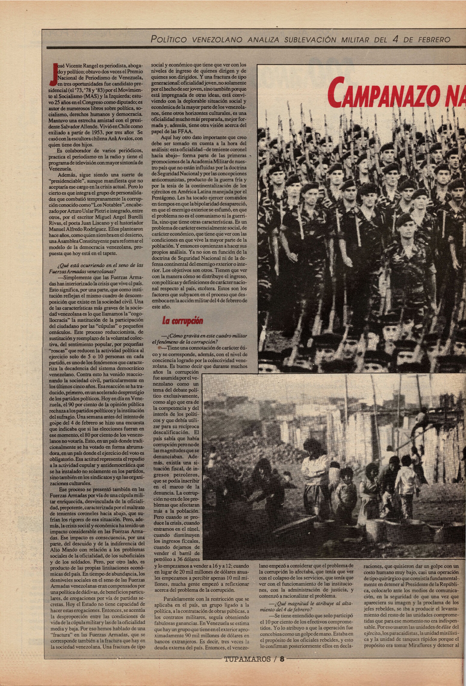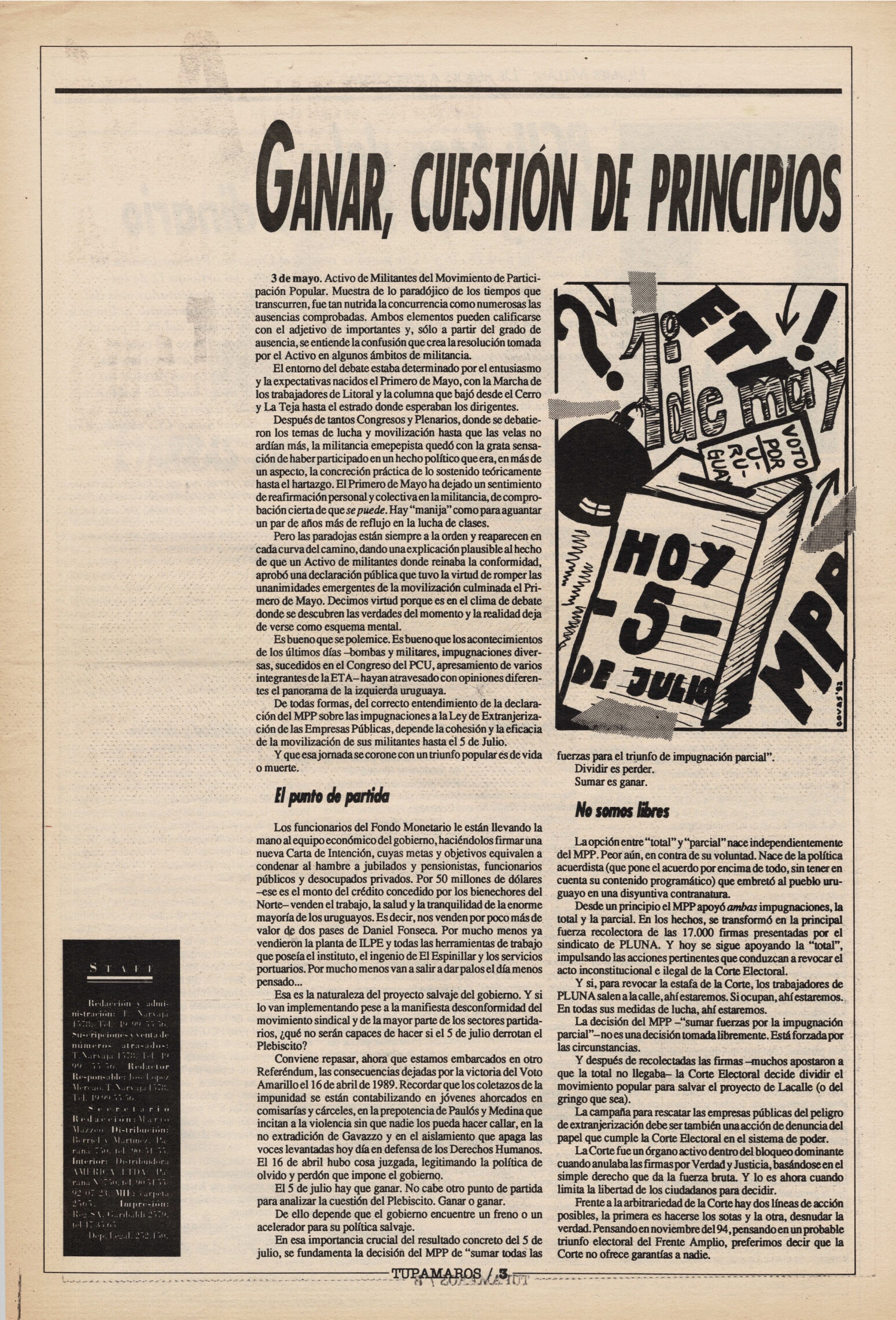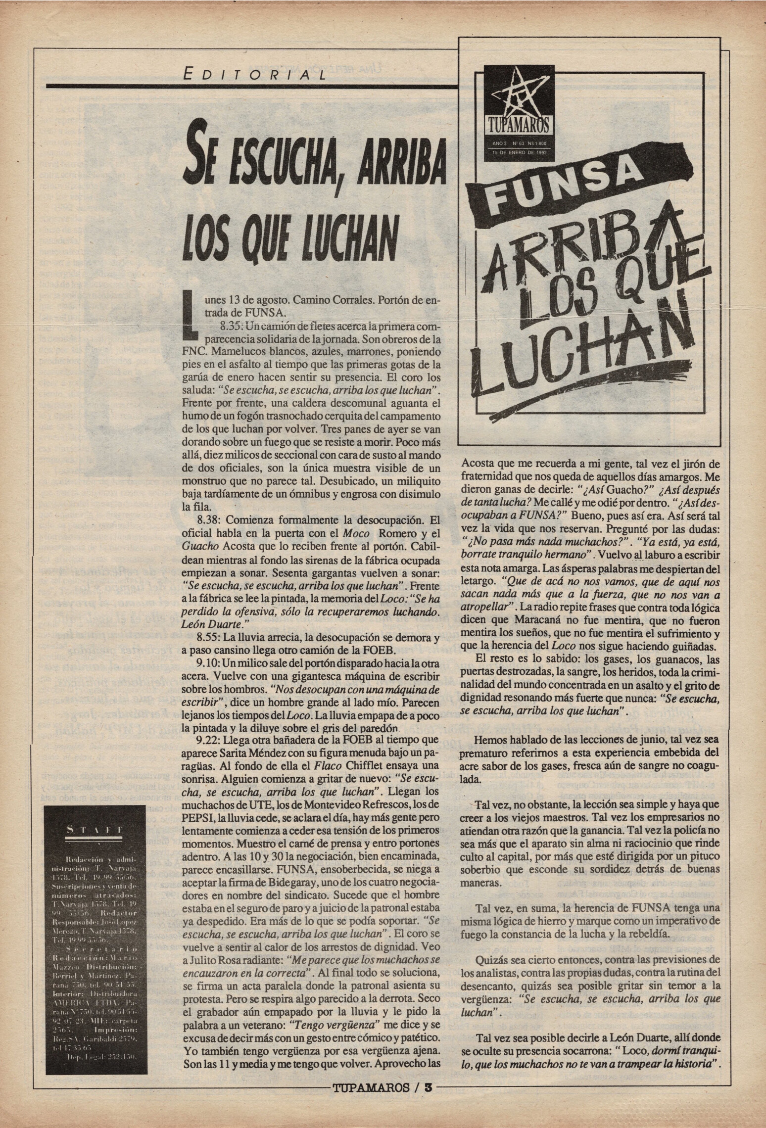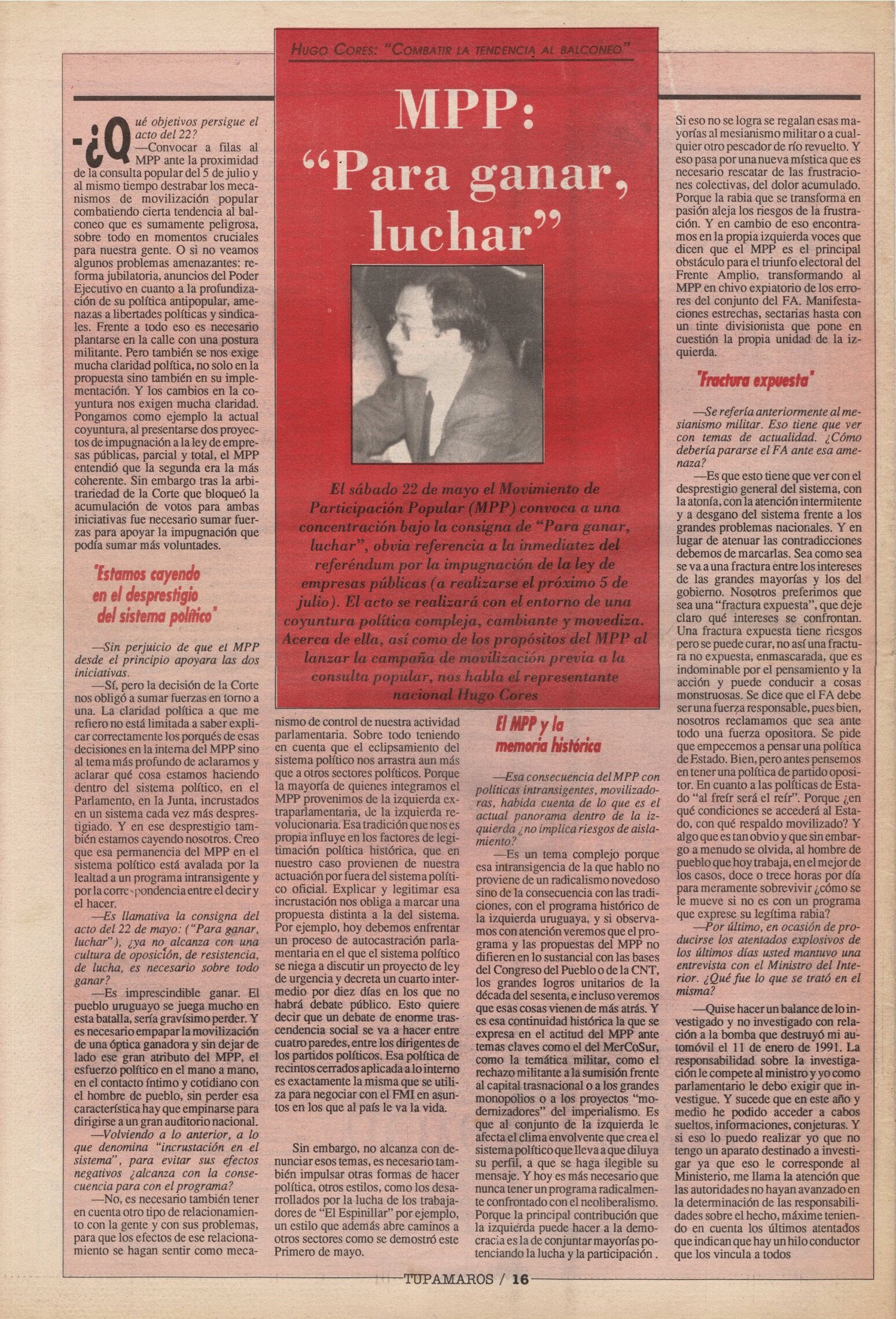 "Tupamaros" fue una publicación quincenal del Movimiento de Liberación Nacional-Tupamaros. Su primera época se editó entre 1989 y 1993 y la segunda, entre 1996 y 1998.