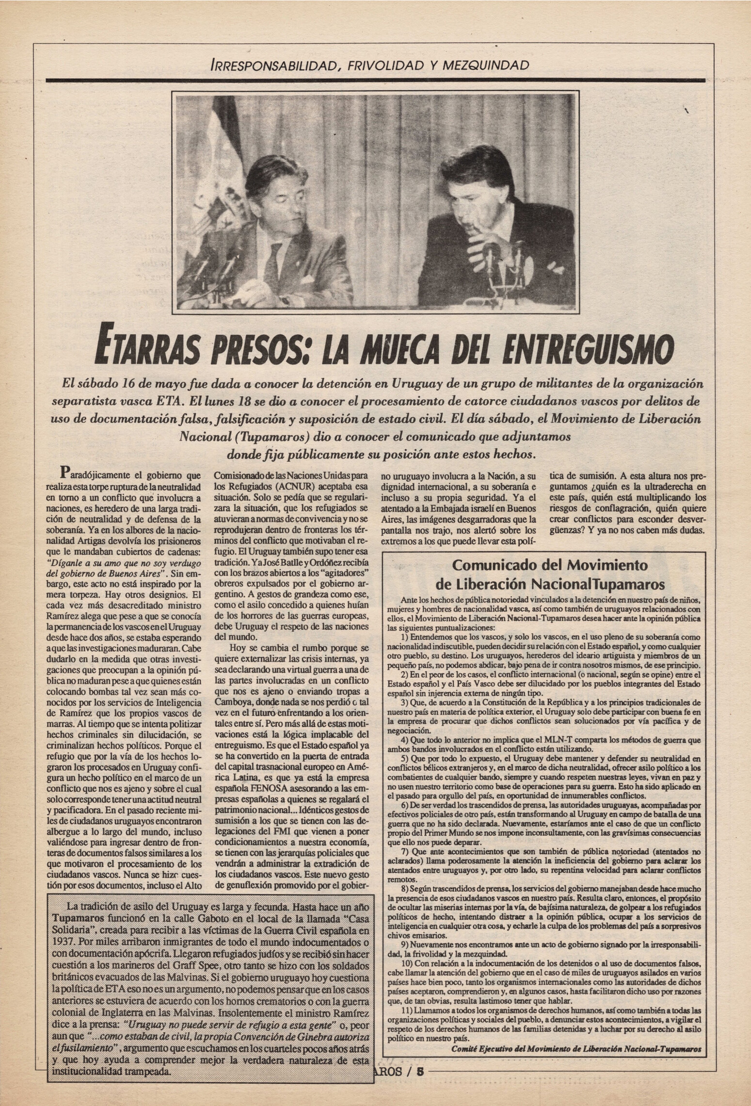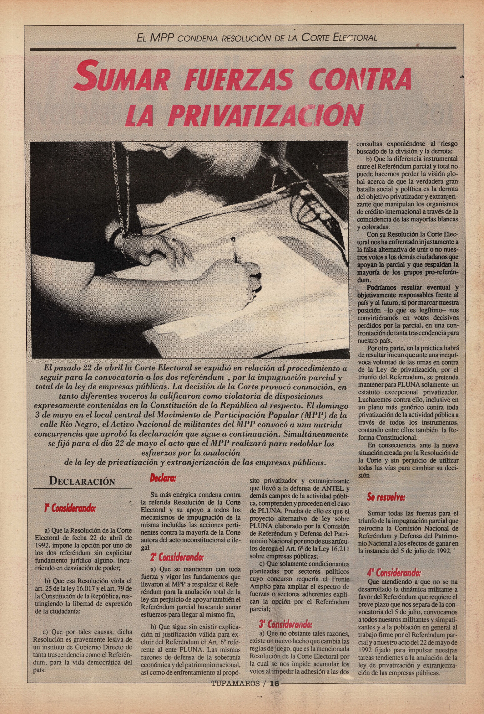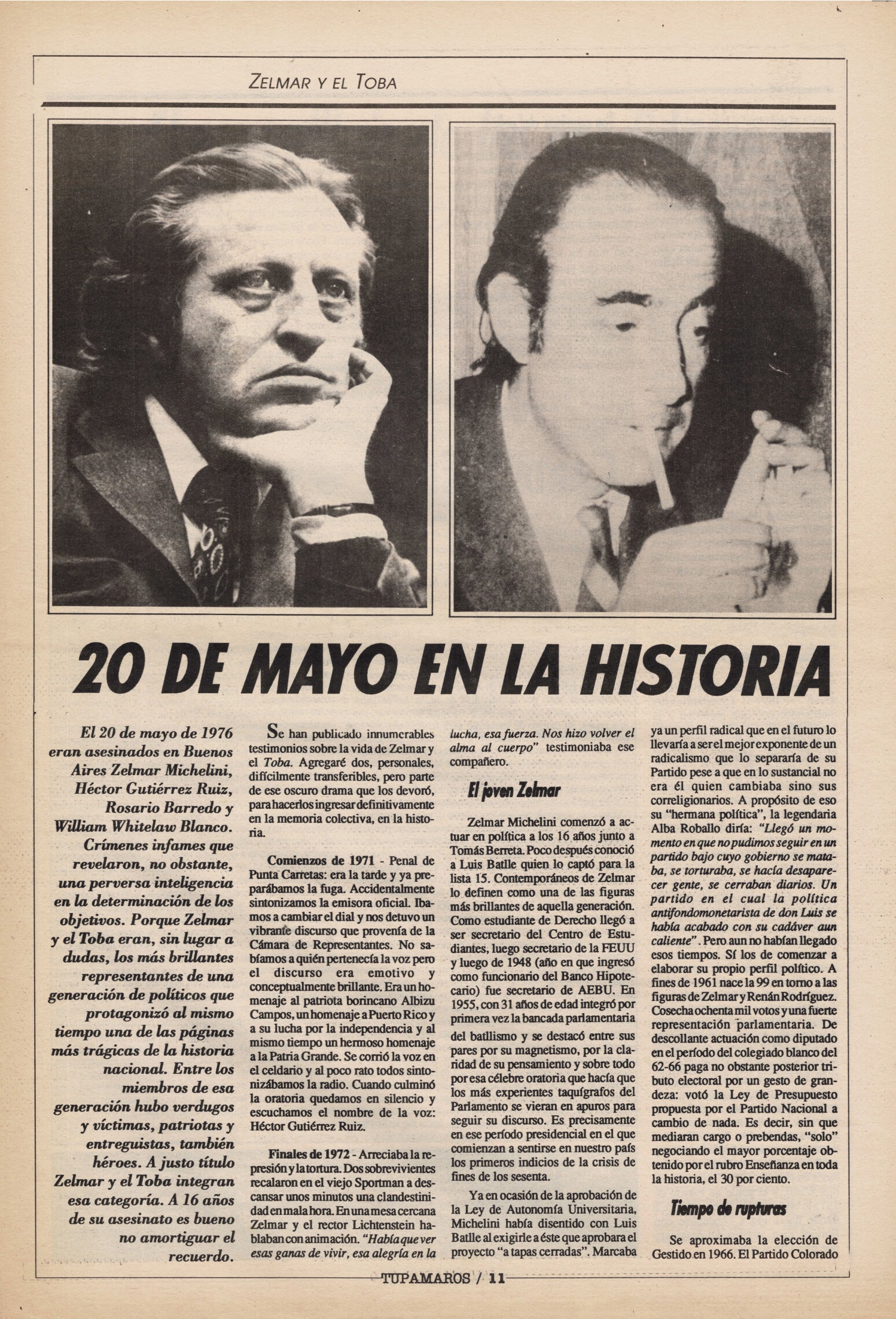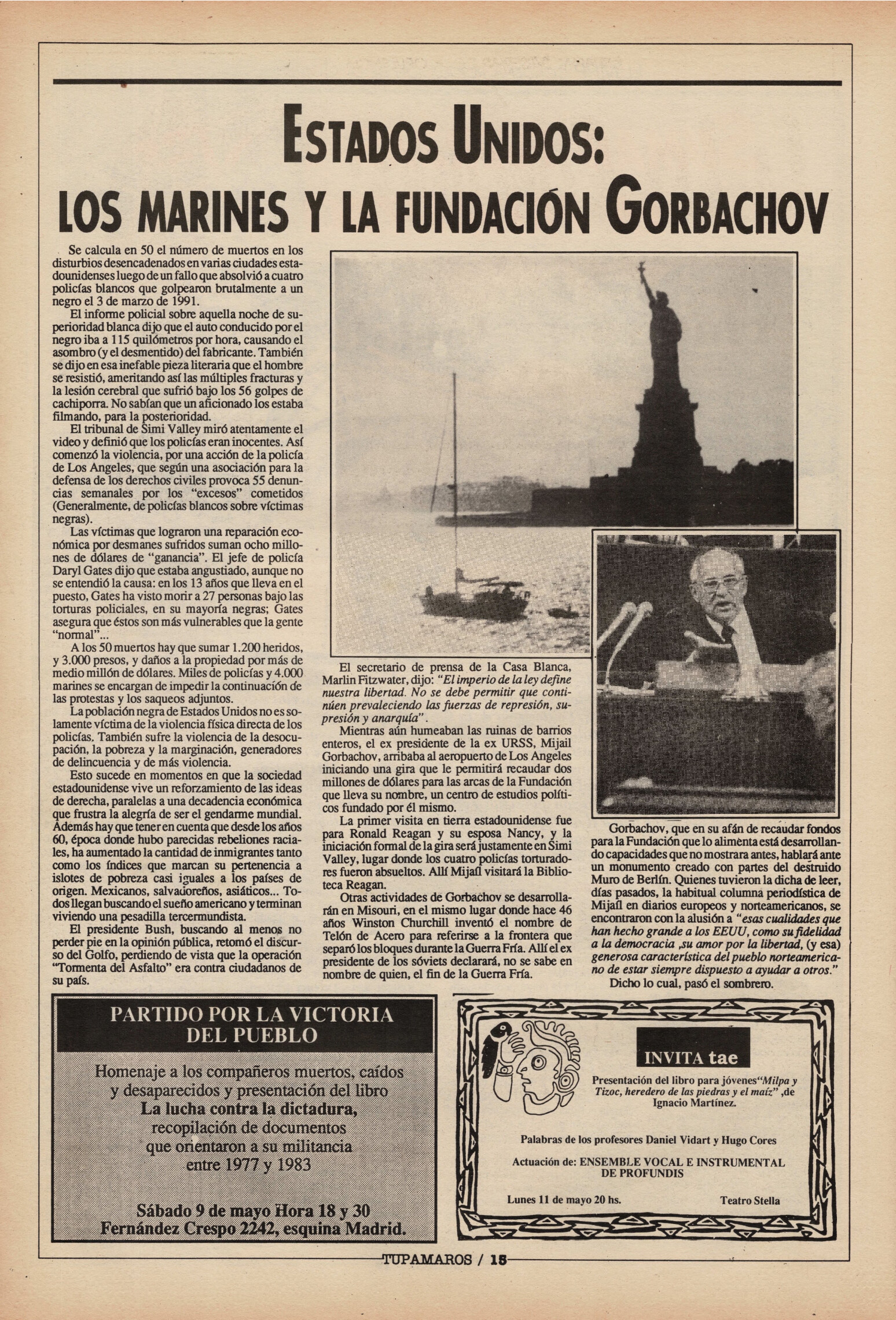 "Tupamaros" fue una publicación quincenal del Movimiento de Liberación Nacional-Tupamaros. Su primera época se editó entre 1989 y 1993 y la segunda, entre 1996 y 1998.