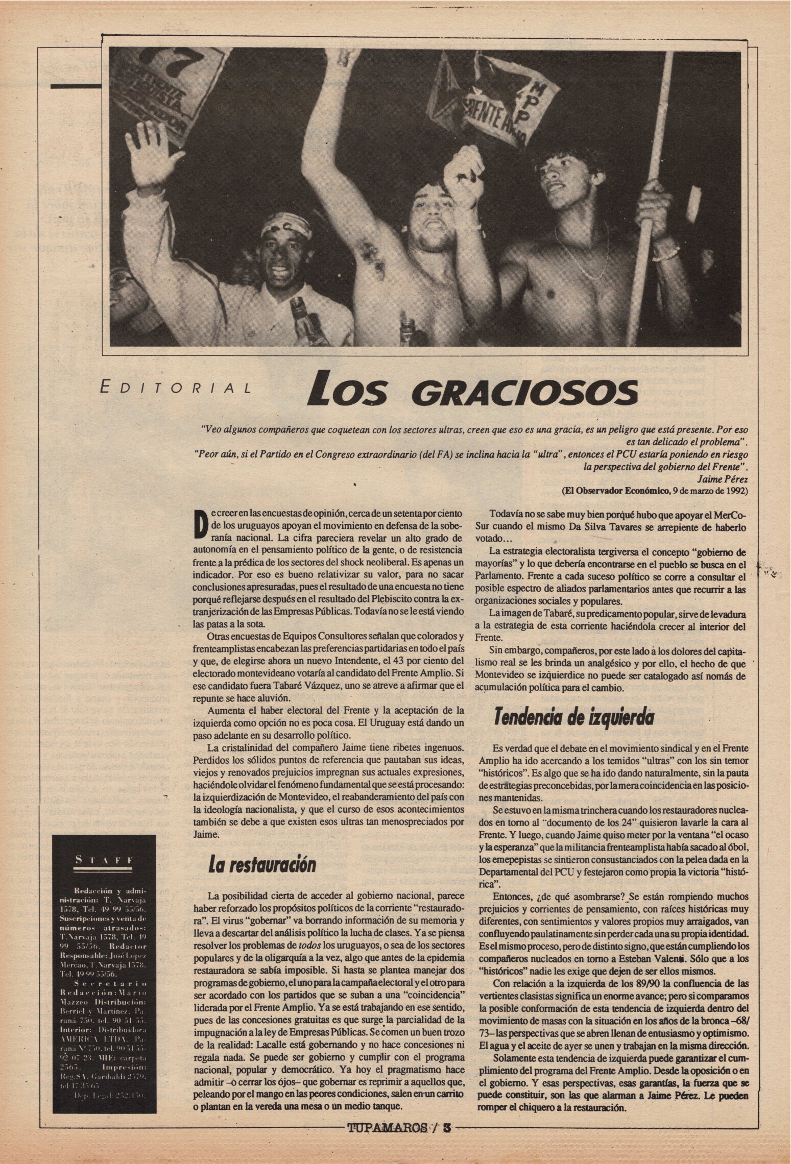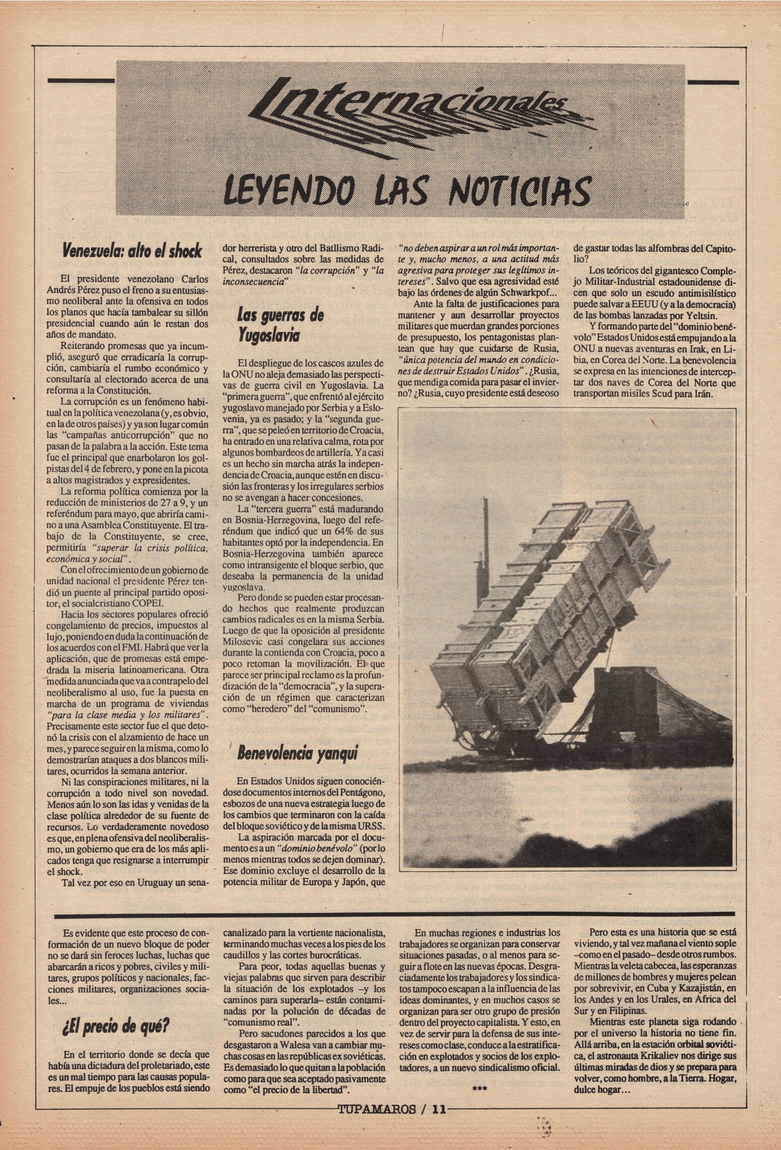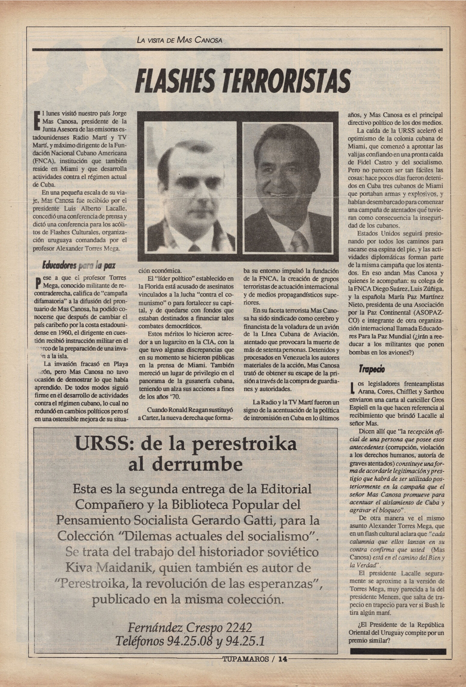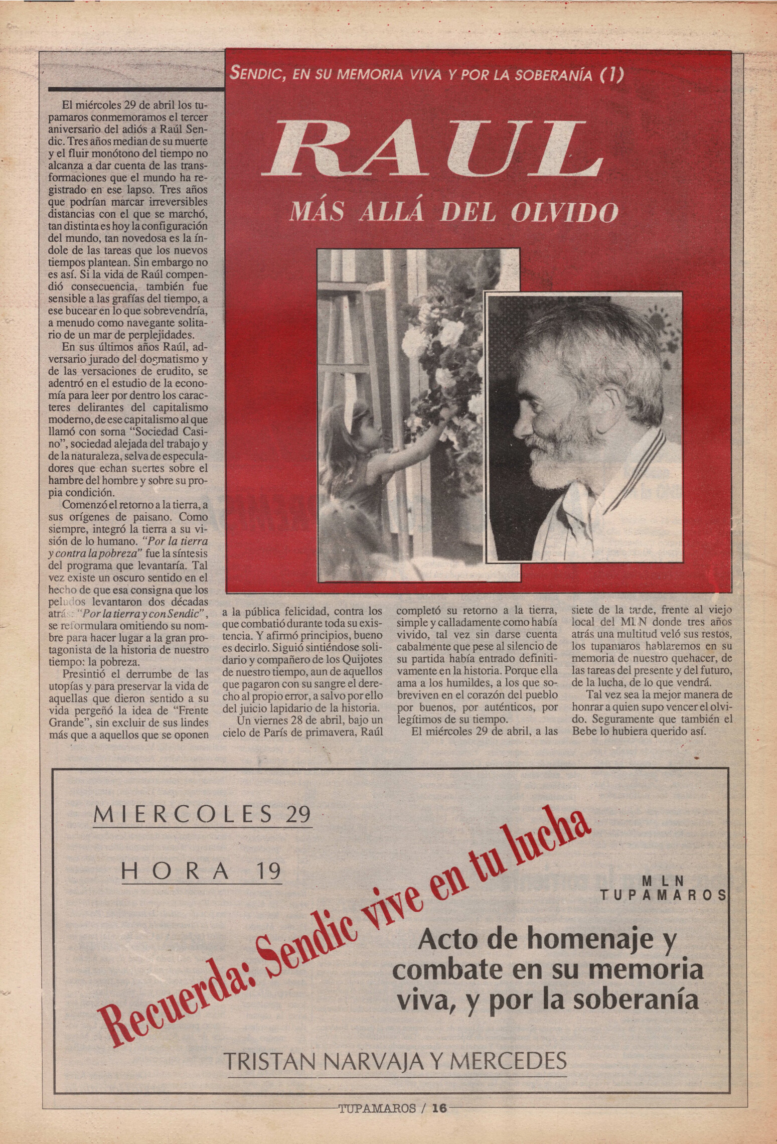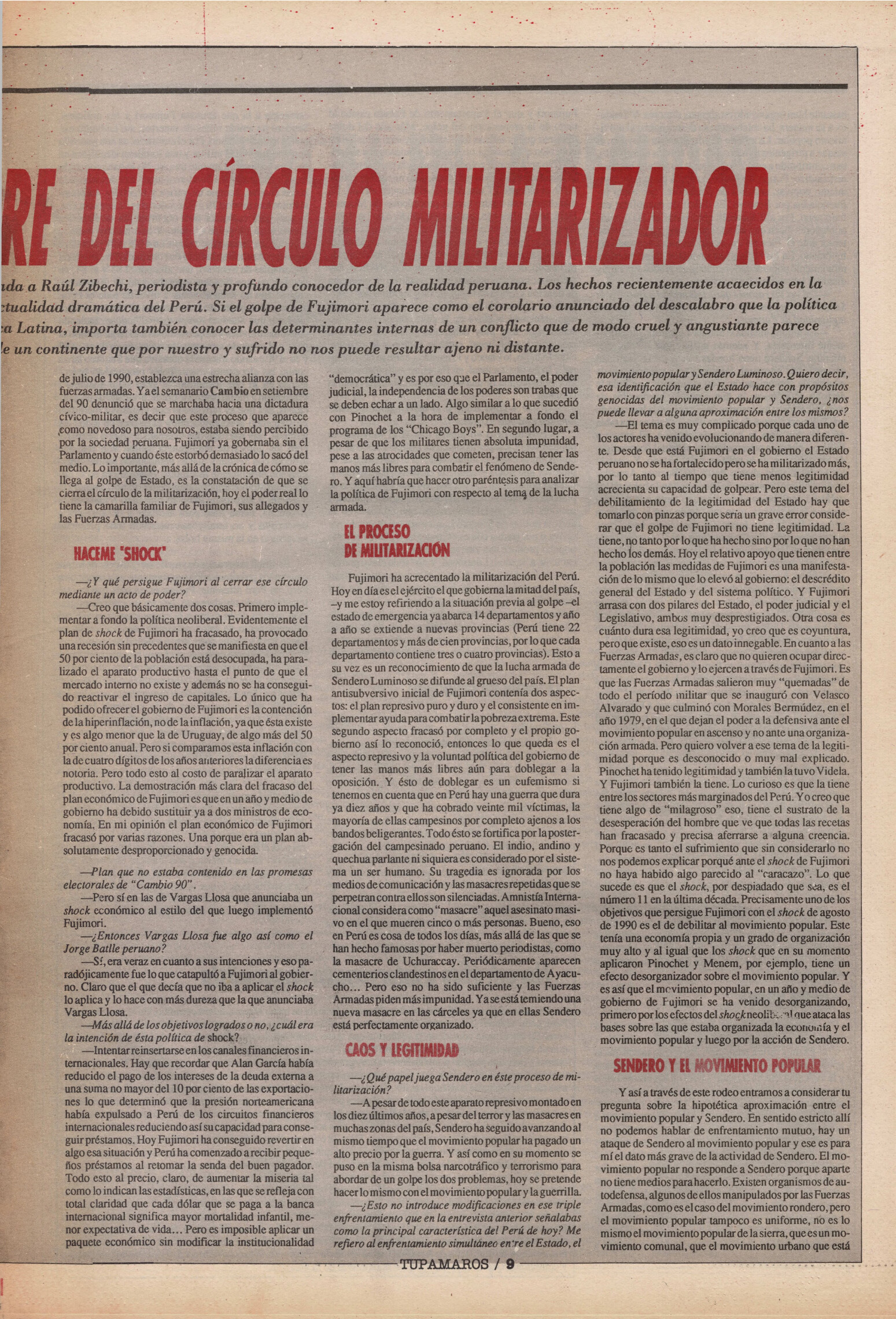 "Tupamaros" fue una publicación quincenal del Movimiento de Liberación Nacional-Tupamaros. Su primera época se editó entre 1989 y 1993 y la segunda, entre 1996 y 1998.