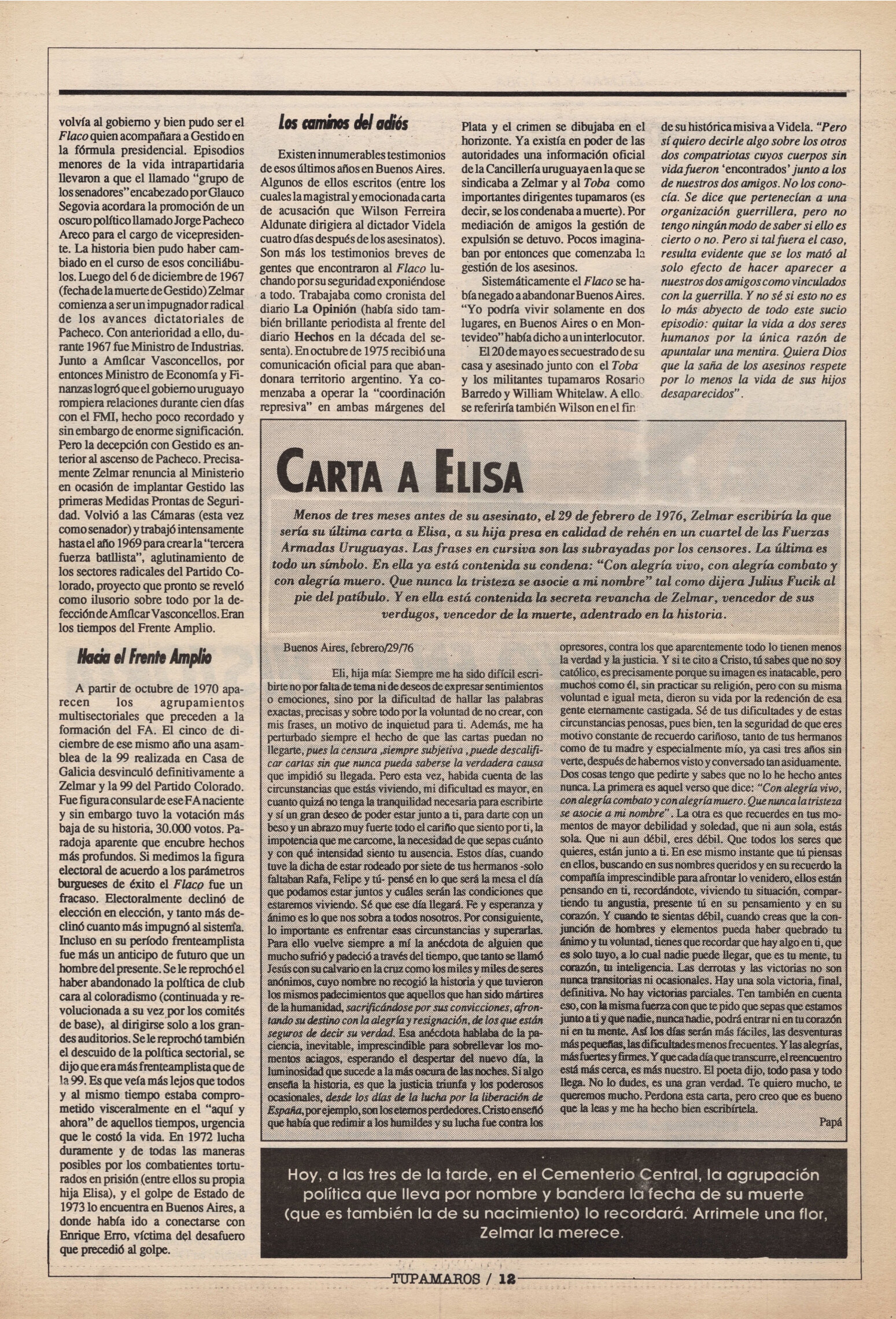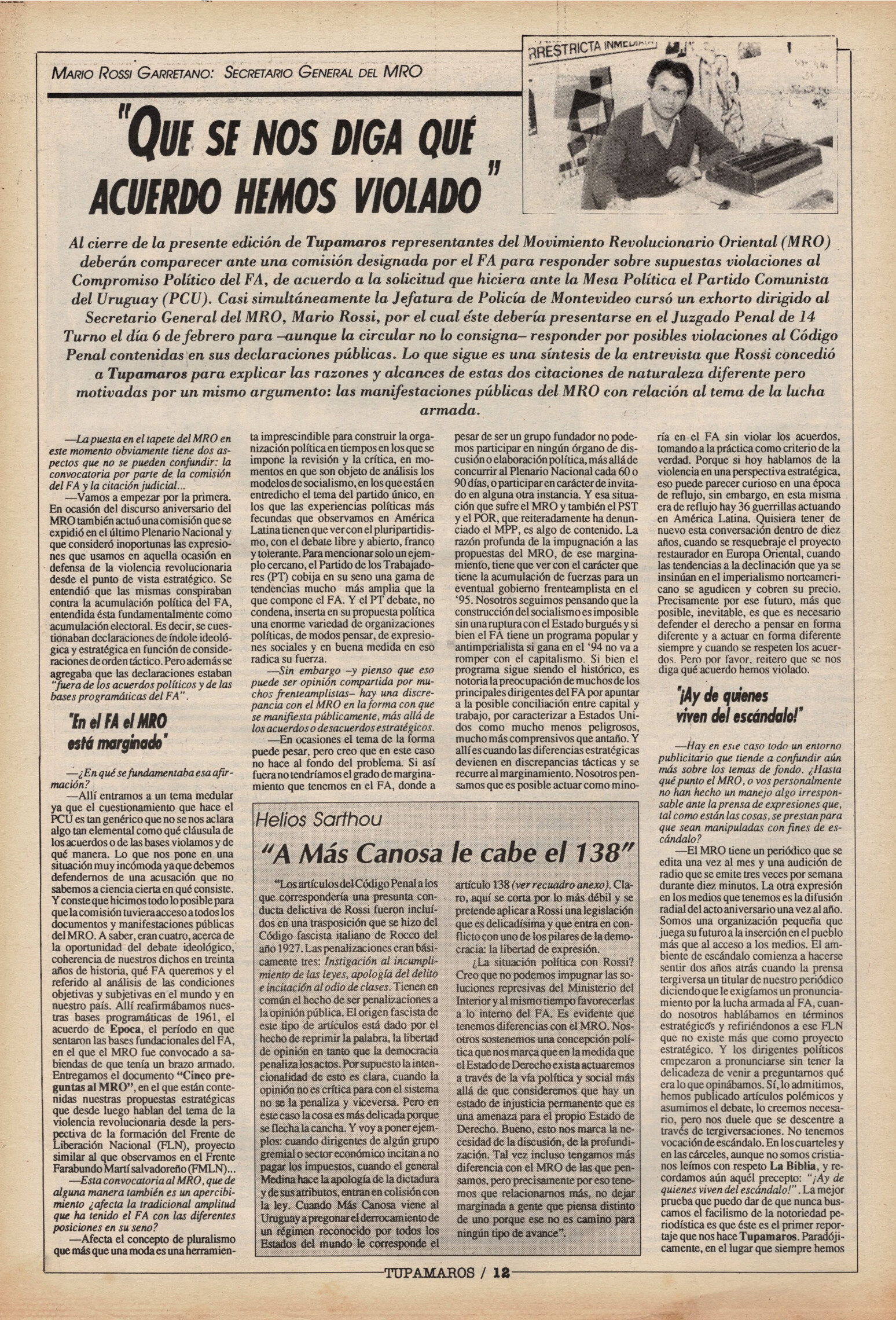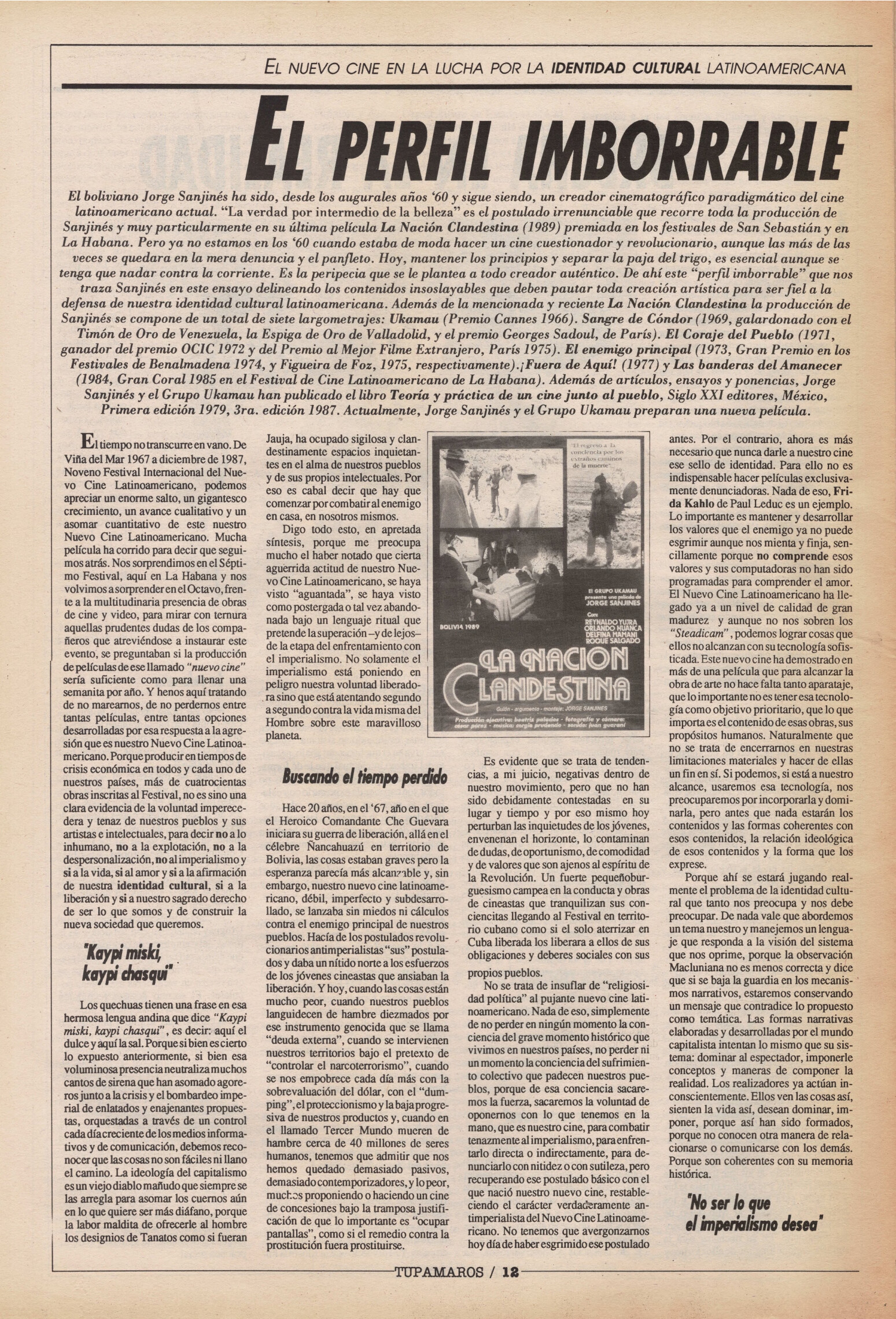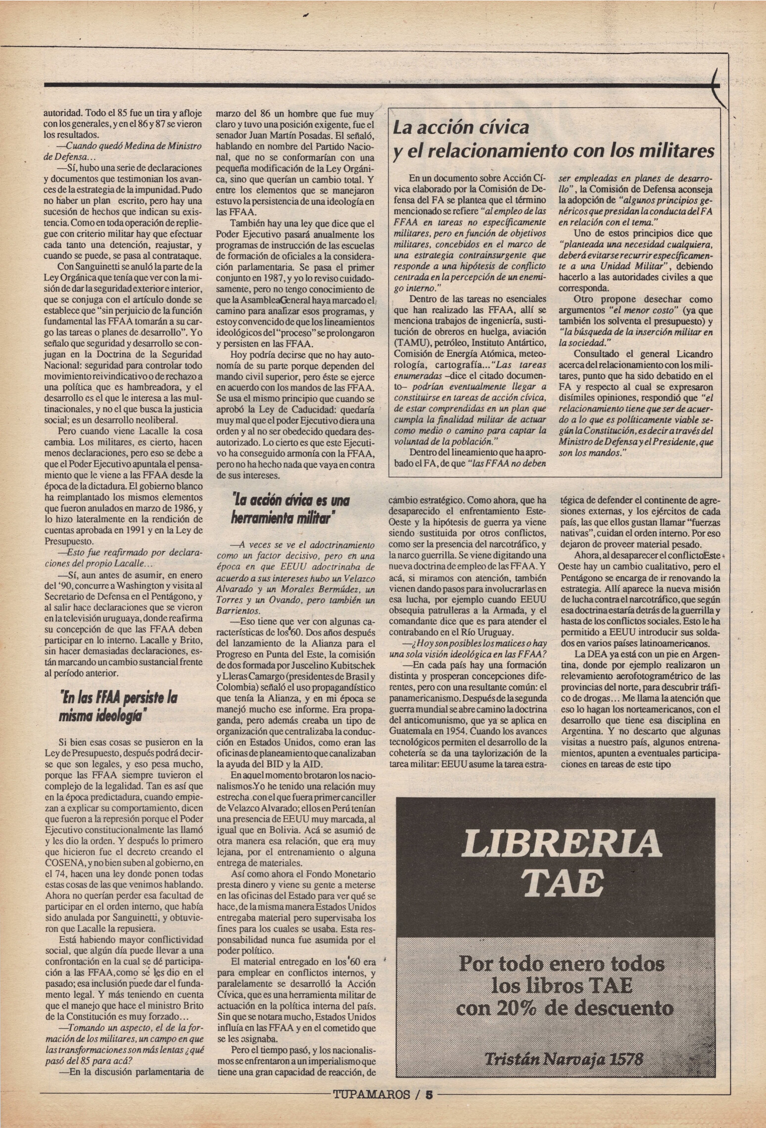 "Tupamaros" fue una publicación quincenal del Movimiento de Liberación Nacional-Tupamaros. Su primera época se editó entre 1989 y 1993 y la segunda, entre 1996 y 1998.