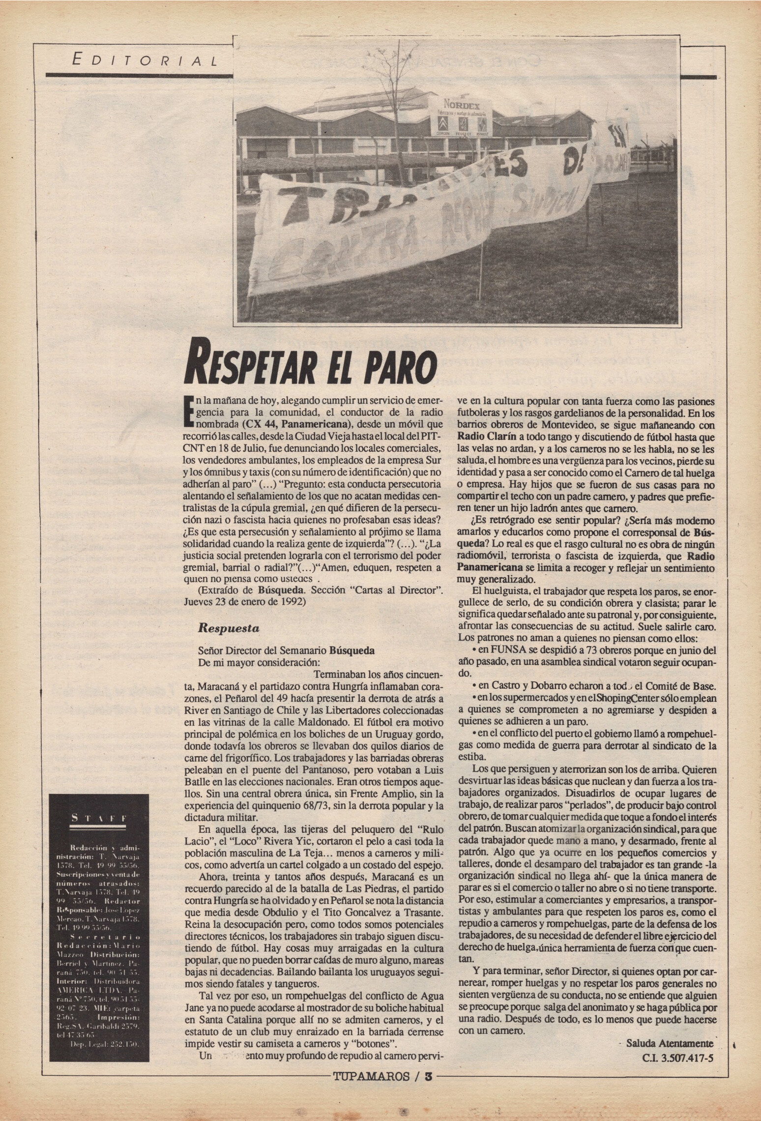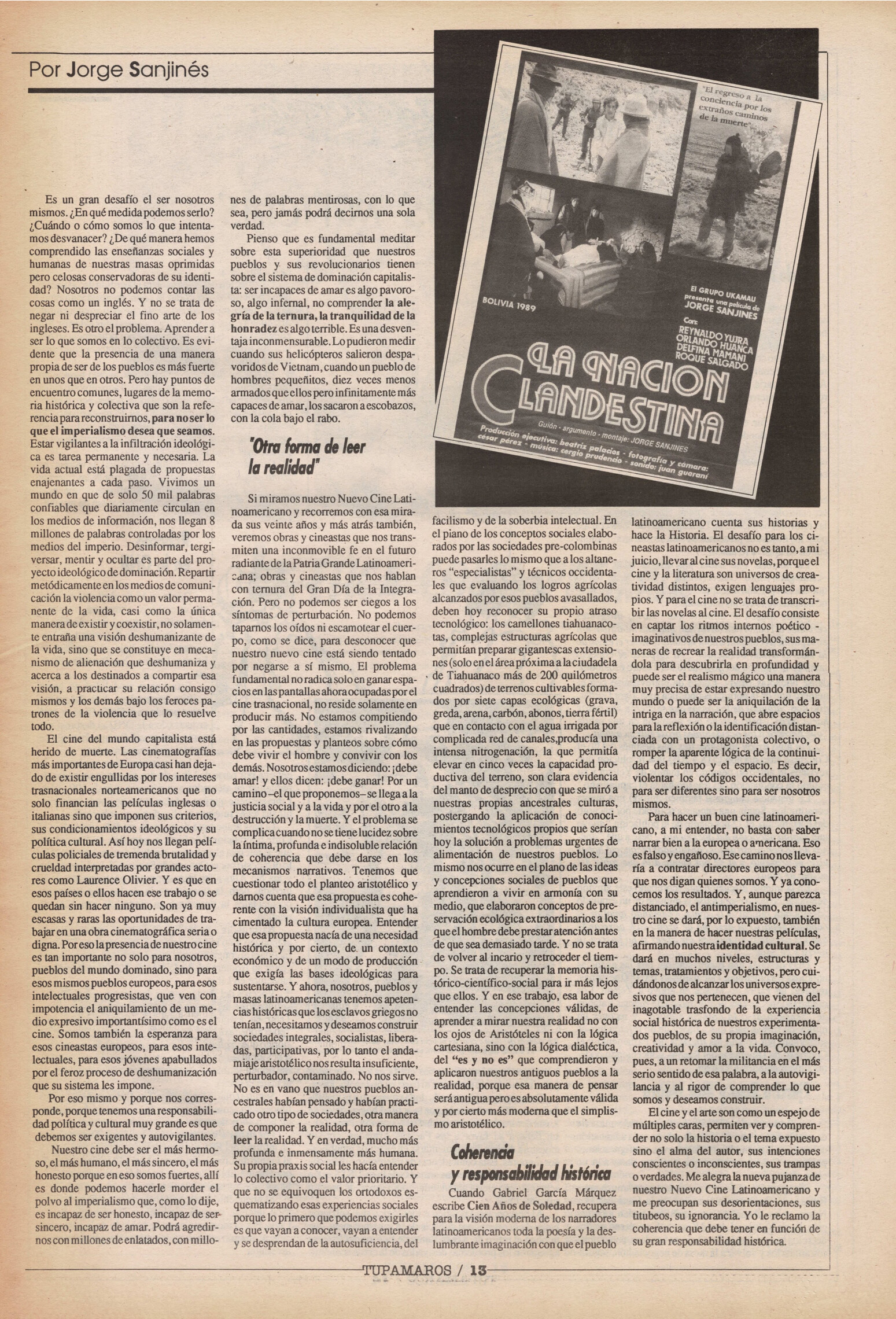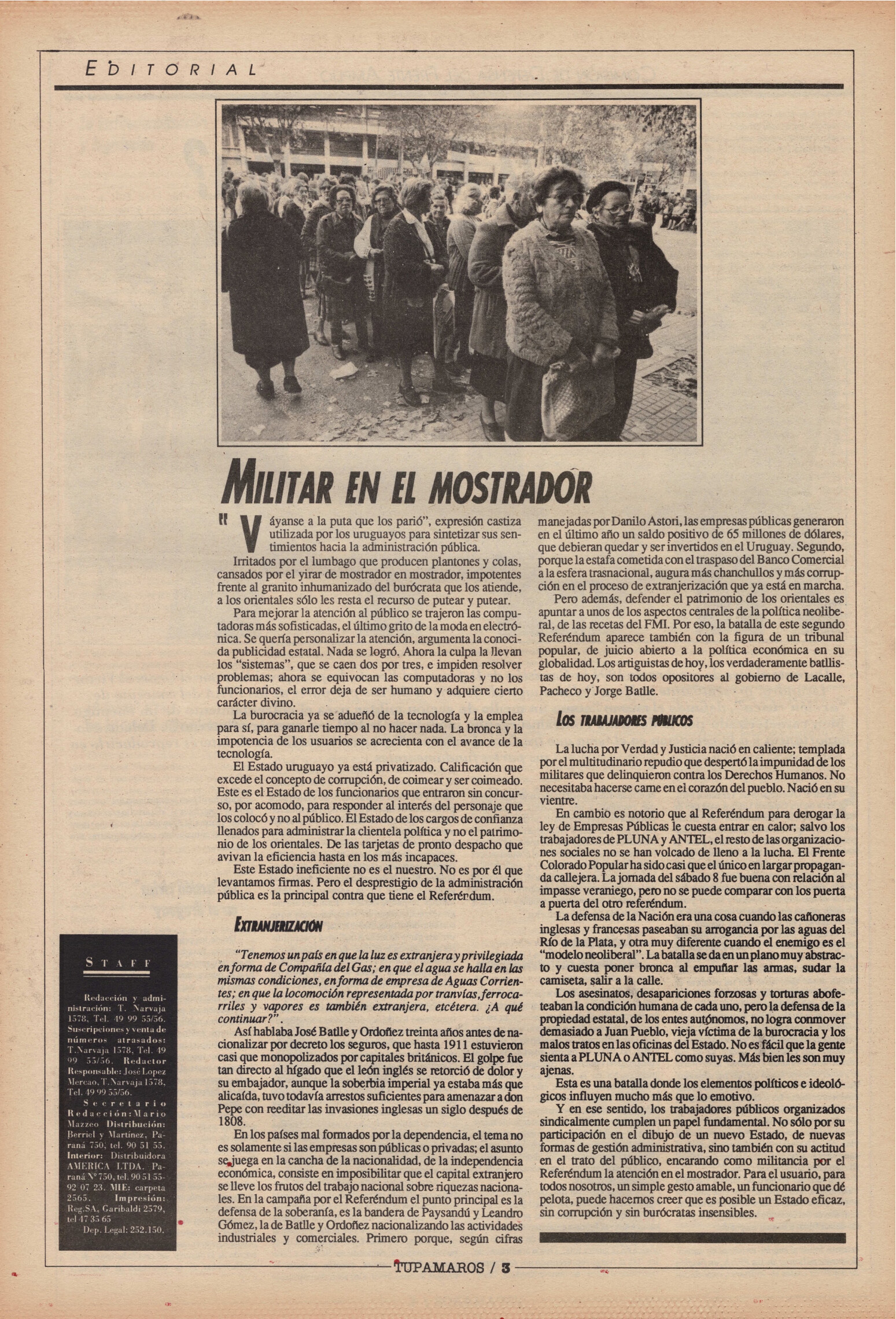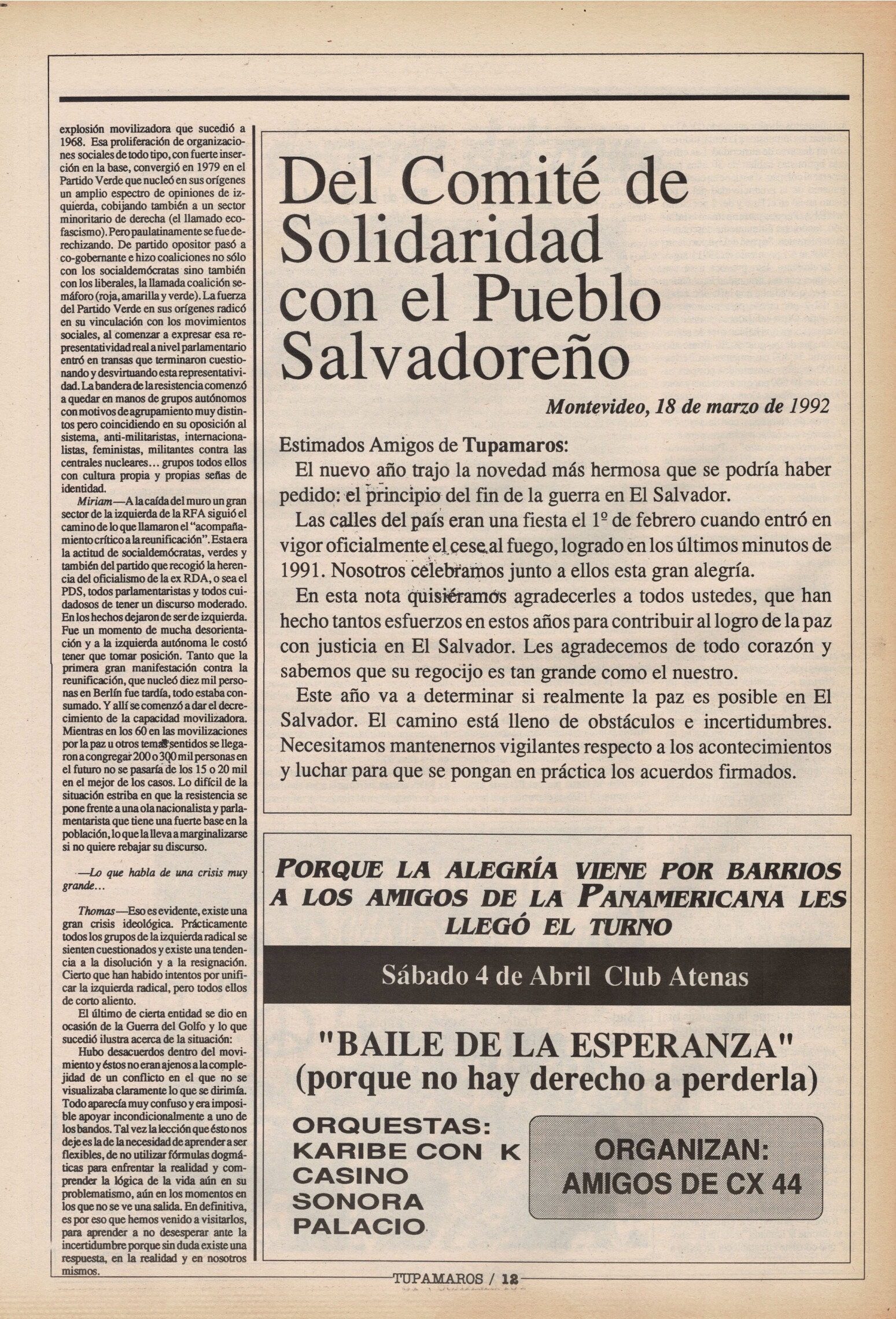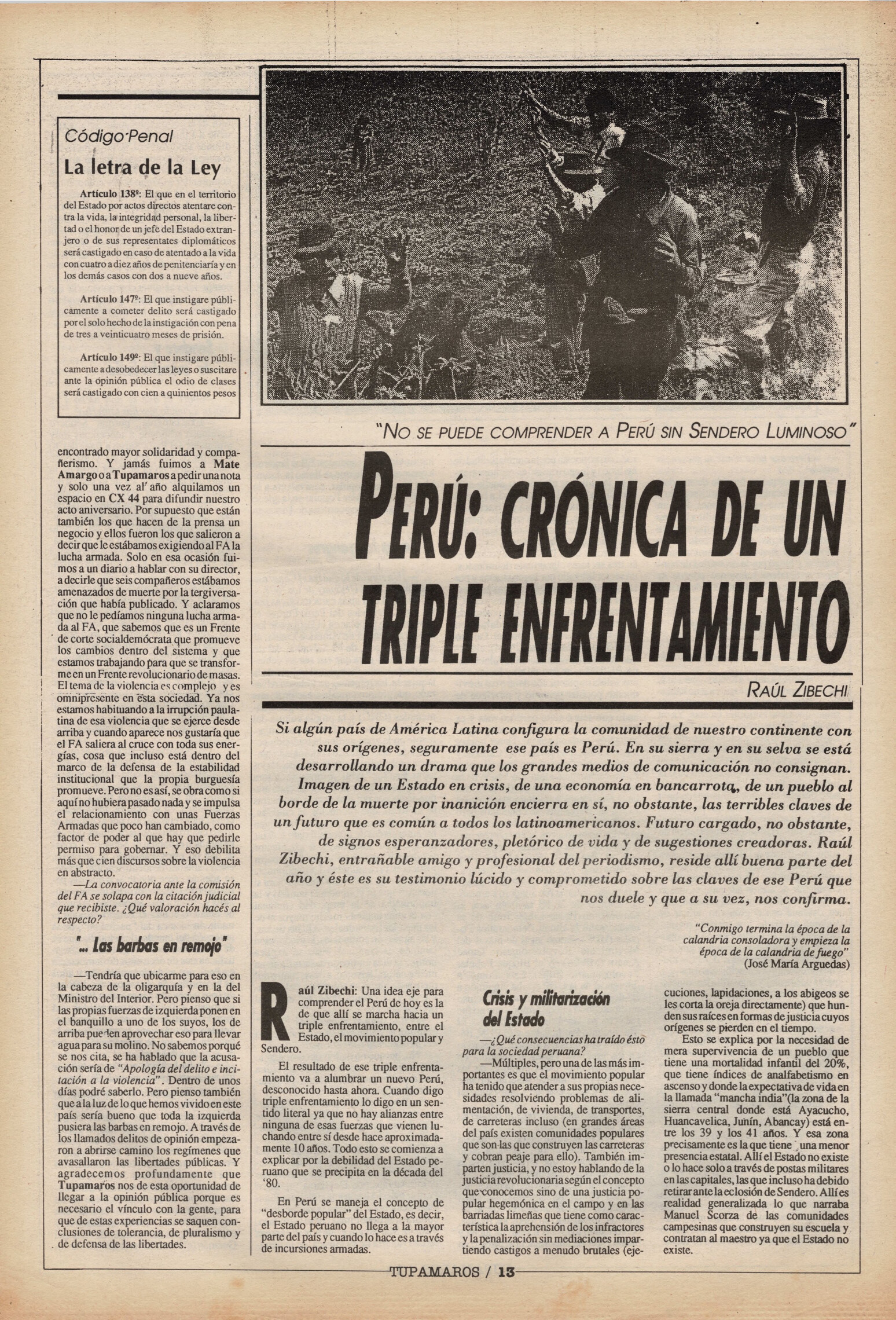 "Tupamaros" fue una publicación quincenal del Movimiento de Liberación Nacional-Tupamaros. Su primera época se editó entre 1989 y 1993 y la segunda, entre 1996 y 1998.