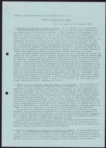 Enlace a contenido: Uruguay : Hechos de la semana del 27 de marzo al 2 de abril de 1976