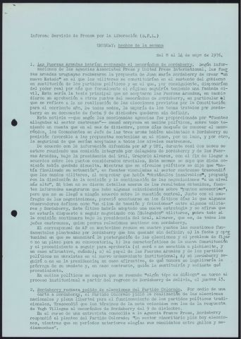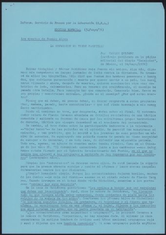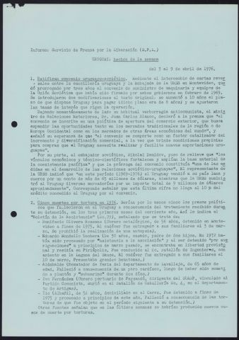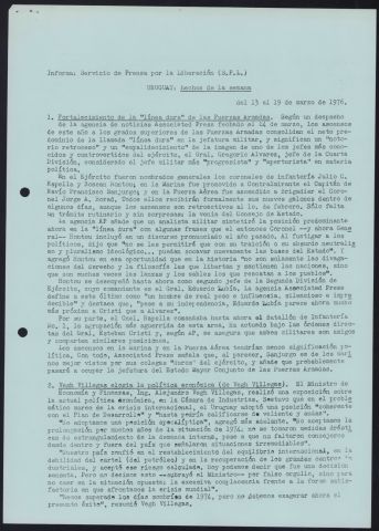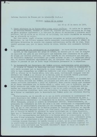"Uruguay : Hechos de la semana" fue un boletín del Servicio de Prensa por la Liberación (SPL), organización de exiliados en Buenos Aires, que estaba en permanente contacto con el Comité del Frente Amplio en esa ciudad, con dirigentes blancos allí radicados y con algunas organizaciones de izquierda en Uruguay. Entre 1974 y 1975 fue una de las principales fuentes de la información para el GRISUR, y la información allí contenida nutría el boletín de esta última organización.