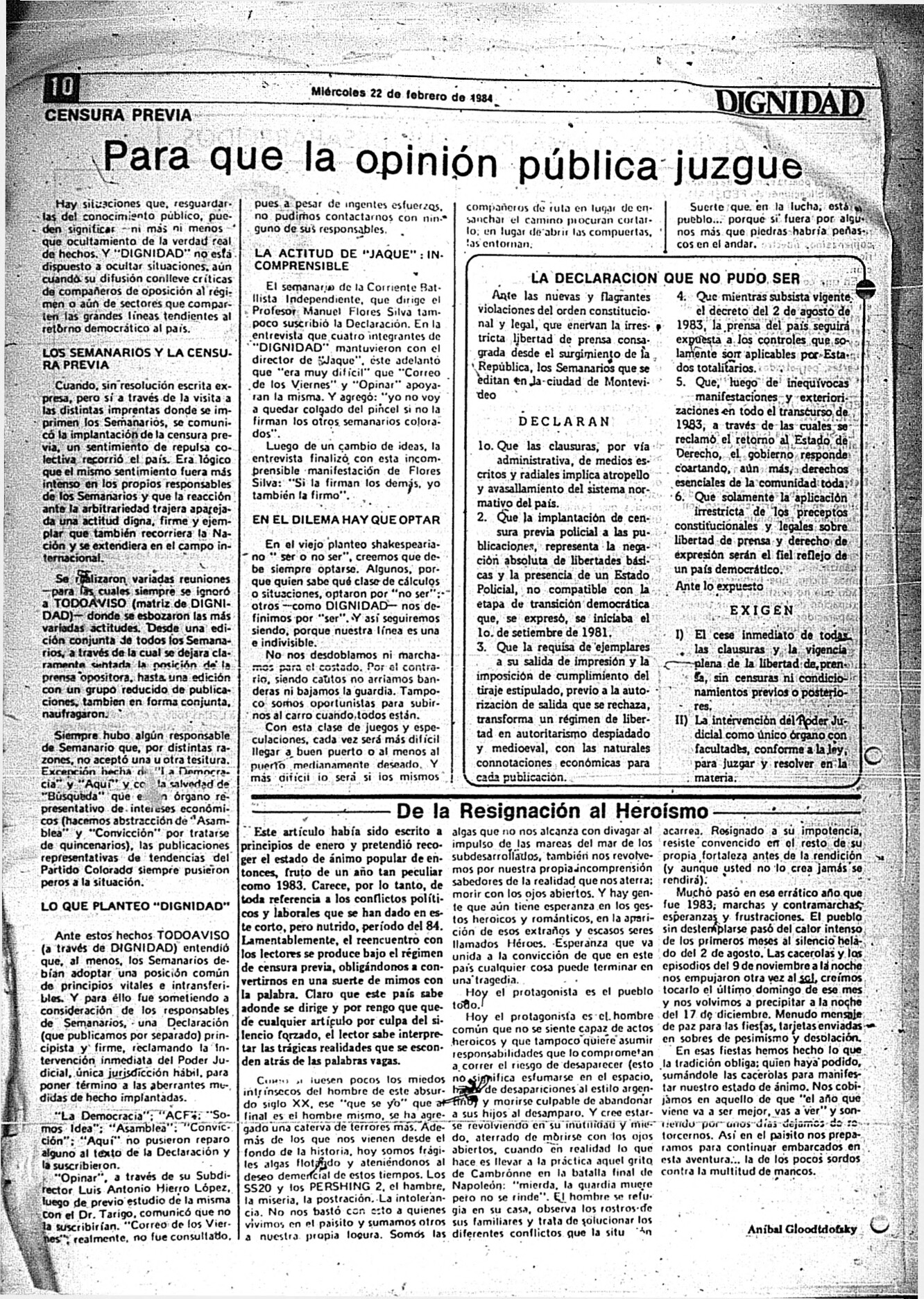 A la Resistencia por la Victoria n° 1 (24/2/1984)