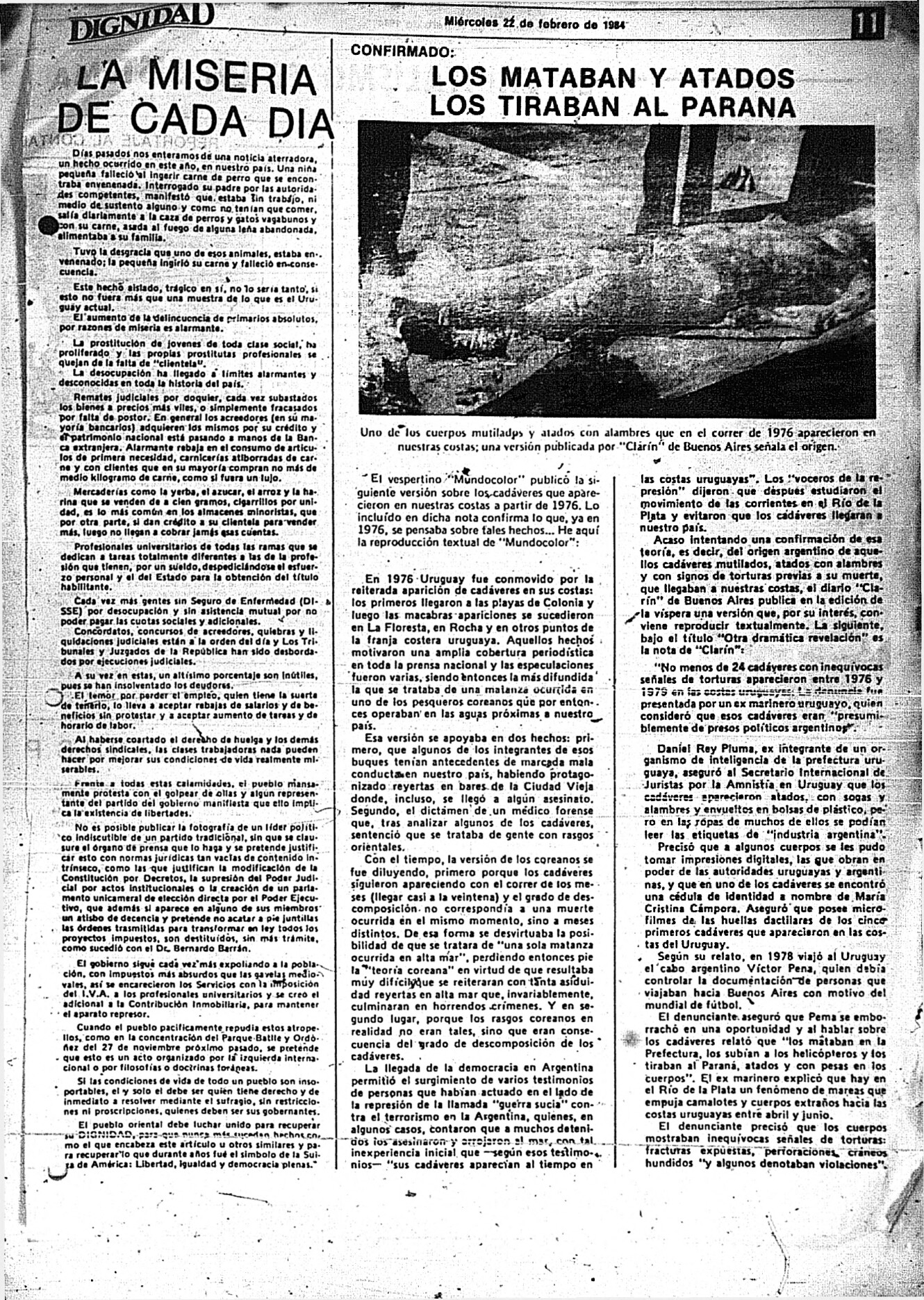 En esta página se presentan ejemplares completos de publicaciones periódicas (diarios, revistas, semanarios, etc.), así como notas extraídas de estos ejemplares, que generalmente se vinculan a otros contenidos del sitio web, como víctimas, lugares de detención, etc.